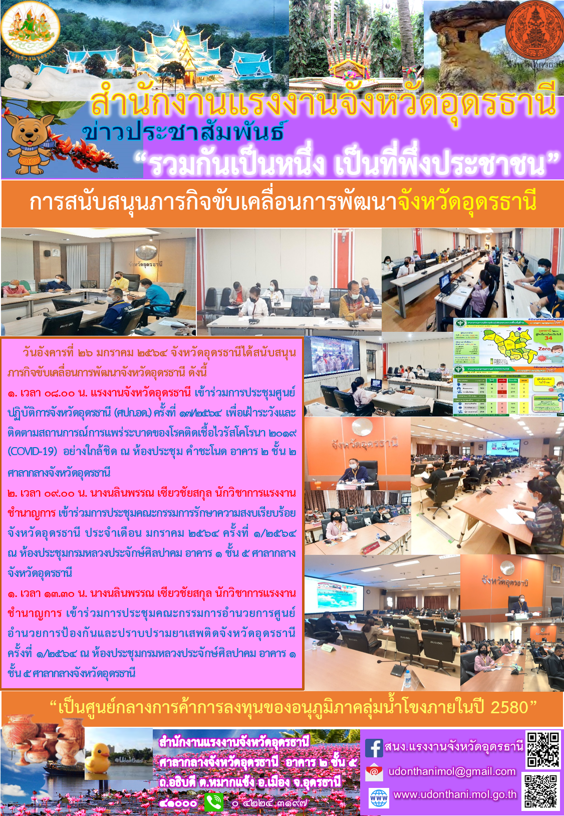 การสนับสนุนภารกิจขับเคลื่อนการพัฒนาจังหวัดอุดรธานี ประจำวันที่ 26 มกราคม 2564