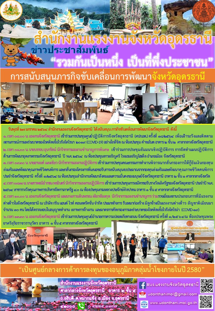 สำนักงานแรงงานจังหวัดอุดรธานี การสนับสนุนภารกิจขับเคลื่อนการพัฒนาจังหวัดอุดรธานี