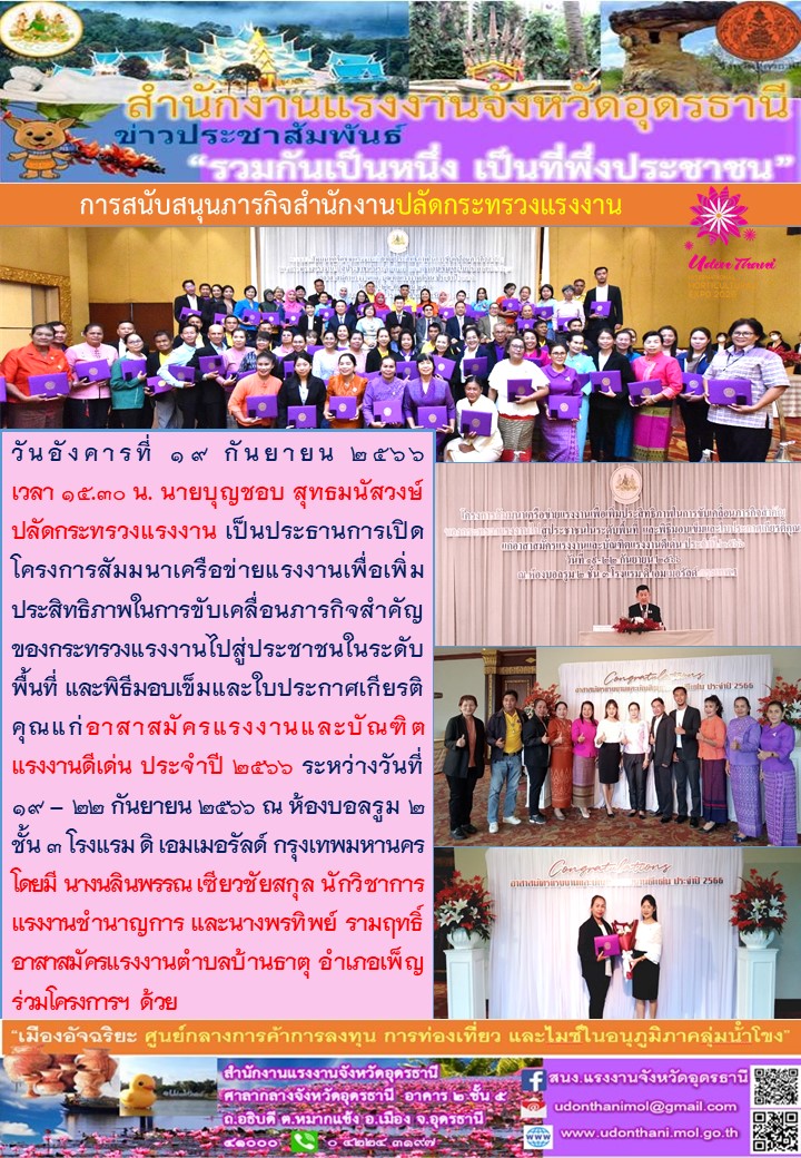 สรจ.อุดรธานี สนับสนุนภารกิจสำนักงานปลัดกระทรวงแรงงาน