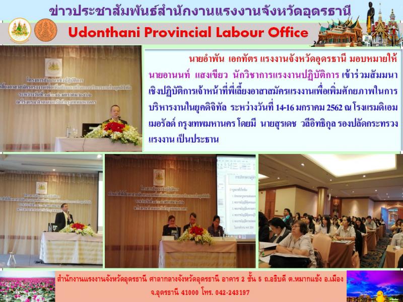 การสัมมนาเชิงปฏิบัติการเจ้าหน้าที่พี่เลี้ยงอาสาสมัครแรงงานเพื่อเพิ่มศักยภาพในการบริหารงานในยุคดิจิทัล
