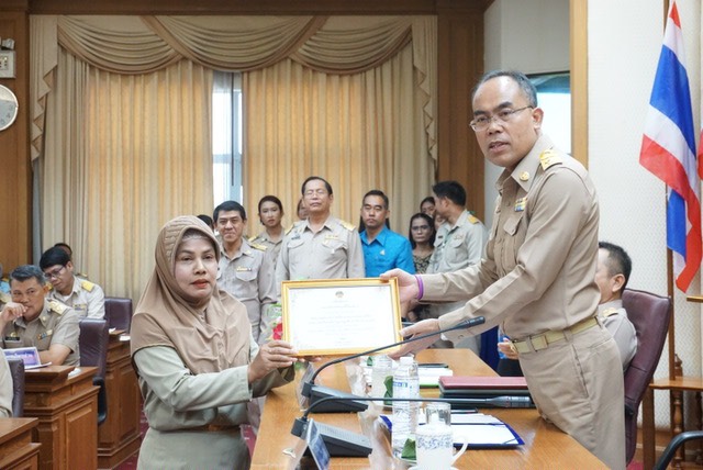 เมื่อวันพุธที่ 30 ตุลาคม 2562 เวลา 09.30 น. พิธีมอบเกียรติบัตรให้แก่หน่วยงานต้นแบบในการส่งเสริมการรักษาเอกลักษณ์ความเป็นไทย การแต่งกายด้วยผ้าไทย ผ้าถิ่น “นุ่งถุง ไม่นุ่งสั้น” ประจำปีงบประมาณ 2562 ในวาระก่อนการประชุมกรมการจังหวัด ณ ห้องประชุมศรียะลา ชั้น 3 อาคาร 3 ศาลากลางจังหวัดยะลา โดยมีนายวรเชษฐ พรมโอภาษ รองผู้ว่าราชการจังหวัดยะลา เป็นประธานฯ และนางสาวมาลี ขวัญเจริญ แรงงานจังหวัดยะลา รับมอบเกียรติบัตรฯ