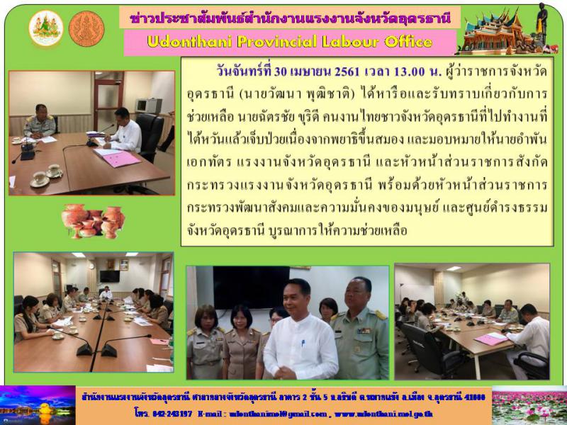 การหารือและรับทราบเกี่ยวกับการช่วยเหลือคนงานไทยชาวจังหวัดอุดรธานีที่ไปทำงานไต้หวันแล้วเจ็บป่วย