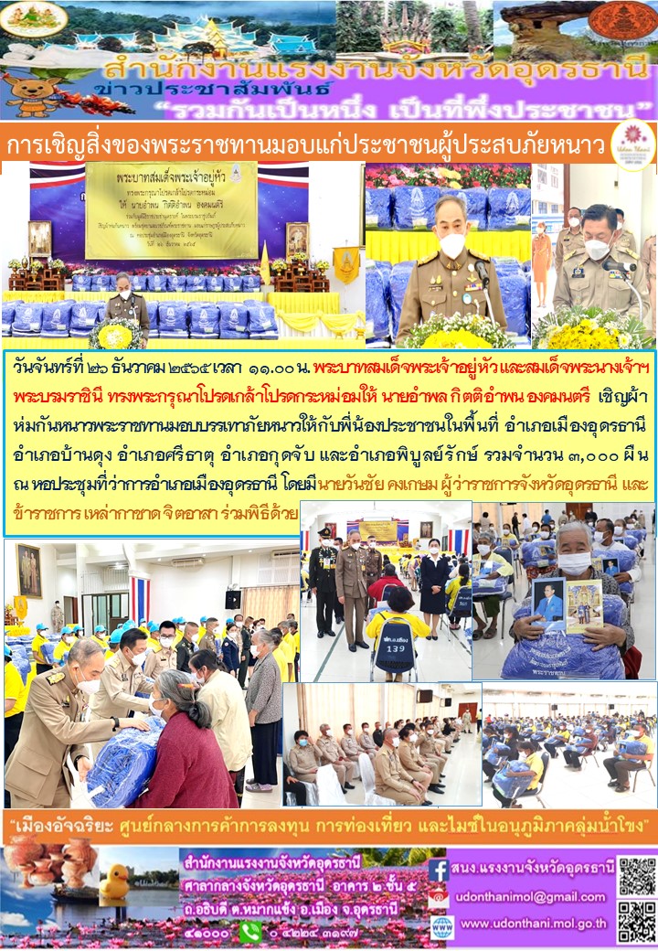 สรจ.อุดรธานี การเชิญสิ่งของพระราชทางมอบแก่ประชาชนผู้ประสบภัยหนาว