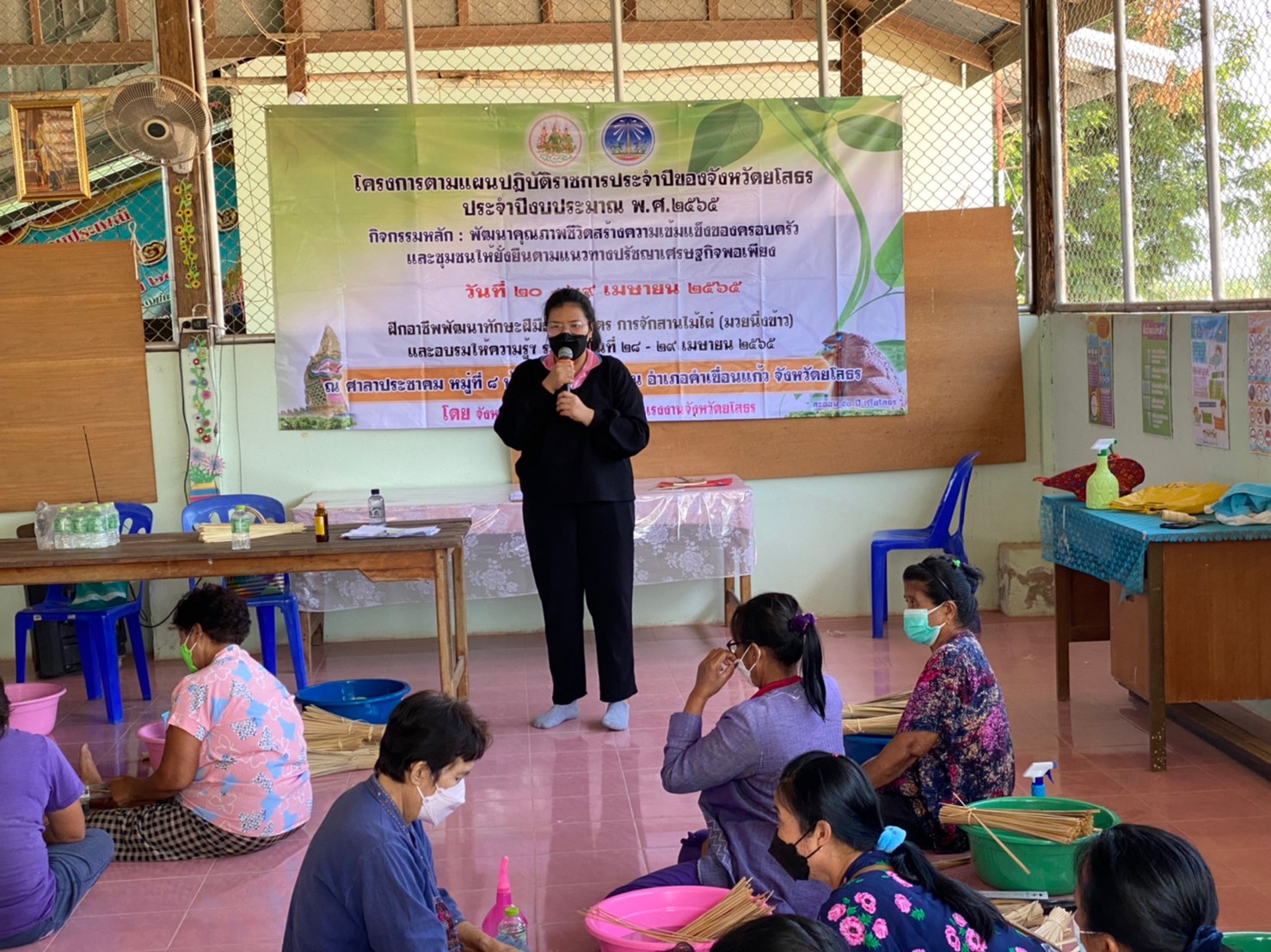 ๑) หลักสูตร : การจักสานไม้ไผ่ (มวยนึ่งข้าว) ณ ศาลาประชาคม บ้านโซง หมู่ที่ ๘ ตำบลทุ่งมน อำเภอคำเขื่อนแก้ว จังหวัดยโสธร ระหว่างวันที่ ๒๐ – ๒๙ เมษายน ๒๕๖๕ โดยมีกลุ่มเป้าหมายจำนวน ๒๕ คน