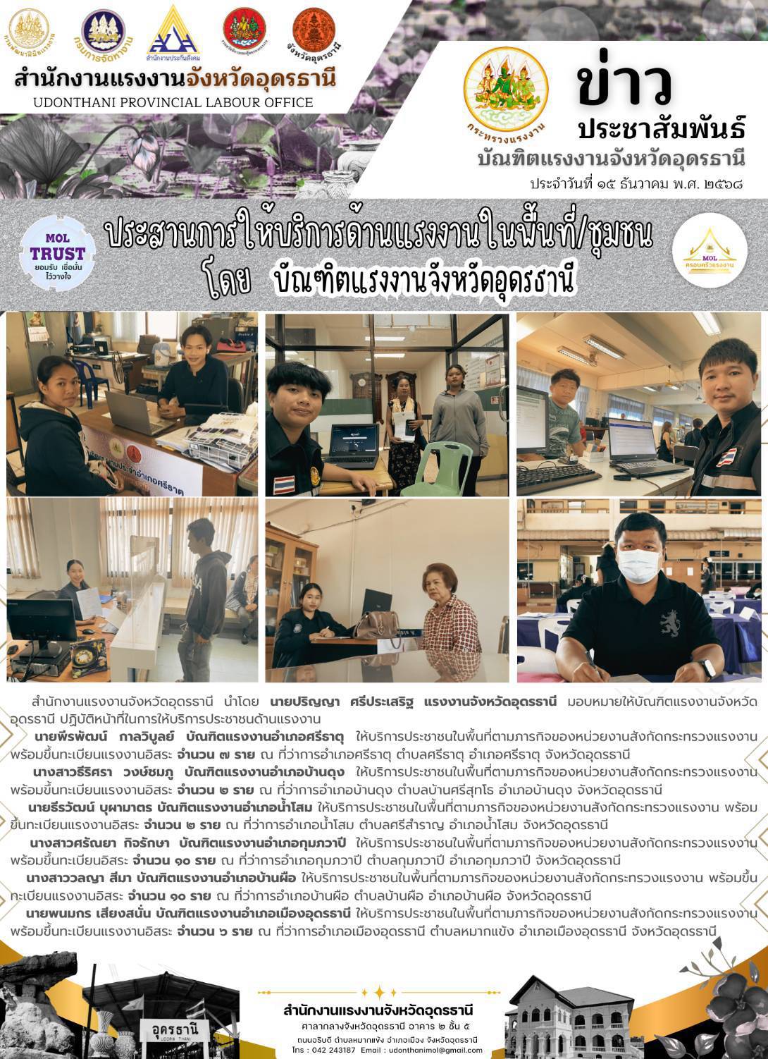 การให้บริการด้านแรงงานในพื้นที่/ชุมชนของบัณฑิตแรงงานจังหวัดอุดรธานี