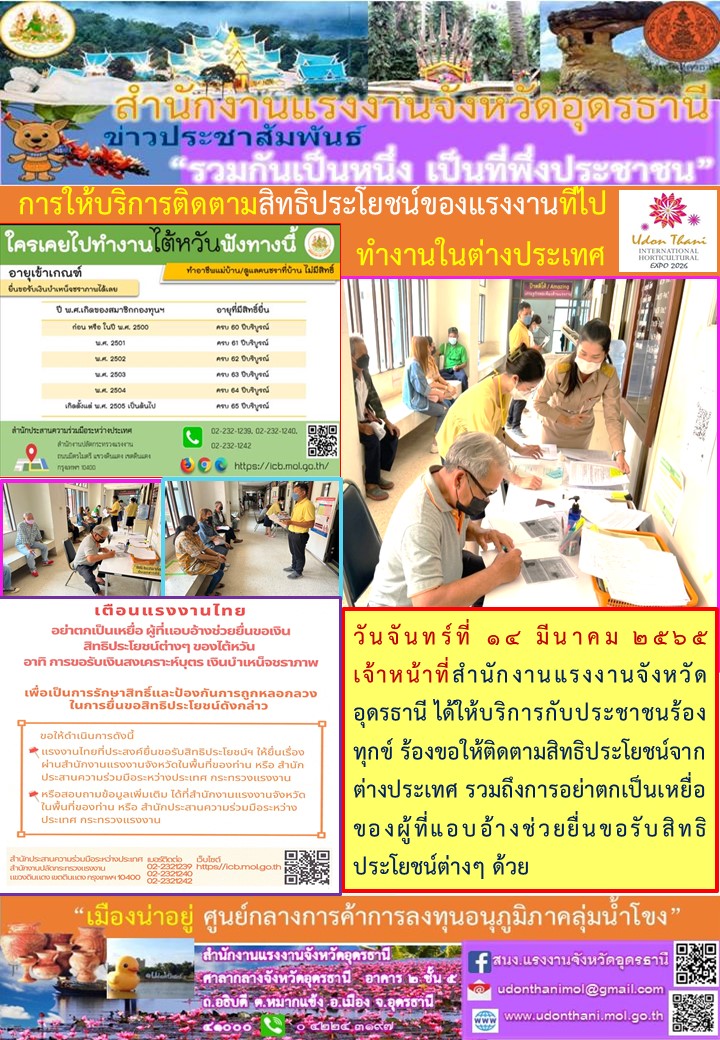 การให้บริการติดตามสิทธิประโยชน์ของแรงงานที่ไปทำงานในต่างประเทศ