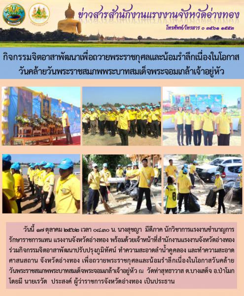 กิจกรรมจิตอาสาจังหวัดอ่างทอง พัฒนาเพื่อถวายพระราชกุศลและน้อมรำลึกเนื่องในโอกาส วันคล้ายวันพระราชสมภพพระบาทสมเด็จพระจอมเกล้าเจ้าอยู่หัว