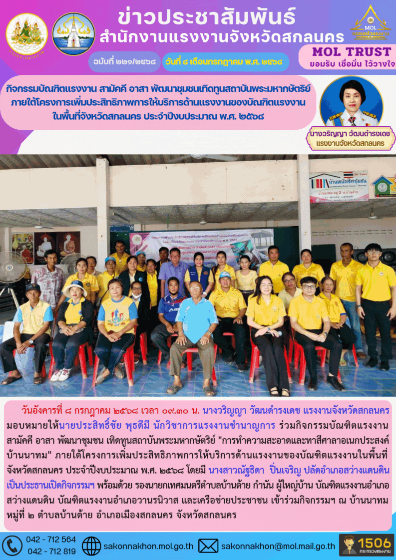 กิจกรรมบัณฑิตแรงงาน สามัคคี อาสา พัฒนาชุมชนเทิดทูนสถาบันพระมหากษัตริย์ ภายใต้โครงการเพิ่มประสิทธิภาพการให้บริการด้านแรงงานของบัณฑิตแรงงาน ในพื้นที่จังหวัดสกลนคร ประจำปีงบประมาณ พ.ศ. 2568