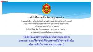 สรจ.ระนอง ร่วมกิจกรรมรับฟังความคิดเห็นเพื่อสร้างความเป็นธรรมในสังคม (Place of Justice)