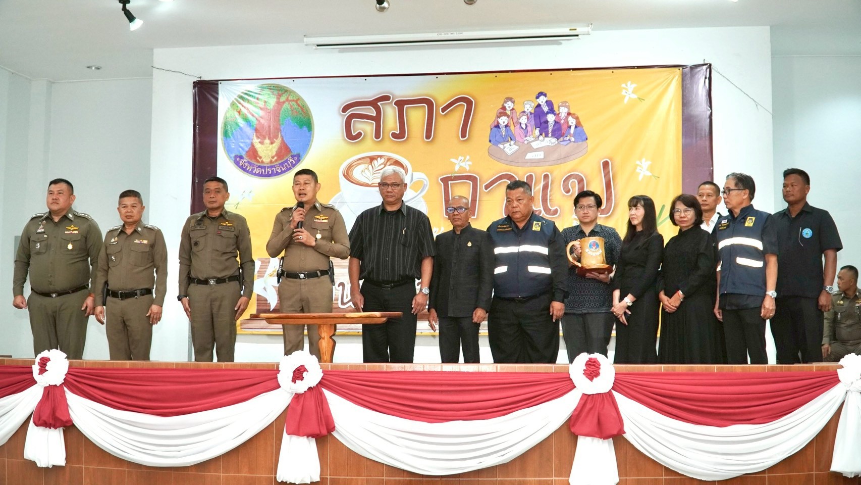 วันพฤหัสบดีที่ 9 เมษายน 2568 เวลา 07.30 นายวินัย มะยมทอง แรงงานจังหวัดปราจีนบุรี พร้อมด้วยหัวหน้าส่วนราชการในจังหวัดปราจีนบุรี เข้าร่วมกิจกรรมสภากาแฟ จังหวัดปราจีนบุรีประจำเดือนเมษายน 2569 ซึ่งมีวัตถุประสงค์เพื่อให้หัวหน้าส่วนราชการพบปะสร้างความสัมพันธ์ หารือข้อราชการ แลกเปลี่ยนความคิดเห็น รับฟังปัญหา และข้อเสนอแนะจากทุกภาคส่วน เพื่อประโยชน์ในการร่วมพัฒนาจังหวัดปราจีนบุรี เป็นประจำทุกเดือน โดยหน่วยงานในสังกัดกระทรวงกลาโหมเป็นเจ้าภาพในการจัดกิจกรรม โดยมี นายวีระพันธ์ ดีอ่อน ผู้ว่าราชการจังหวัดปราจีนบุรี เป็นประธานในการเปิดกิจกรรม ณ อาคารอเนกประสงค์ตำรวจภูธร จังหวัดปราจีนบุรี