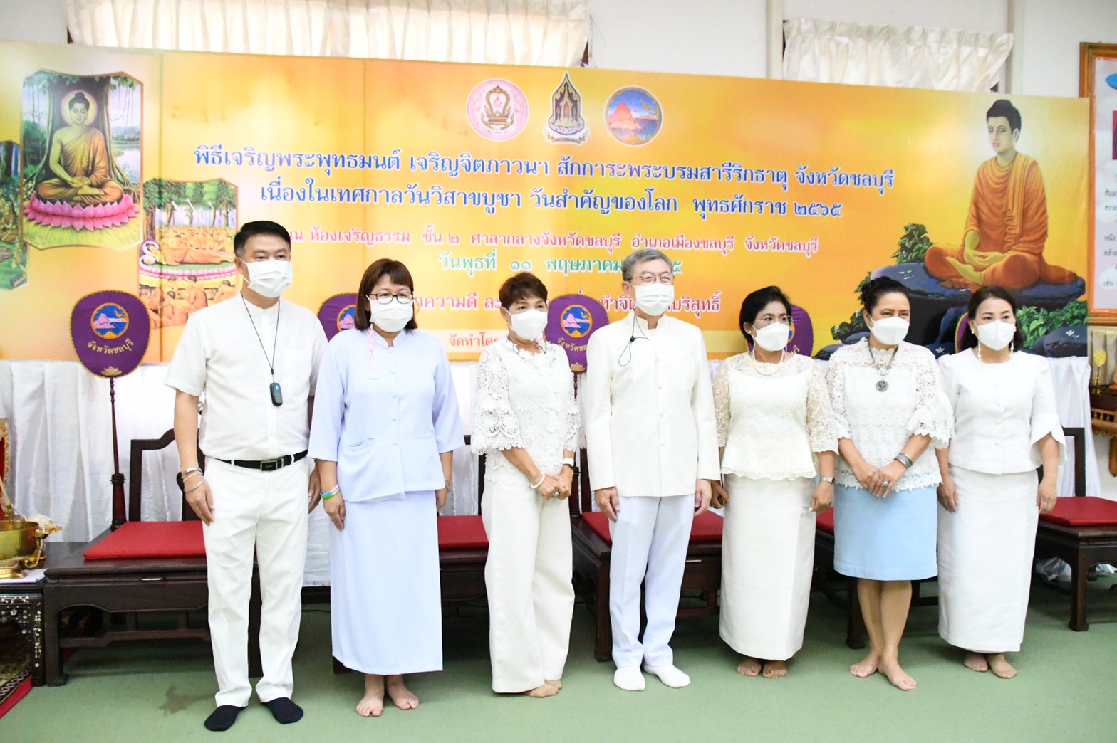 วันพุธที่ 11 พฤษภาคม 2565 เวลา 09.00 น. นางสาวกรจิรัฏฐ์ พงจันทร์ศธร แรงงานจังหวัดชลบุรี เข้าร่วมกิจกรรมส่งเสริมพระพุทธศาสนา เนื่องใน วันวิสาขบูชา พุทธศักราช 2565 เพื่อส่งเสริมให้พุทธศาสนิกชนทุกภาคส่วนได้น้อมรำลึกถึงพระรัตนตรัยด้วยการมีส่วนร่วมกิจกรรมส่งเสริมคุณธรรมจริยธรรมในมิติศาสนา ซึ่งกิจกรรมประกอบด้วยพิธีเจริญพระพุทธมนต์ เจริญจิต ภาวนา สักการะพระบรมสารีริกธาตุ ทำบุญตักบาตร โดยมีนายภัครธรณ์ เทียนไชย ผู้ว่าราชการจังหวัดชลบุรี เป็นประธานในพิธี พร้อมด้วยผู้บริหารระดับสูงจังหวัดชลบุรี และหัวหน้าส่วนราชการ เข้าร่วมในพิธีดังกล่าว ณ ห้องเจริญธรรม ศาลากลางจังหวัดชลบุรี
