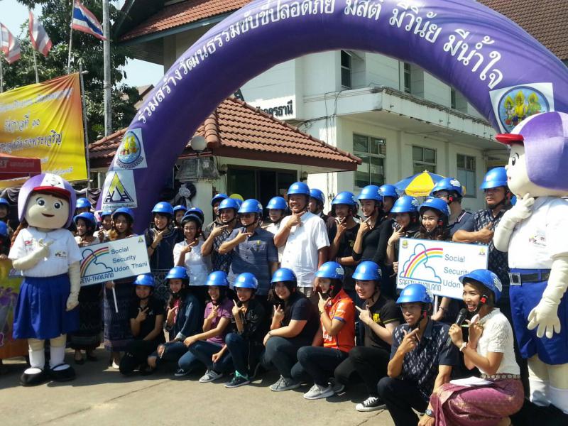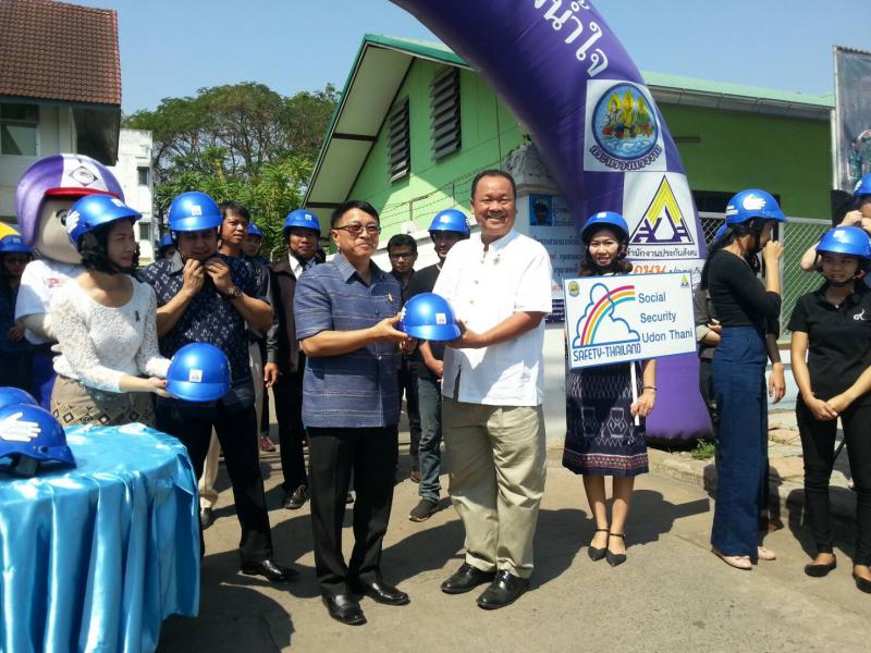 แรงงานจังหวัดอุดรธานี ร่วมเป็นเกียรติในพิธีเปิดกิจกรรมโครงการพัฒนาสมรรถนะบุคลากรด้านคุณธรรม จริยธรรม และความรับผิดชอบต่อสังคม ซึ่งมีวัตถุประสงค์เพื่อส่งเสริมให้บุคลากร มีความรู้ความเข้าใจในการมีคุณธรรม จริยธรรม นำไปเป็นแนวทางในการปฏิบัติตน และมีโอกาสบำเพ็ญประโยชน์เพื่อสังคม โดยการรณรงค์ขับขี่ปลอดภัย มอบหมวกนิรภัยแก่ลูกจ้าง ผู้ประกันตน และประชาชนทั่วไปที่มาติดต่อราชการ ตลอดจนเจ้าหน้าที่ของสำนักงานประกันสังคมจังหวัดอุดรธานี โดยมีนายสุชัย บุตรสาระ รองผู้ว่าราชการจังหวัดอุดรธานี เป็นประธานในพิธีเปิด ในวันที่ 10 กุมภาพันธ์ 2560 เวลา 11.00 น. ณ สำนักงานประกันสังคมจังหวัดอุดรธานี