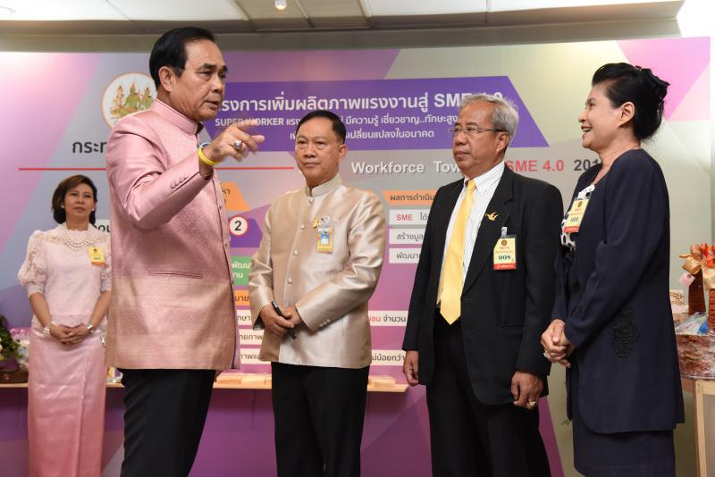 เมื่อวันที่ 26 กุมภาพันธ์ 2562 ที่ทำเนียบรัฐบาล ก่อนเข้าประชุมครม. พล.อ.ประยุทธ์ จันทร์โอชา นายกรัฐมนตรี ได้เยี่ยมชม กิจกรรมประชาสัมพันธ์ โครงการเพิ่มผลิตภาพแรงงานสู่ SME 4.0 (STEM Workforce towards Thailand 4.0 ) ของกระทรวงแรงงาน โดยมี พลตำรวจเอก อดุลย์ แสงสิงแก้ว รัฐมนตรีว่าการกระทรวงแรงงาน นายจรินทร์ จักกะพาก ปลัดกระทรวงแรงงาน นำคณะผู้บริหาร ข้าราชการกระทรวงฯ และตัวแทนผู้ประกอบการกิจการ SME OTOP กลุ่มวิสาหกิจชุมชน นำผลิตภัณฑ์ มาจัดแสดงให้การต้อนรับ พร้อมทั้งรายงานสรุป วัตถุประสงค์และผลการดำเนินงาน ซึ่งนายกรัฐมนตรีได้พูดคุยสอบถาม ข้อมูลเกี่ยวกับความเป็นมาของแต่ละกลุ่มผลิตภัณฑ์สินค้าที่ผลิต ประโยชน์ที่ได้รับจากการเข้าร่วมโครงการ พร้อมเน้นย้ำให้ดำเนินโครงการอย่างต่อเนื่องเพื่อช่วยเหลือผู้ประกอบการขนาดเล็กและขนาดกลาง