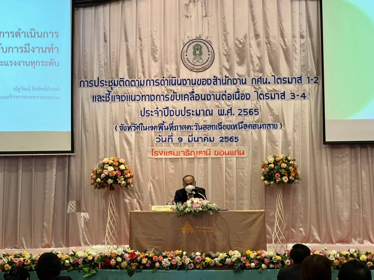 เมื่อวันที่ 9 มีนาคม 2565 นายณัฐวัฒน์ ธีรทัศน์ธำรงค์ คณะที่ปรึกษารัฐมนตรีว่าการกระทรวงแรงงาน ร่วมการประชุมและชี้แจงการขับเคลื่อนการดำเนินการส่งเสริมการศึกษากับการมีงานทำให้แก่นักเรียน นักศึกษา และแรงงานทุกระดับ ณ โรงแรมเจริญธานีขอนแก่น อำเภอเมืองขอนแก่น จังหวัดขอนแก่น