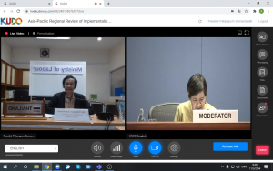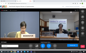 เมื่อวันที่ 11 มีนาคม 2564 เวลา 09.00 น. นายสุทธิ สุโกศล ปลัดกระทรวงแรงงาน มอบหมายให้ นางสาวภัทรพร สมันตรัฐ ผู้ช่วยปลัดกระทรวงแรงงาน เข้าร่วมการเสวนาโต๊ะกลม ในรูปแบบทางไกลผ่านจอภาพ หัวข้อ “Progress made with respect to legal labour migration pathways, fair recruitment and decent work and challenges” เพื่อทบทวนการปฏิบัติตามข้อตกลงระหว่างประเทศ เพื่อการโยกย้ายถิ่นฐานที่ปลอดภัย เป็นระเบียบ และปกติ (The Global Compact for Safe, Orderly and Regular Migration (GCM)) จัดโดยคณะกรรมาธิการเศรษฐกิจและสังคมแห่งสหประชาชาติสำหรับเอเชียและแปซิฟิก (United Nations Economic and Social Commission for Asia and the Pacific (UN ESCAP) และเครือข่ายสหประชาชาติว่าด้วยการโยกย้ายถิ่นฐาน (UN Network on Migration) โดยได้เสวนาถึง 3 ประเด็น ดังนี้