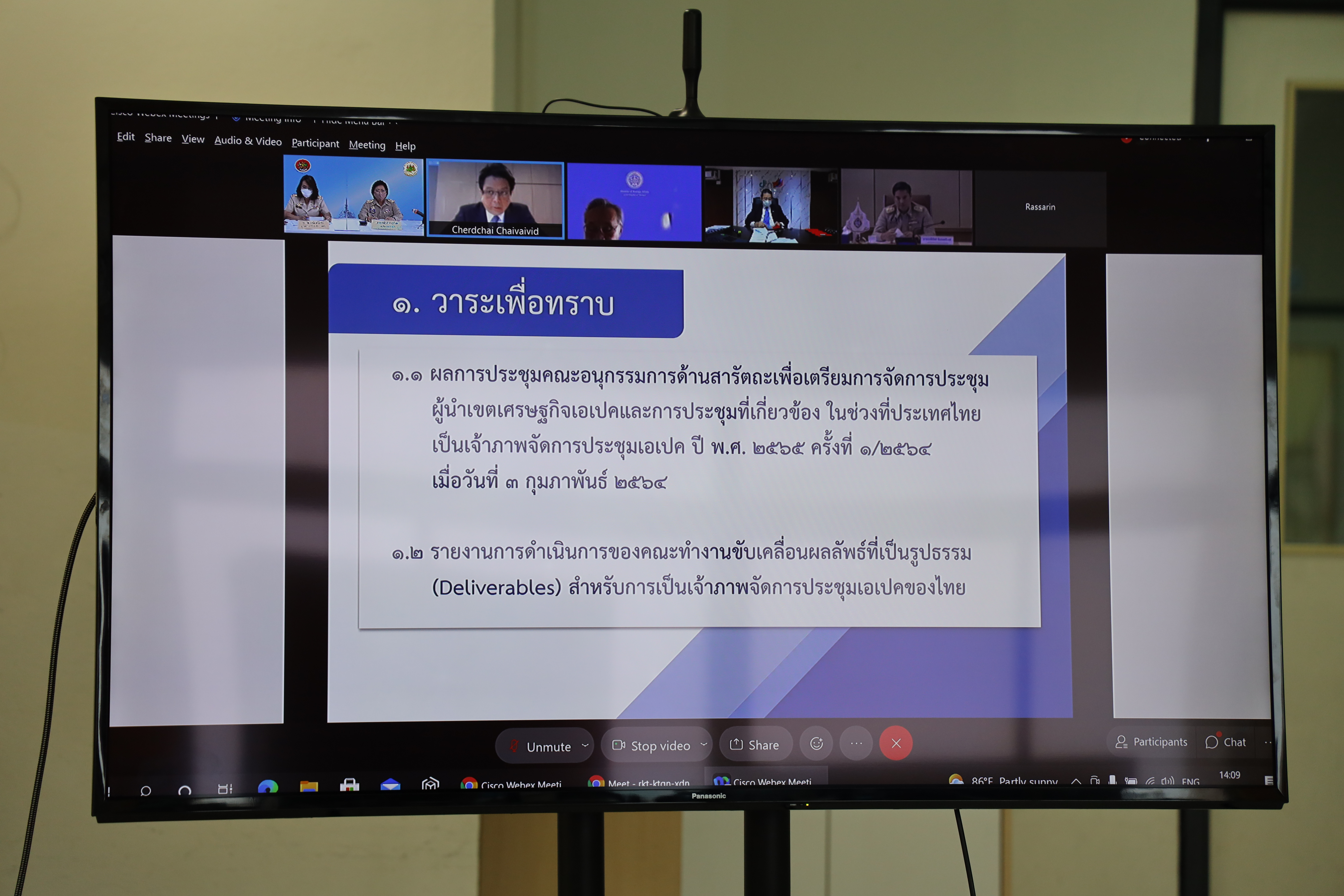 สำหรับการประชุมในวันนี้ ที่ประชุมรับทราบประเด็นสำคัญ 3 ด้าน ได้แก่ 1) ด้านการส่งเสริมการเจริญเติบโตที่ครอบคลุม 2) ด้านการอำนวยความสะดวกด้านการค้าและการลงทุน และ 3) ด้านการฟื้นฟูความเชื่อมโยง โดยเฉพาะการเดินทางและการท่องเที่ยว โดยกระทรวงที่รับผิดชอบรายงานความคืบหน้าการเตรียมการเกี่ยวกับผลลัพธ์ที่เป็นรูปธรรม (Key Deliverables) ที่ประกอบไปด้วย 1) การจัดทำ Bangkok Goals on BCG 2) การขับเคลื่อนการจัดทำเขตการค้าเสรีเอเชีย-แปซิฟิก (FTAAP) และ 3) การจัดทำ APEC Frequent Travel Card AFTC ต่อยอดจากบัตรเดินทางสำหรับนักธุรกิจเอเปค (ABTC) และคณะอนุกรรมการด้านสารัตถะฯ มีมติเห็นชอบ และที่ประชุมรับทราบความคืบหน้าการเตรียมการเป็นเจ้าภาพเอเปคของไทยในปี 2565 ในด้านพิธีการและอำนวยการ ด้านการรักษาความปลอดภัยและการจราจร และด้านประชาสัมพันธ์