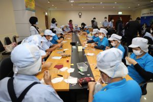 ผู้ช่วยรัฐมนตรีประจำกระทรวงแรงงาน คิกออฟ สอนทำหน้ากากอนามัยและเจลล้างมือ ณ บริษัทบางกอกแคนแมนนูแฟคเจอริ่ง จำกัด จังหวัดปทุมธานี สร้างการรับรู้แรงงานในสถานประกอบการรู้จักวิธีป้องกันตนเองจากไวรัสโควิด – 19 ก่อนดีเดย์เข้าไปสอนทำหน้ากากอนามัยในสถานประกอบการทั่วประเทศ