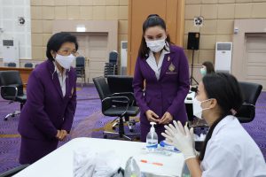วันที่ 4 มิถุนายน 2564 เวลา 12.30 น. นางธิวัลรัตน์ อังกินันทน์ ที่ปรึกษารัฐมนตรีว่าการกระทรวงแรงงาน พร้อมด้วย นางสาวอำพันธ์ ธุวะวิทย์ รองปลัดกระทรวงแรงงาน ในฐานะรองนายกสมาคมแม่บ้านกระทรวงแรงงาน ตรวจเยี่ยมให้กำลังใจผู้บริจาคโลหิต ในกิจกรรมบริจาคโลหิต “แรงงานรวมใจ จิตอาสาบริจาคโลหิต 1 คนให้ หลายคนรับ” ครั้งที่ 2/2564 เพื่อเป็นการกระตุ้นให้ผู้บริจาคโลหิต ร่วมบริจาคโลหิตอย่างสม่ำเสมอในทุกๆ 3 เดือน รวมทั้งเพื่อให้ได้รับโลหิตบริจาคเพียงพอสำหรับผู้ป่วยทั่วประเทศ ซึ่งเป็นกิจกรรมบริจาคโลหิตครั้งที่ 2 ในปี 2564 และมีผู้ให้ความสนใจเข้าร่วมกิจกรรมจำนวน 60 คน โดยกระทรวงแรงงานร่วมกับสมาคมแม่บ้านกระทรวงแรงงานและศูนย์บริการโลหิตแห่งชาติ สภากาชาดไทย ณ ห้องประชุมจอมพล ป. พิบูลสงคราม ชั้น 5 กระทรวงแรงงาน