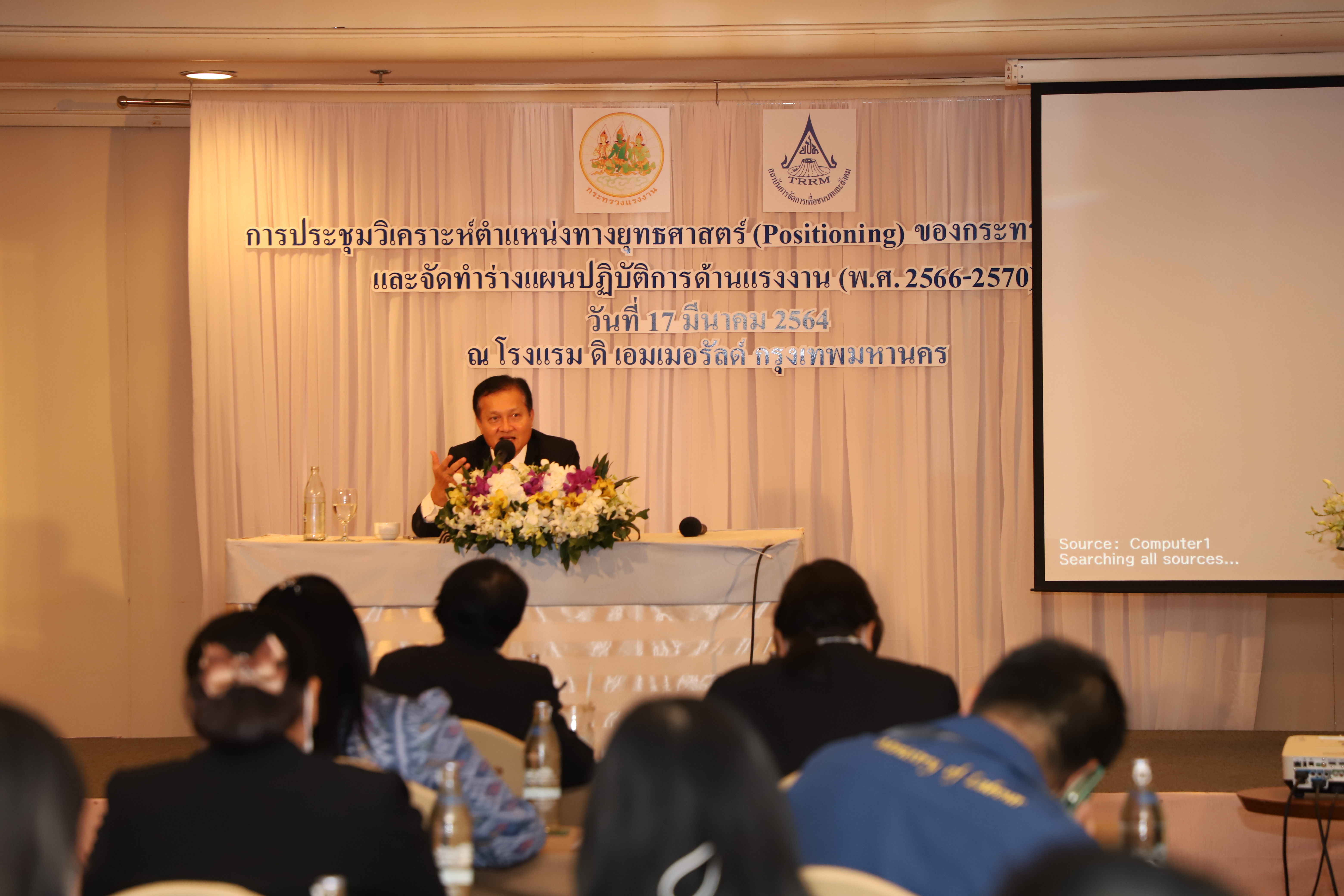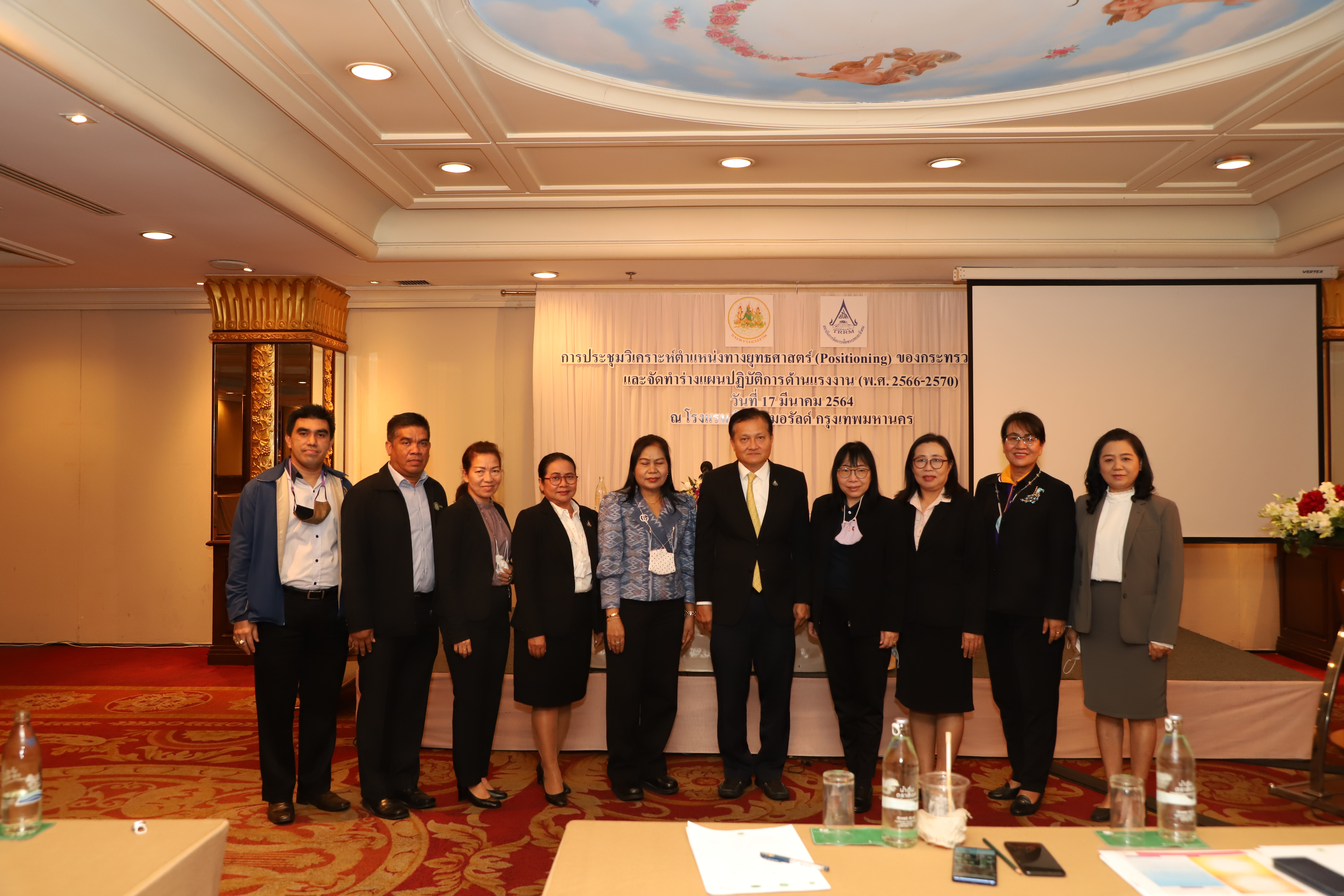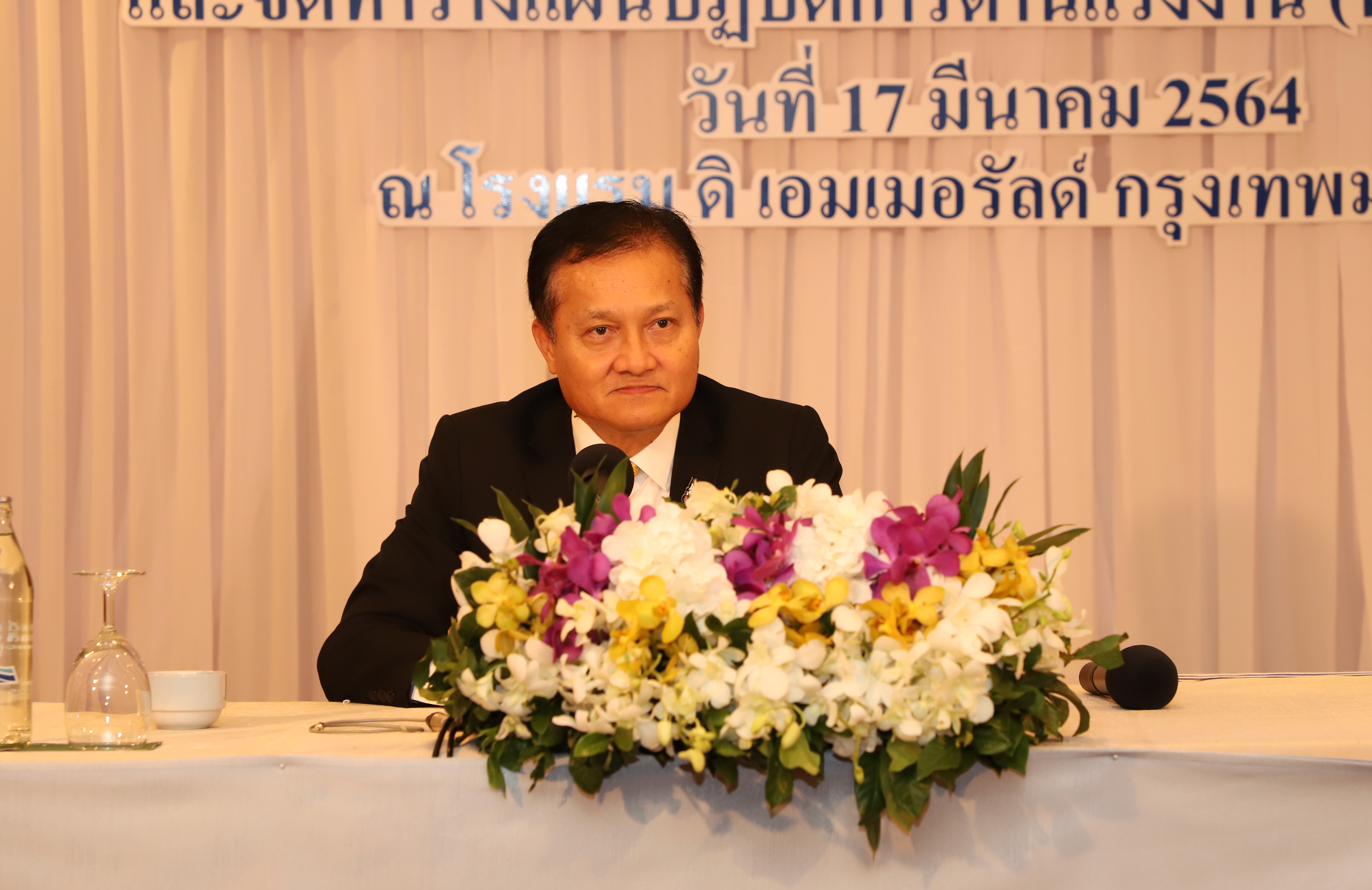 วันที่ 17 มีนาคม 2564 เวลา 09.30 น. นายสุทธิ สุโกศล ปลัดกระทรวงแรงงาน เป็นประธานเปิดการประชุมวิเคราะห์ตำแหน่งทางยุทธศาสตร์ (Positioning) และการจัดทำร่างแผนปฏิบัติการด้านแรงงาน (พ.ศ. 2566 –2570) ณ โรงแรมดิเอมเมอรัลด์ รัชดาภิเษก กรุงเทพมหานคร มีผู้เข้าร่วมประชุมจำนวน 6๐ คน ดังนี้ เลขาธิการสำนักงานประกันสังคม ผู้อำนวยการสำนักงานส่งเสริมความปลอดภัยอาชีวอนามัยและสิ่งแวดล้อมในการทำงาน (องค์กรมหาชน) ผู้ช่วยปลัดกระทรวงแรงงาน ที่ปรึกษาวิชาการแรงงาน และผู้อำนวยการสำนัก/ศูนย์/กอง/กลุ่ม แรงงานจังหวัด ข้าราชการและเจ้าหน้าที่ผู้ปฏิบัติงานด้านแผน โดยมีวัตถุประสงค์เพื่อศึกษาวิเคราะห์ความสอดคล้องเชื่อมโยงของแผนปฏิบัติการด้านแรงงาน (พ.ศ. 2566 –2570) กับแผนระดับที่ 1 ระดับที่ 2 ที่เกี่ยวข้อง และมาตรฐานสากลด้านแรงงาน บริบทด้านแรงงานที่เปลี่ยนแปลง ให้สะท้อนกรอบแนวคิดและทิศทางการทำงานด้านแรงงานเชิงรุก พร้อมรองรับต่อปัญหาแรงงาน ที่จะส่งผลต่อการทำให้แรงงานไทยมีศักยภาพสูงและคุณภาพชีวิตที่ดี และตอบสนองต่อภาพรวมการพัฒนาประเทศต่อไปในอนาคต