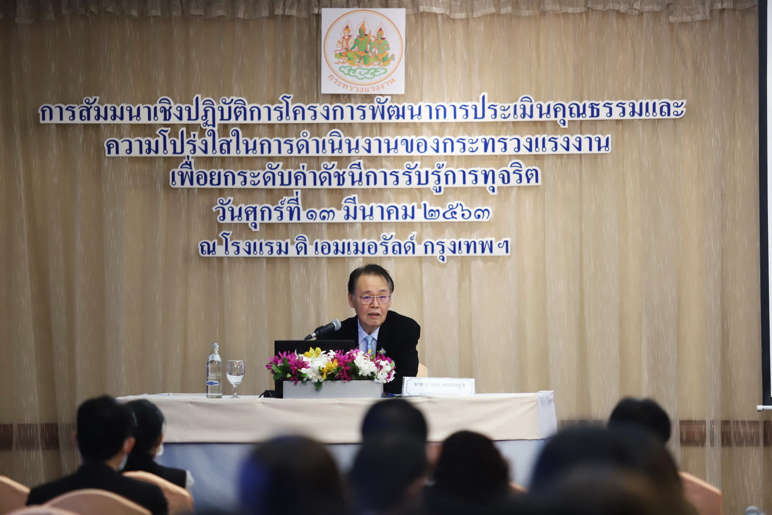 วันที 13 มีนาคม 2562 เวลา 13.30 น. นายสุรพล พลอยสุข รองปลัดกระทรวงแรงงาน เป็นประธานเปิดการสัมมนาเชิงปฏิบัติการโครงการพัฒนาการประเมินคุณธรรมและความโปร่งใสการดำเนินงานของกระทรวงแรงงานเพื่อยกระดับค่าดัชนีการรับรู้การทุจริต ณ โรงแรมดิเอมเมอรัลด์ กรุงเทพฯ