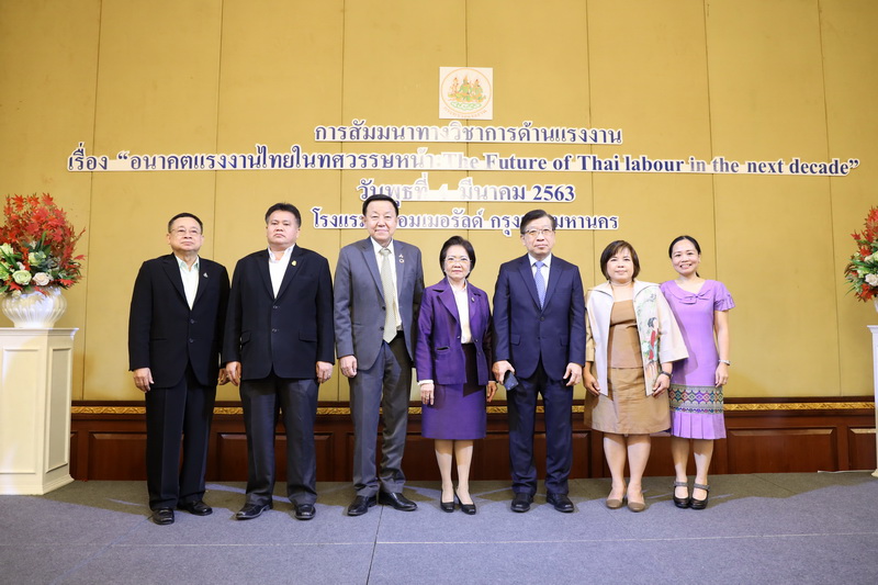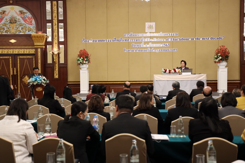 วันที่ 4 มีนาคม 2563 เวลา 09.30 น. นายสุทธิ สุโกศล ปลัดกระทรวงแรงงาน มอบหมายให้ นางสาวอำพันธ์ ธุววิทย์ รองปลัดกระทรวงแรงงาน เป็นประธานในพิธีเปิดการสัมมนาทางวิชาการด้านแรงงาน เรื่อง “อนาคตแรงงานไทยในทศวรรษหน้า : The Future of Thai labour in the next decade” พร้อมทั้งปาฐกถาพิเศษ เรื่อง “การขับเคลื่อนนโยบายเพื่อพัฒนาแรงงานแห่งอนาคต” ณ โรงแรม ดิ เอมเมอรัลด์ กรุงเทพมหานคร โดยงานสัมมนาทางวิชาการดังกล่าวมีวัตถุประสงค์เพื่อรับฟังความคิดเห็นจากทุกภาคส่วน เกี่ยวกับผลกระทบที่จะเกิดขึ้นต่อผู้ประกอบการและภาคแรงงานในอนาคตอันใกล้นี้ จากการเปลี่ยนโครงสร้างทางเศรษฐกิจและการปรับตัวของภาคธุรกิจที่มีการนำเทคโนโลยีมาใช้ในการเพิ่มผลผลิตแทนการใช้แรงงานแบบเดิม ซึ่งจำเป็นที่จะต้องใช้คนที่มีทักษะ ความรู้ ความสามารถในการใช้เทคโนโลยีสมัยใหม่ในการทำงา