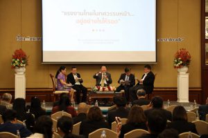 จากนั้นเป็นการอภิปราย เรื่อง “แรงงานไทยในทศวรรษหน้า…อยู่อย่างไรให้รอด?” โดยนายถาวร ชลัษเฐียร ประธานสภาที่ปรึกษาเพื่อพัฒนาแรงานแห่งชาติ ชุดที่ ๑๘ นายสุชาติ จันทรานาคราช รองประธานสภาอุตสาหกรรมแห่งประเทศไทย ฝ่ายแรงงาน นายมานิตย์ พรหมอารีย์กุล ประธานสภาองค์การลูกจ้างแรงงานยานยนต์แห่งประเทศไทย และรศ.ดร. ยงยุทธ แฉล้มวงศ์ ผู้อำนวยการวิจัยนโยบายทรัพยากรมนุษย์ สถาบันวิจัยเพื่อการพัฒนาประเทศไทย (TDRI) ดำเนินรายการโดย รศ.ดร. กิริยา กุลกลการ คณะเศรษฐศาสตร์ มหาวิทยาลัยธรรมศาสตร์