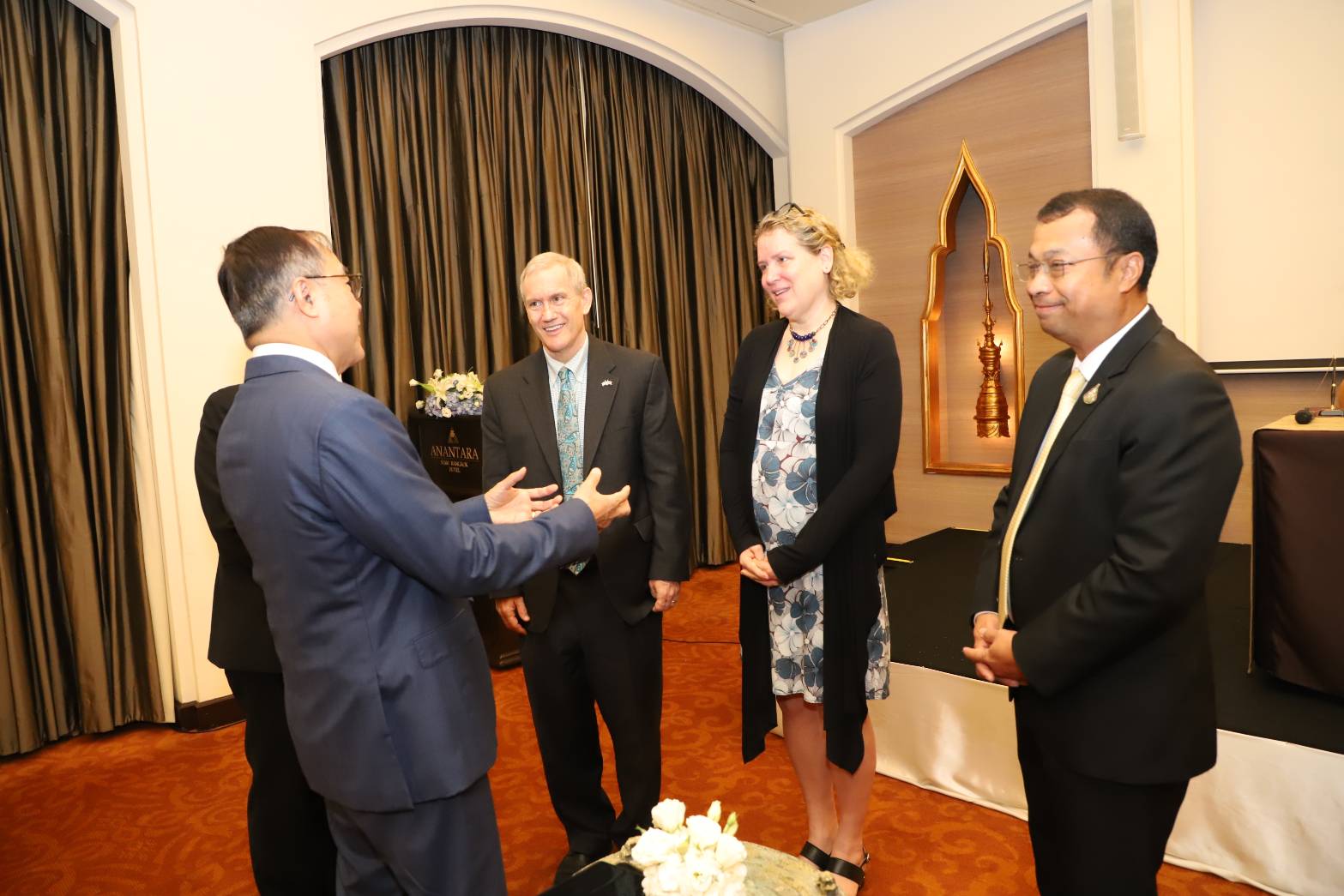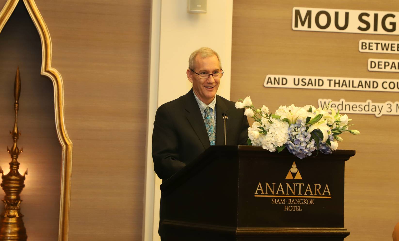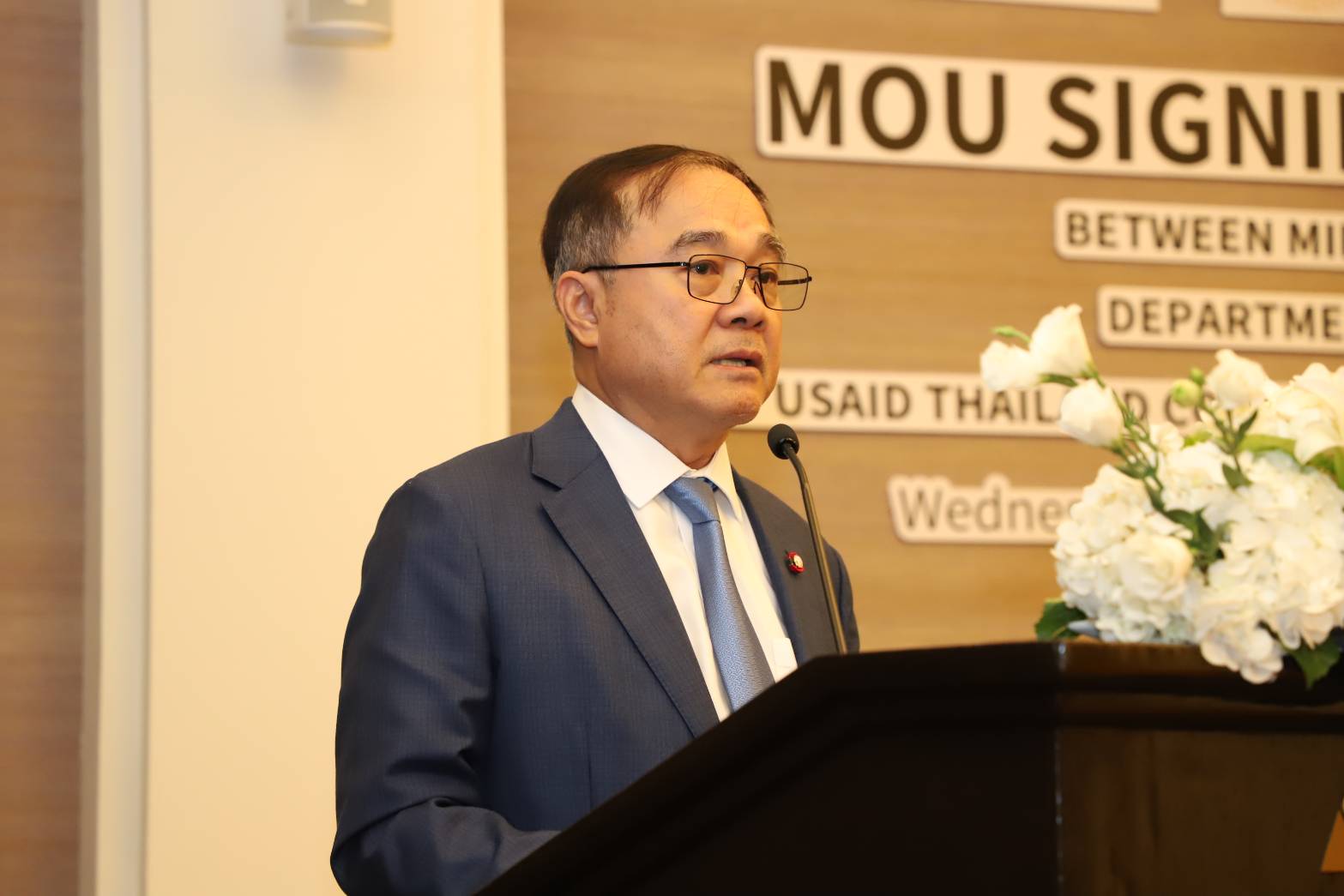 On May 3, 2023, the Permanent Secretary of Labour, Mr. Boonchob Suttamanaswong, assigned the Deputy Permanent Secretary of Labour, Mr. Wannarat Srisuksai, to attend the signing ceremony of a Memorandum of Understanding (MoU) on reducing labour vulnerability to human trafficking. Deputy Secretary-General to the Prime Minister, Police Lieutenant Colonel Dr. Thammasak Witcharaya, presided as a witness. Dr. Steven G. Olive, the Director of the United States Agency for International Development (USAID), Asia Office, Mr. Bancha Sukkaew, Deputy Director-General of the Department of Fisheries acting for the Director-General of the Department of Fisheries, and Mrs. Meghan MacBain, Director of the Thailand Anti-Trafficking Program in Persons supported by the USAID Thailand Counter Trafficking in Persons project, run by Winrock International in Thailand, also attended. The occasion took place at Anantara Siam Hotel, Ratchadamri Road, Pathum Wan District, Bangkok.