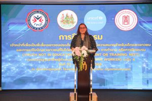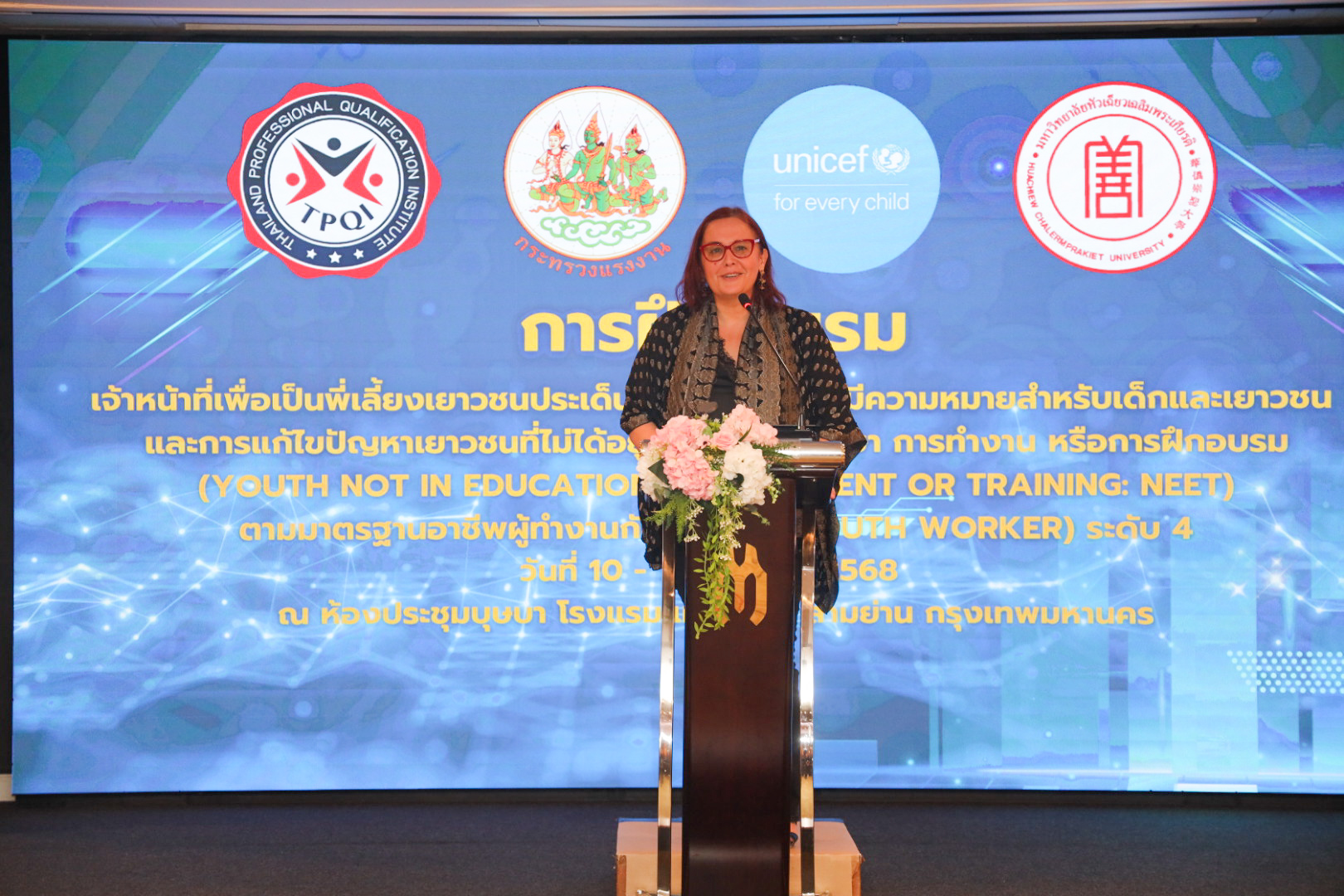 “กระทรวงแรงงานขอขอบคุณองค์การยูนิเซฟ ประเทศไทย คณะวิทยากรจากสถาบันคุณวุฒิวิชาชีพ มหาวิทยาลัยหัวเฉียวเฉลิมพระเกียรติ และผู้เข้าร่วมอบรมทุกท่าน ที่มาร่วมกันผลักดันภารกิจสำคัญนี้ ขอให้การฝึกอบรมบรรลุวัตถุประสงค์ และขอให้ทุกท่านนำความรู้กลับไปเป็นพลังในการขับเคลื่อนการทำงานในพื้นที่