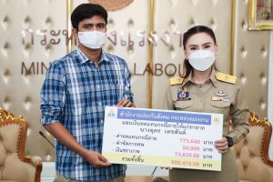 เมื่อวันที่ 21 กุมภาพันธ์ 2565 ที่ห้องจัตุมงคล ชั้น 6 อาคารกระทรวงแรงงาน นายสุชาติ ชมกลิ่นรัฐมนตรีว่าการกระทรวงแรงงาน มอบหมายให้ นางธิวัลรัตน์ อังกินันทน์ ที่ปรึกษารัฐมนตรีว่าการกระทรวงแรงงาน มอบสิทธิประโยชนเงินทดแทนแก่ญาติลูกจ้างจำนวน 3 ราย กรณีลูกจ้างเสียชีวิตจากเหตุการณ์ไซต์งานก่อสร้าง โครงการวันแบงค็อก ถนนพระราม 4 แขวงลุมพินี เขตปทุมวัน กรุงเทพมหานคร เกิดอุบัติเหตุเหล็กค้ำยันรองรับหล่อคอนกรีตพังถล่มขณะเทคอนกรีต โดยมี นางเธียรรัตน์ นะวะมะวัฒน์ โฆษกกระทรวงแรงงาน (ฝ่ายการเมือง) คุณอรวรรญา พันธุ์เขียว สมุห์บัญชี ตัวแทน บริษัท อิตาเลียนไทย ดีเวลลอปเม้นท์ จำกัด (มหาชน) พร้อมด้วยผู้บริหารระดับสูงกระทรวงแรงงาน เข้าร่วมในครั้งนี้ด้วย