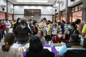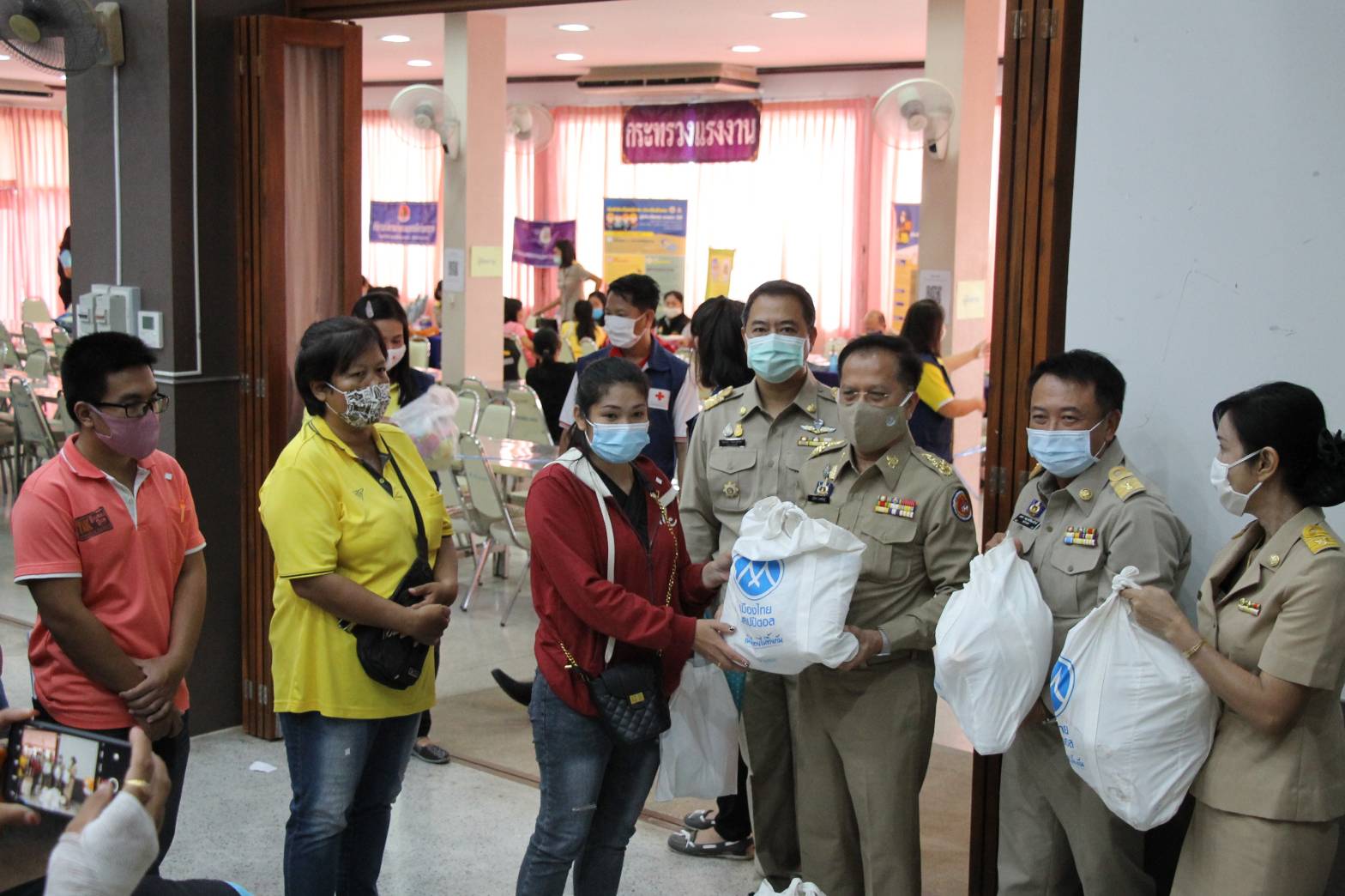 วันจันทร์ที่ 3 สิงหาคม 2563 เวลา 09.00 น. นายอรรถพร สิงหวิชัย ผู้ว่าราชการจังหวัดนครสวรรค์ นายปรีชา เดชพันธุ์ รองผู้ว่าราชการจังหวัดนครสวรรค์ และนางประภาวดี สิงหวิชัย นายกเหล่ากาชาดจังหวัดนครสวรรค์ เยี่ยมชมกิจกรรมของศูนย์บริการให้ความช่วยเหลือ สำหรับลูกจ้างที่ถูกเลิกจ้างโดยบริษัทบอดี้ แฟชั่น ประเทศไทย จำกัด สาขานครสวรรค์ พร้อมมอบถุงยังชีพ เพื่อเป็นการบรรเทาความเดือดร้อนเบื้องต้น โดยมี นายสมาสภ์ ปัทมะสุคนธ์ แรงงานจังหวัดนครสวรรค์ ให้การต้อนรับและนำเยี่ยมชมการให้บริการ พร้อมเปิดเผยว่า กิจกรรมของศูนย์บริการให้ความช่วยเหลือในครั้งนี้ ได้บูรณาการหน่วยงานในสังกัดกระทรวงแรงาน จังหวัดนครสวรรค์ สำนักงานพัฒนาสังคมและความมั่นคงของมนุษย์จังหวัดนครสวรรค์ และสำนักงานเหล่ากาชาด จังหวัดนครสวรรค์ ร่วมกันเปิดศูนย์บริการให้ความช่วยเหลือ สำหรับลูกจ้างที่ถูกเลิกจ้างโดยบริษัทบอดี้ แฟชั่น ประเทศไทย จำกัด สาขานครสวรรค์ จำนวน 753 คน และการให้ความช่วยเหลือแก่ครอบครัวผู้ยากจน การมอบถุงยังชีพ จำนวน 800 ชุด อาหารปรุงสุก และเครื่องดื่มให้บริการ ณ ศาลาประชาคม หน้าศาลากลางจังหวัดนครสวรรค์ (หลังใหม่)