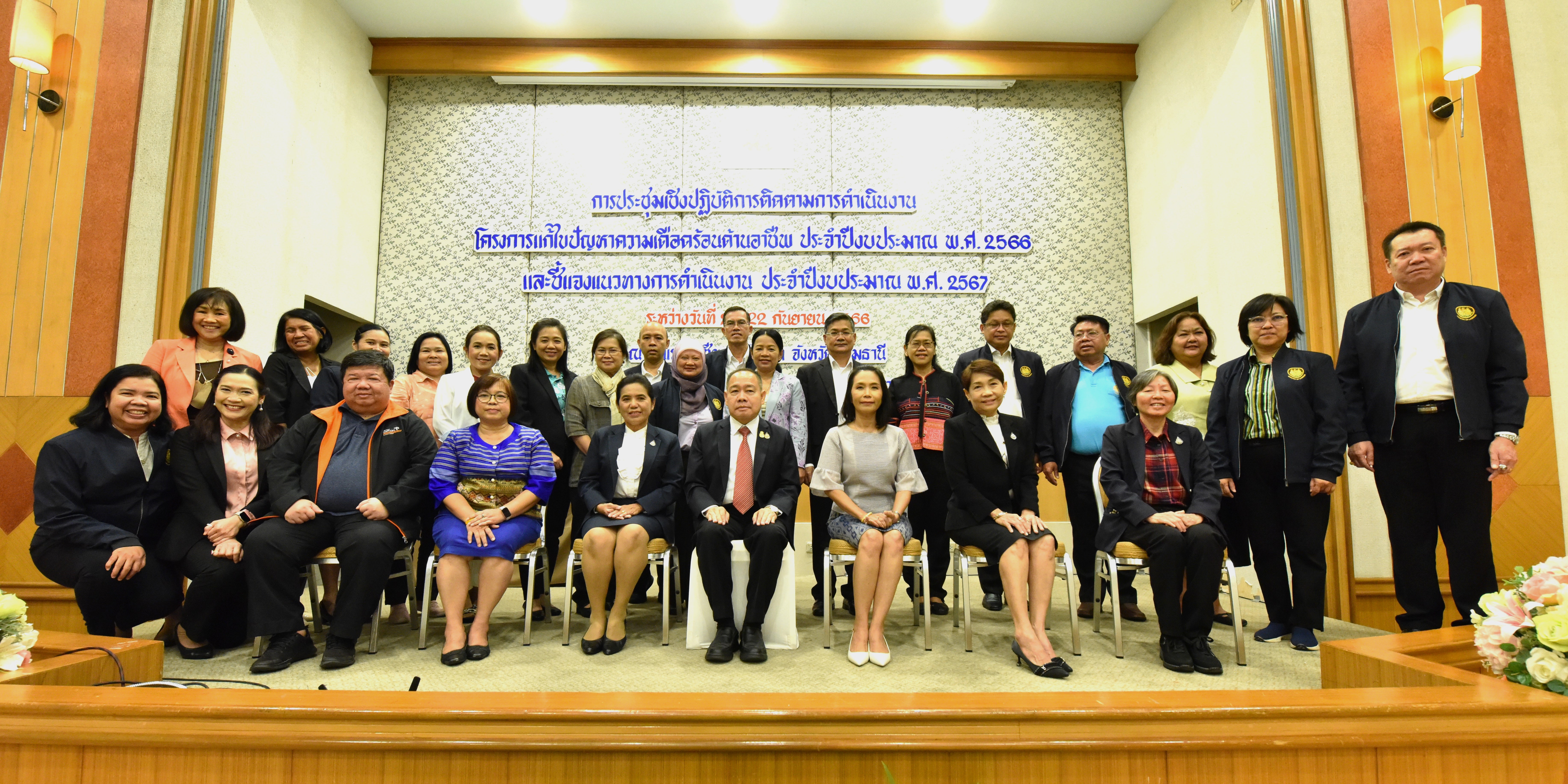 The meeting was held between September 20 to 22, 2023. The objective is to follow up on the project’s performance to solve occupational issues for the 2023 fiscal year and explain operational guidelines for the 2024 fiscal year. It also acknowledged problems and obstacles and reviewed related regulations and manuals. The meeting aims to enhance knowledge and understanding of project implementation and drive direction in the current labour situation. There were 180 meeting attendees, including Ministry of Labour executives, provincial workers from 76 provinces, and Office of the Permanent Secretary of Labour officials.