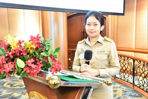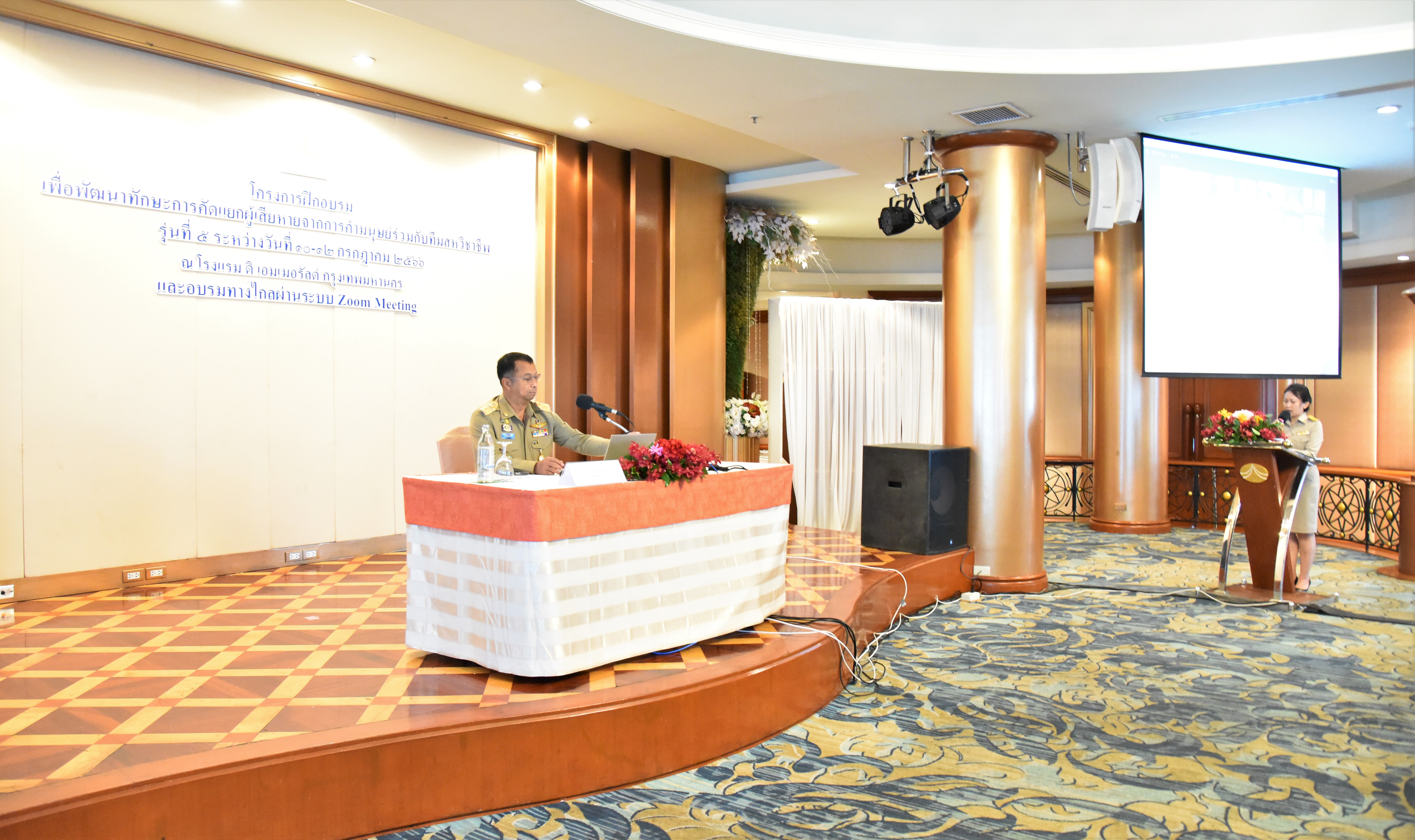 On July 10, 2023, at 09.00 hours, the Permanent Secretary of Labour, Mr. Boonchob Suttamanaswong, assigned the Deputy Permanent Secretary of Labour and the Ministry of Labour’s Spokesperson, Mr. Wannarat Srisuksai, to preside over the opening ceremony of the training program on identifying human trafficking victims, together with the multidisciplinary team, batch five, and to speak on “policies for the prevention and remediation of forced labour or services and human trafficking in persons.” The occasion took place at the Emerald Hotel, Ratchadaphisek Road, Din Daeng District, Bangkok, and online via Zoom Meetings. The Director of the Office of the Secretariat of the Labour Trafficking Prevention Command Center, Ms. Sopana Boon-Long, reported on the project’s objectives.