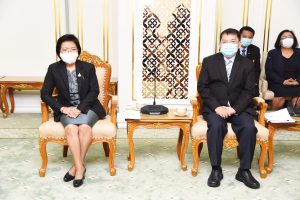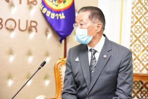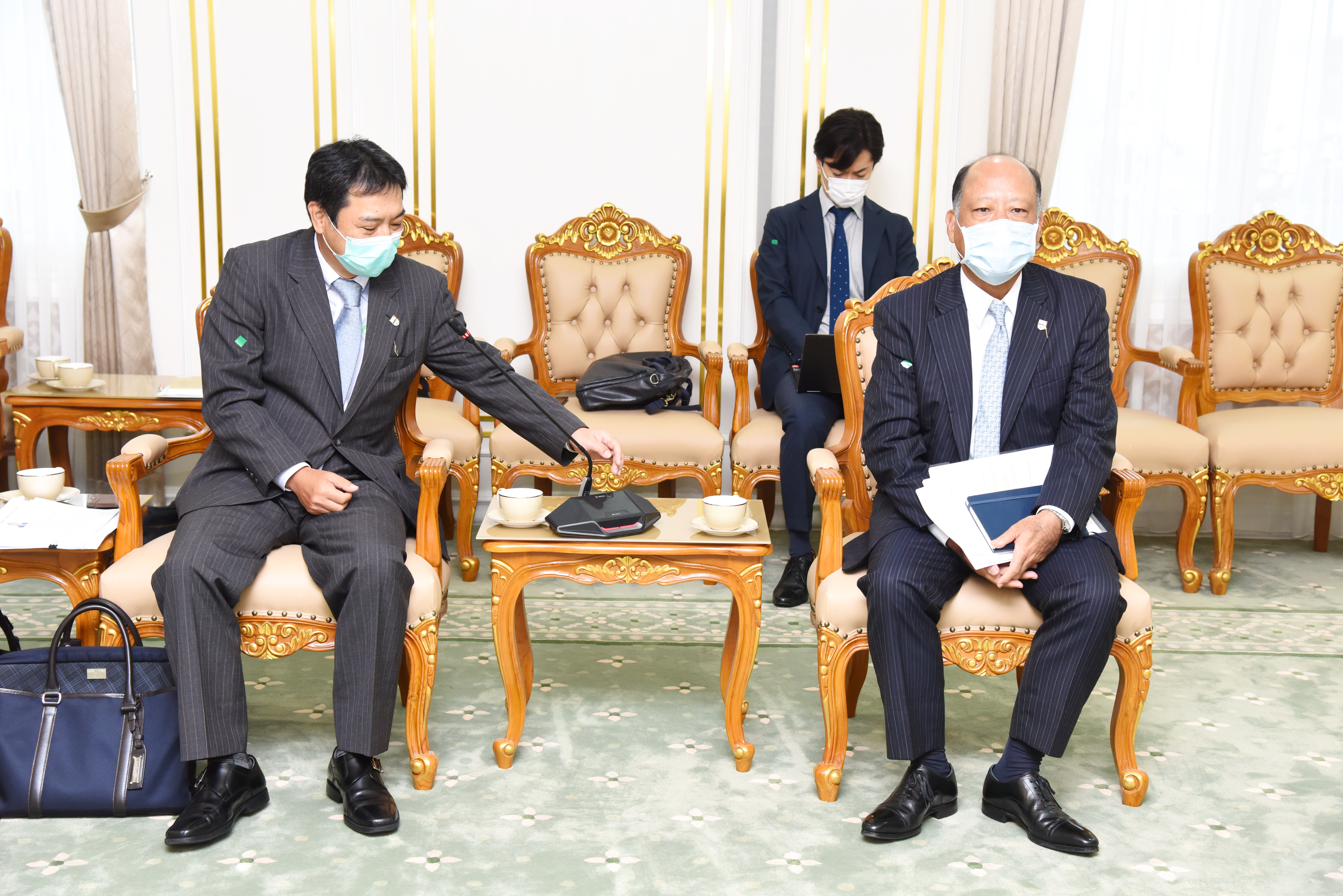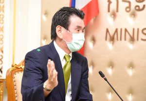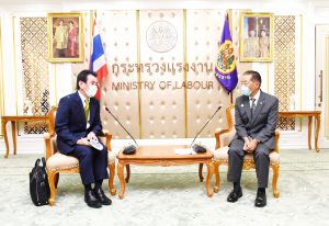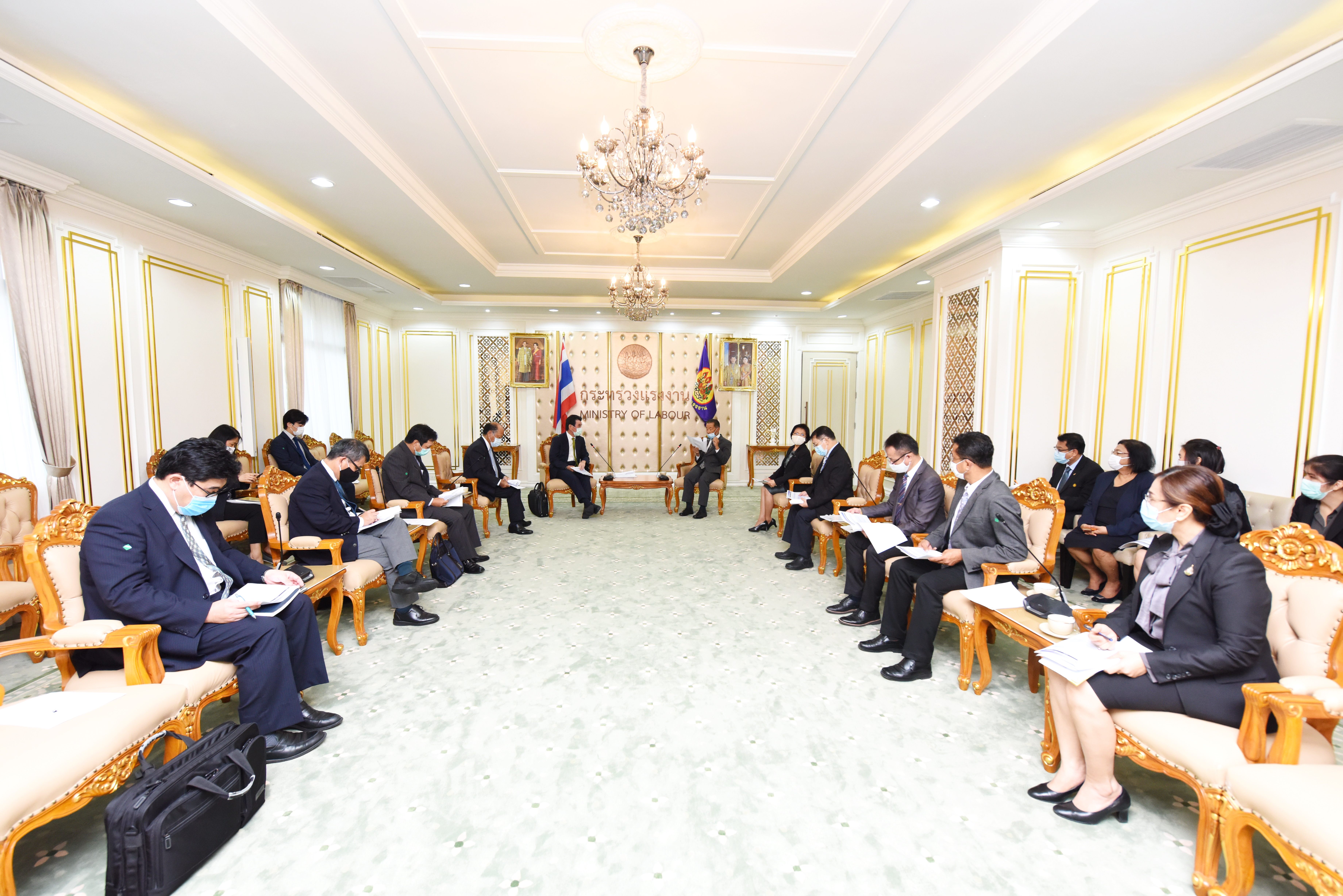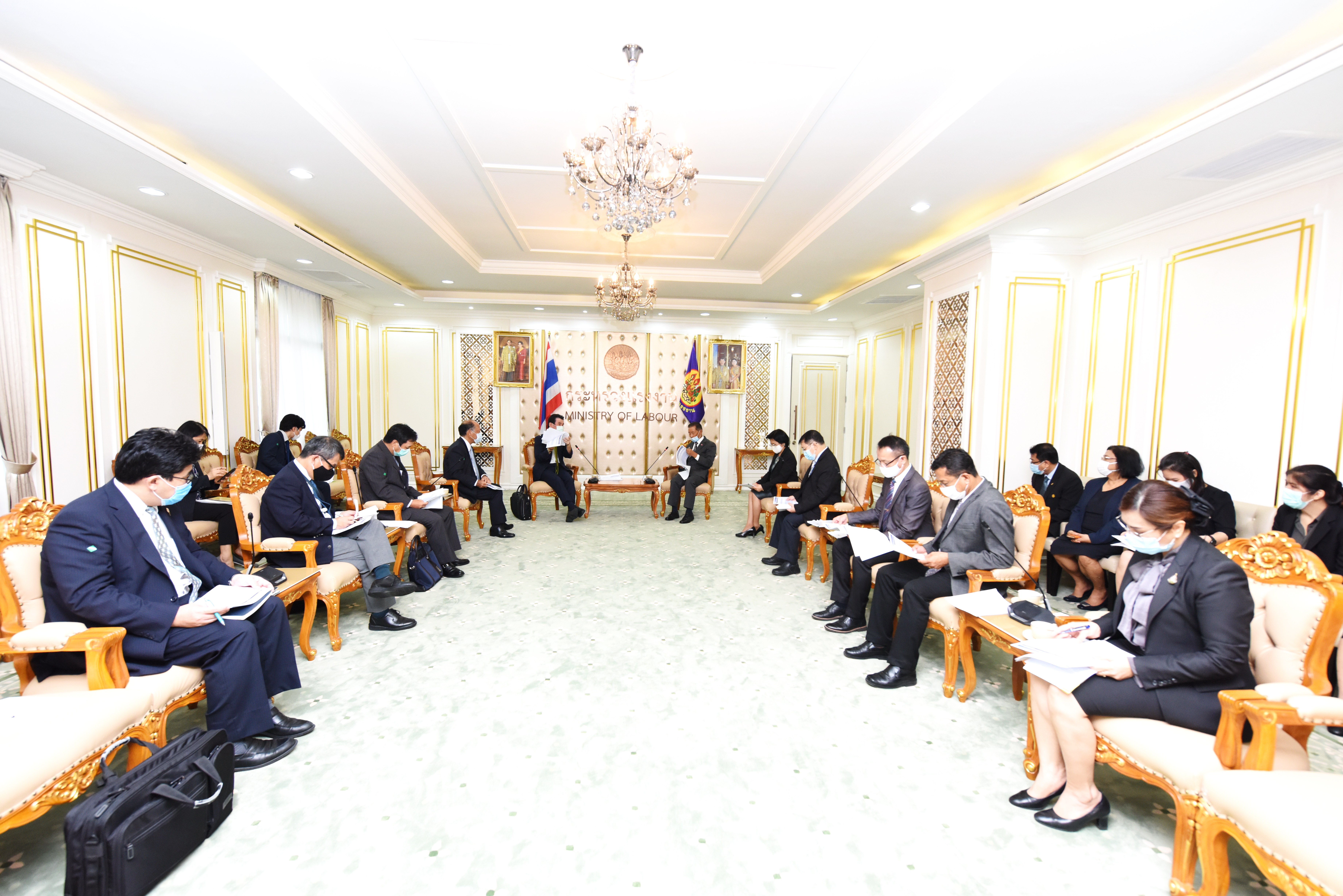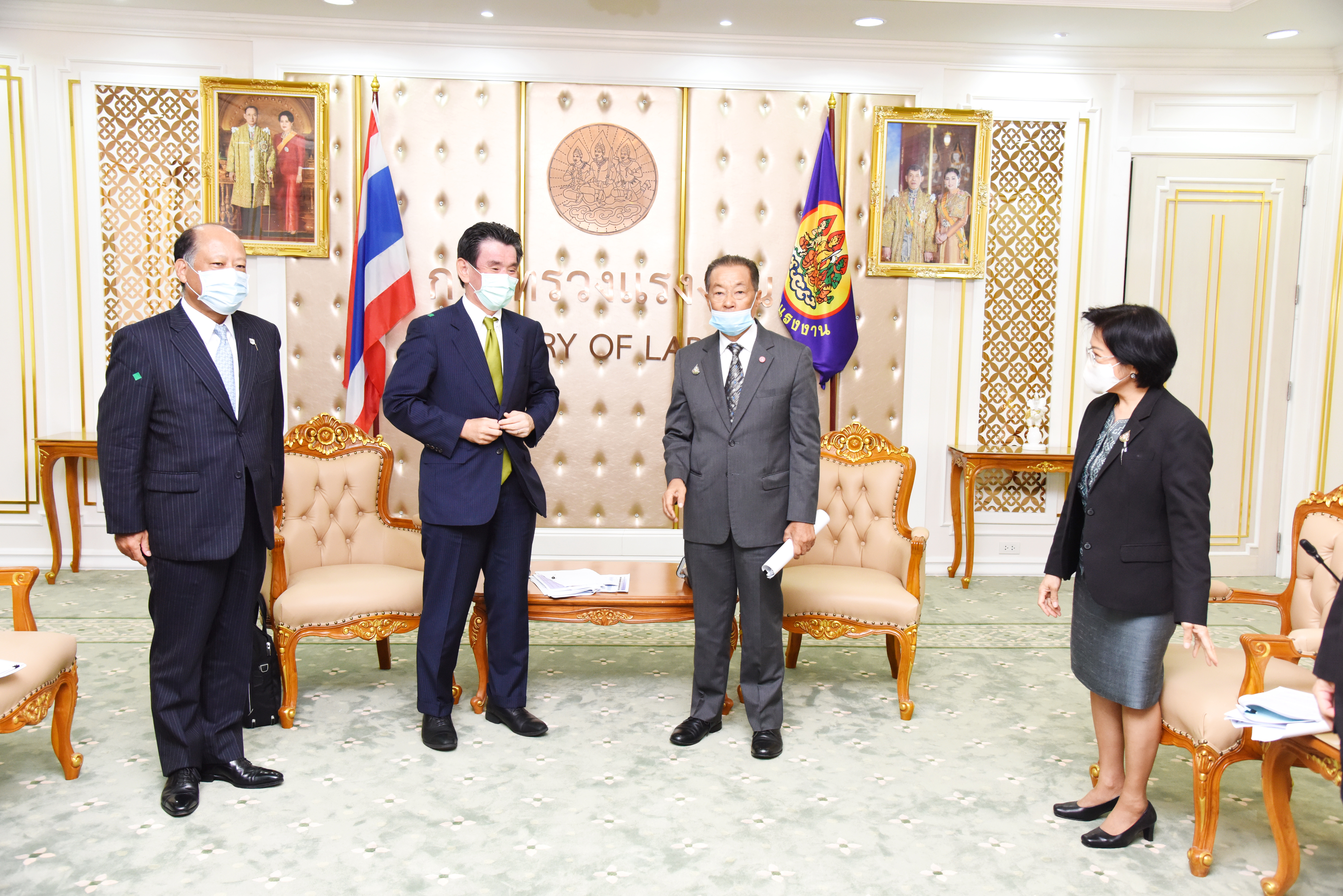 วันที่ ๑๐ มิถุนายน ๒๕๖๓ เวลา ๑๐.๐๐ น. หม่อมราชวงศ์จัตุมงคล โสณกุล รัฐมนตรีว่าการกระทรวงแรงงาน ให้การต้อนรับ Mr.Taketani Atsushi ประธานองค์การส่งเสริมการค้าต่างประเทศของญี่ปุ่น ประจำกรุงเทพฯ (JETRO Bangkok) พร้อมคณะ เพื่อรายงานผลการสำรวจเกี่ยวกับสถานการณ์โควิด – ๑๙ และนำเสนอผลการวิจัยเกี่ยวกับแรงงานชาวญี่ปุ่นที่จะเดินทางมาทำงานในประเทศไทยในอนาคต พร้อมหารือมาตรการเพื่อรับมือกับผลกระทบจากการระบาดของโควิด – ๑๙ โดยมี นางสาวอำพันธ์ ธุววิทย์ รองปลัดกระทรวงแรงงาน พร้อมด้วยคณะผู้บริหาร ร่วมให้การต้อนรับ ณ ห้องจัตุมงคล ชั้น ๖ อาคารกระทรวงแรงงาน