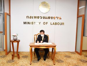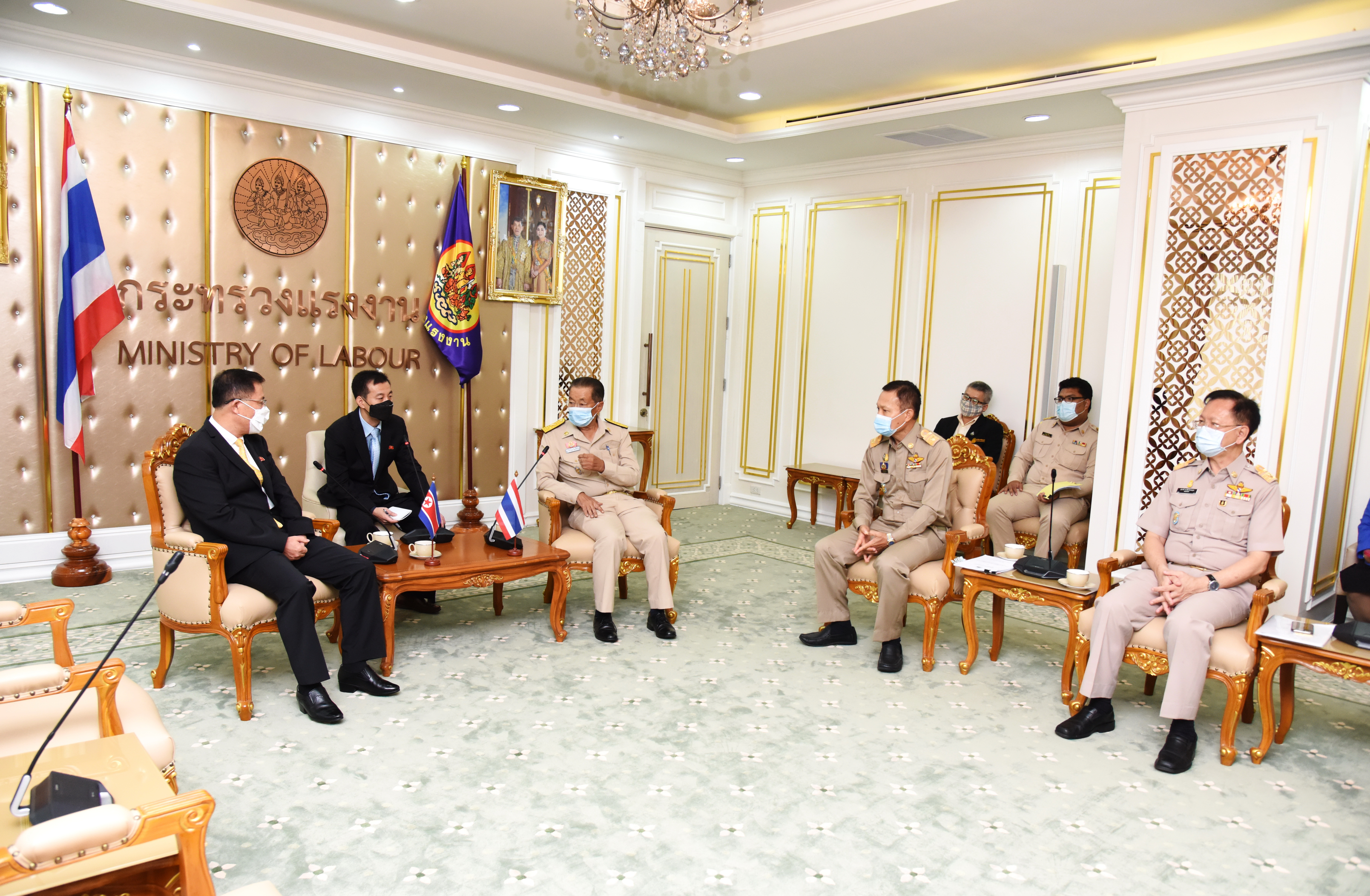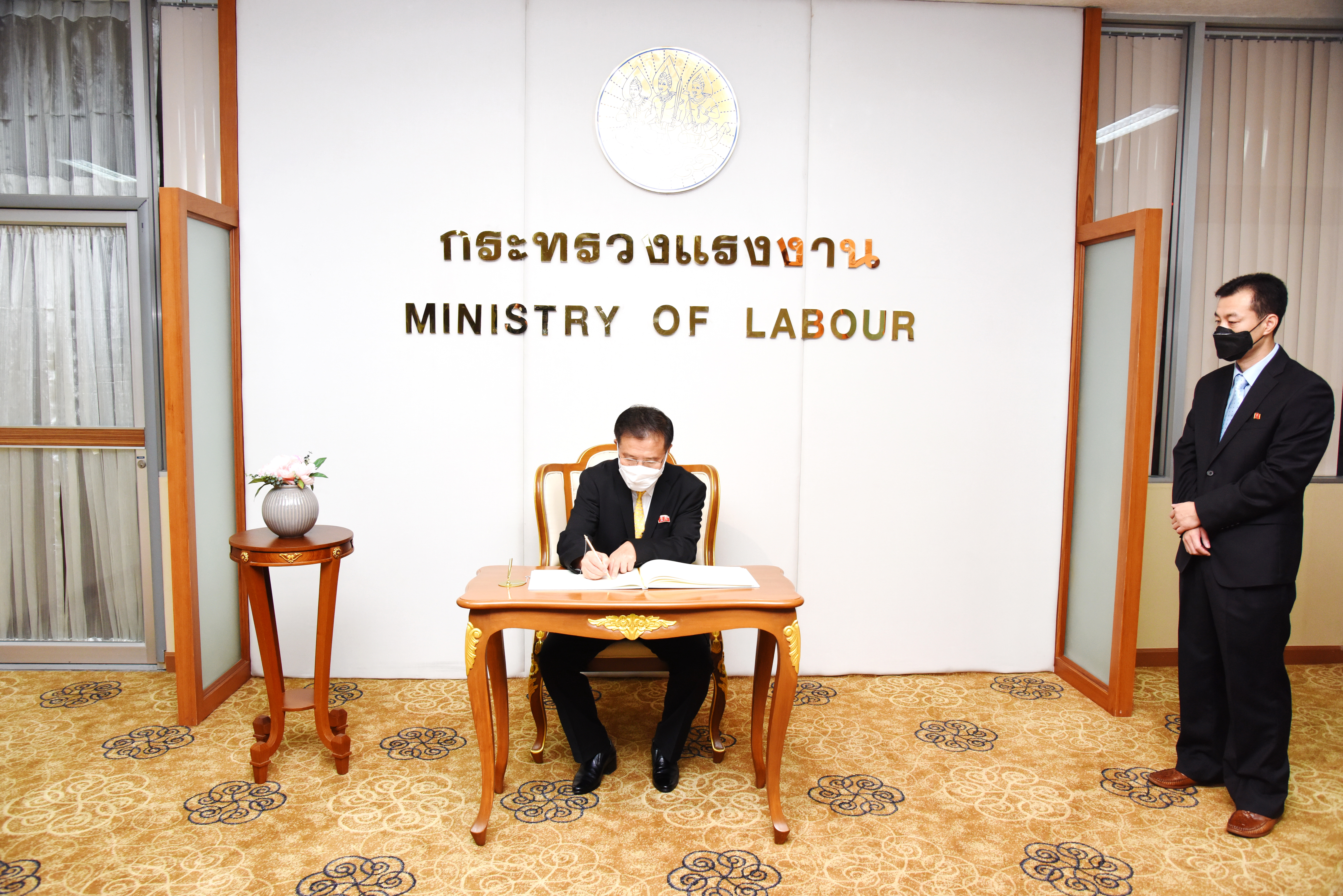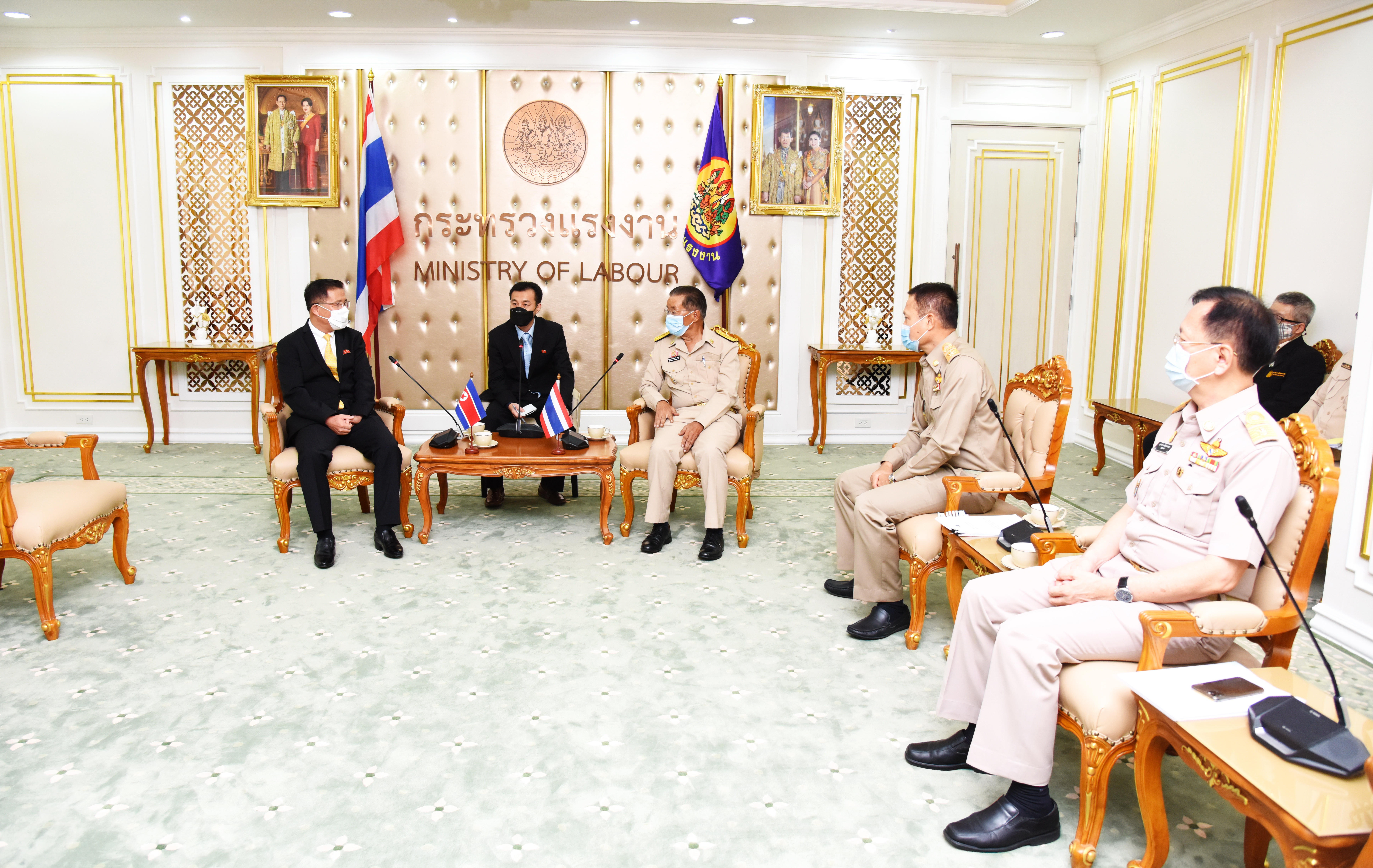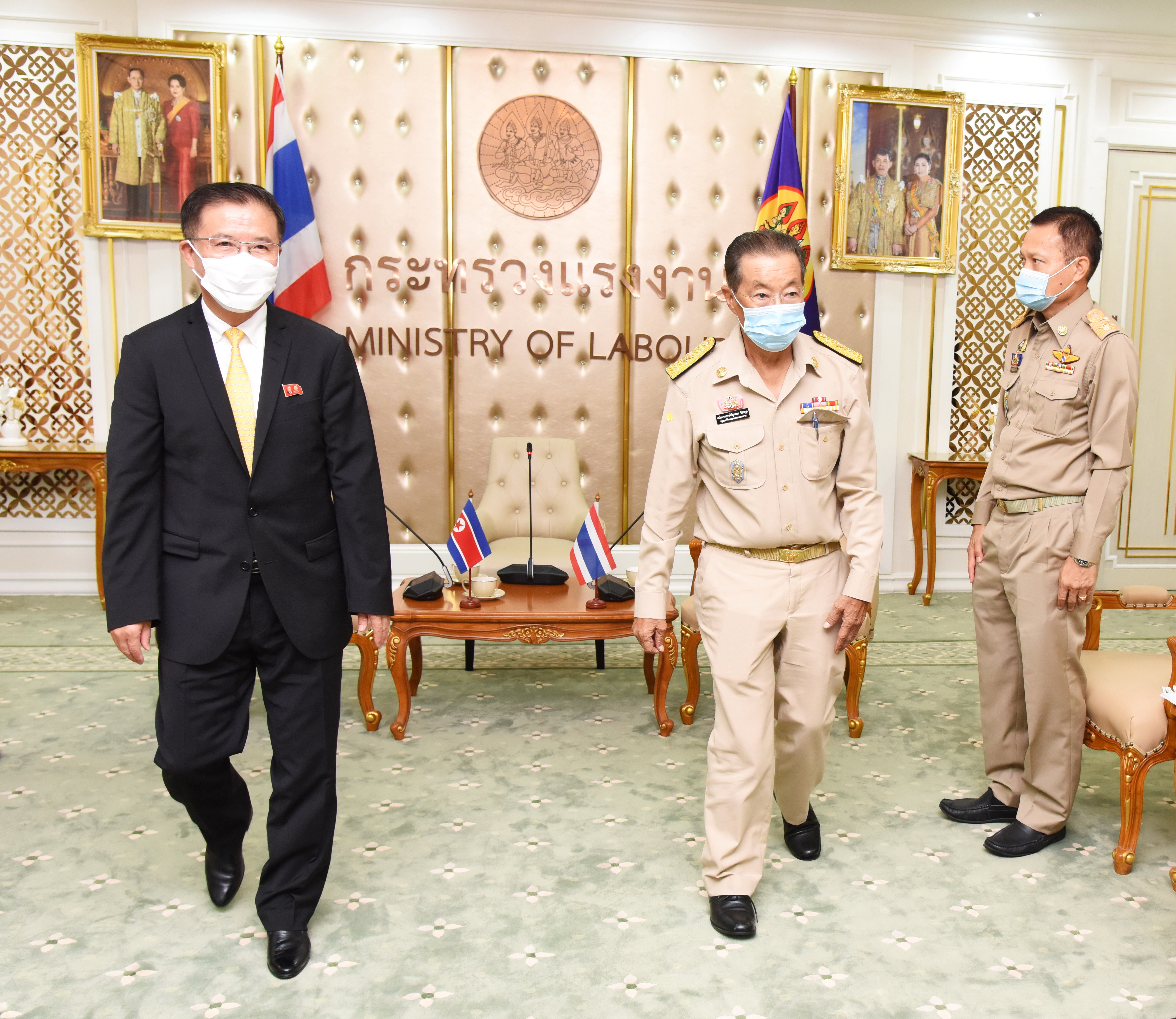 วันที่ ๑๕ มิถุนายน ๒๕๖๓ เวลา ๑๓.๓๐ น. หม่อมราชวงศ์ จัตุมงคล โสณกุล รัฐมนตรีว่าการกระทรวงแรงงาน ให้การต้อนรับนายคิม เช พง (Mr.Kim Je Bong) เอกอัครราชทูตวิสามัญผู้มีอำนาจเต็มแห่งสาธารณรัฐประชาธิปไตยประชาชนเกาหลีประจำประเทศไทย (เกาหลีเหนือ) พร้อมคณะ เข้าเยี่ยมคารวะและร่วมหารือประเด็นความร่วมมือทวิภาคด้านแรงงาน พิจารณาออกใบอนุญาตทำงานให้แก่แรงงานสัญชาติเกาหลีเหนือที่เข้ามาทำงานในประเทศไทย และร่วมแสดงความยินดีในโอกาสที่รัฐมนตรีว่าการกระทรวงแรงงานเข้ารับตำแหน่งและสานสัมพันธ์ที่ดีระหว่างสองประเทศ โดยมี นายสุทธิ สุโกศล ปลัดกระทรวงแรงงาน และคณะผู้บริหารกระทรวงแรงงาน ร่วมต้อนรับ ณ ห้องจัตุมงคล ชั้น ๖ อาคารกระทรวงแรงงาน