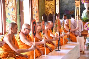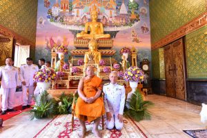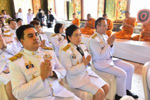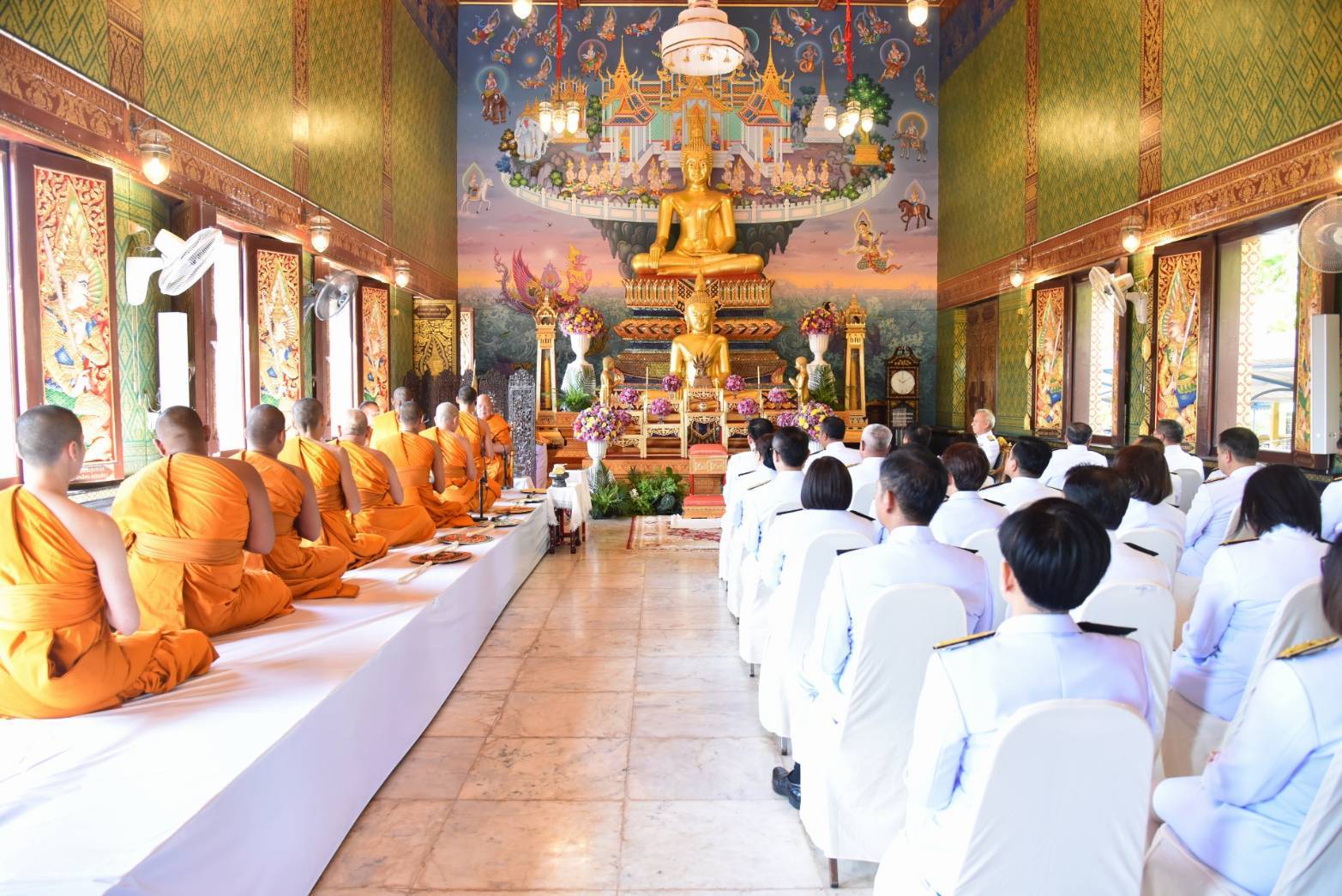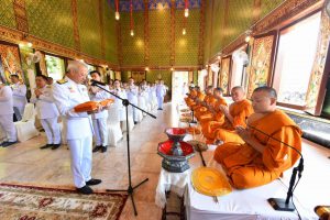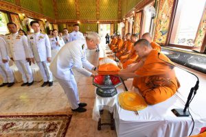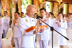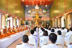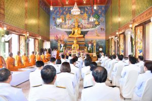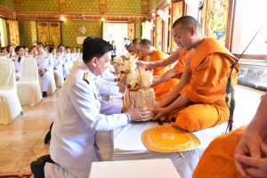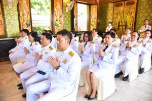 The Royal Kathin is Kathin that His Majesty the King bestowed as a royal gift to offer to various royal temples, in addition to the important temples that he had determined to visit on his own or would graciously assign a royal family member, the privy councilor or a person deemed appropriate to represent him. Therefore, it gives ministries, bureaus, departments, and groups of people or personnel opportunities to offer the Royal Kathin robes. The Ministry of Labour has continued to participate every year. It is a tradition that Buddhists have adhered to for a long time to support monks who have completed a quarter of Buddhist Lent, to receive merit, and to be funding for the restoration of the monastery. It combines the power of physical, verbal, and mental unity to create merit and happiness in living together in society and promote stability and prosperity in Buddhism.