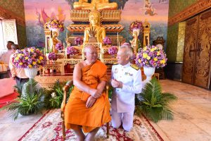 On this occasion, the Assistant to the Labour Minister, Mr. Siraphop Duangsodsri, the Labour Minister’s Advisor, Mr. Thanat Thaweekueakulkit, the Secretariat to the Labour Minister, Mr. Aree Krainara, from the Prime Minister’s Secretariat’s Office, performing duties for the Ministry of Labour, Mr. Phuchong Worasri, the Permanent Secretary of Labour, Mr. Phairoj Chotikasatian, the Deputy Permanent Secretary of Labour, Mr. Wannarat Srisuksai, the Deputy Permanent Secretary of Labour, Mr. Decha Pruekphathanarak, executives from the Ministry of Labour and subordinate agencies in Chonburi, heads of government agencies of the Ministry of Labour in nearby provinces and the people of Chonburi Province, totaling over 10,000 people attended the event. Some charitable people donated to maintain and restore the monastery, making merit by offering the Royal Kathin for 2023, totaling 3,195,295 Baht. At the same time, the Labour Minister presented scholarships to the directors of two sponsored schools. In addition, there was an almshouse for the people who joined the Kathin merit-making ceremony to eat together.