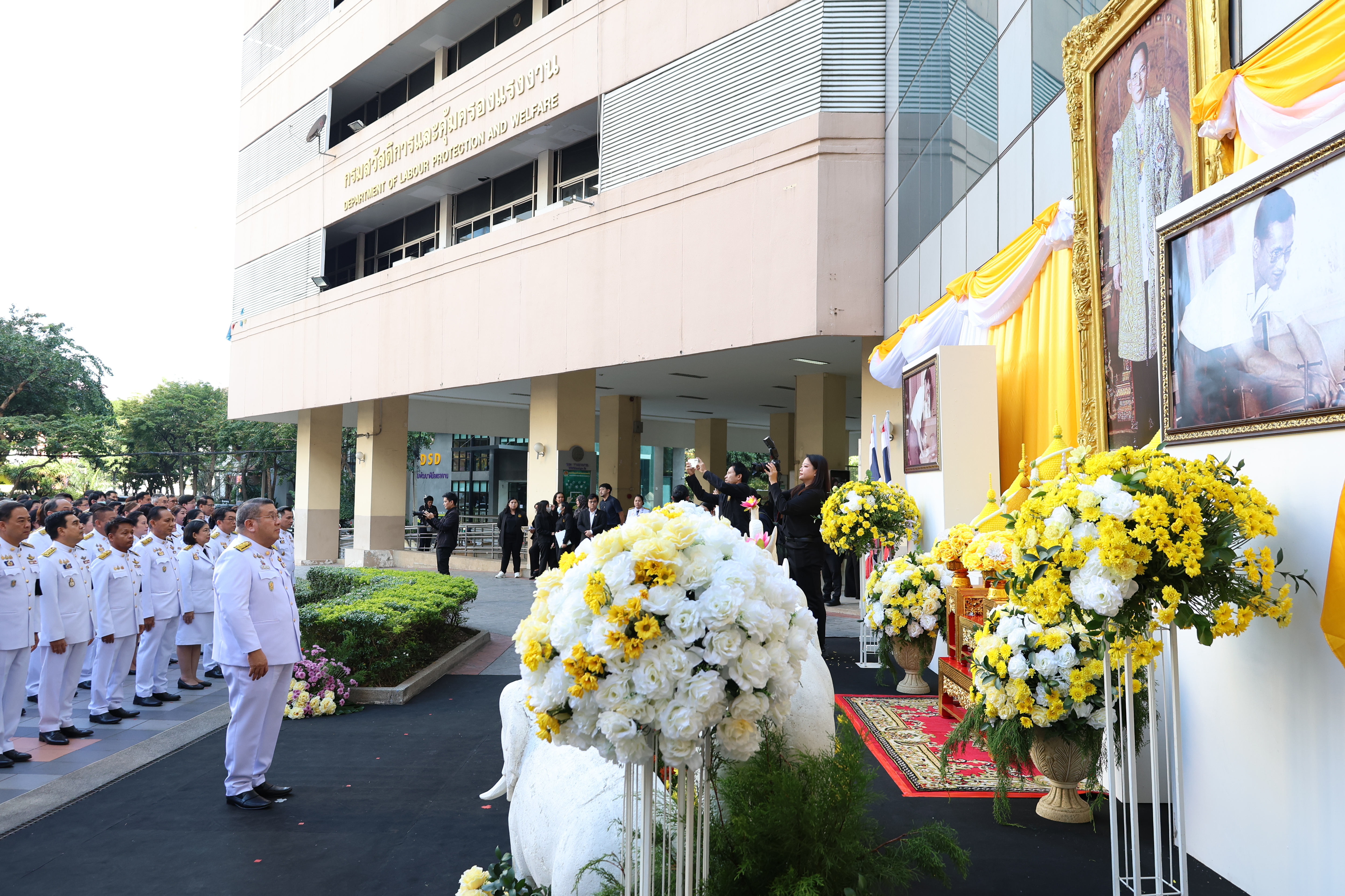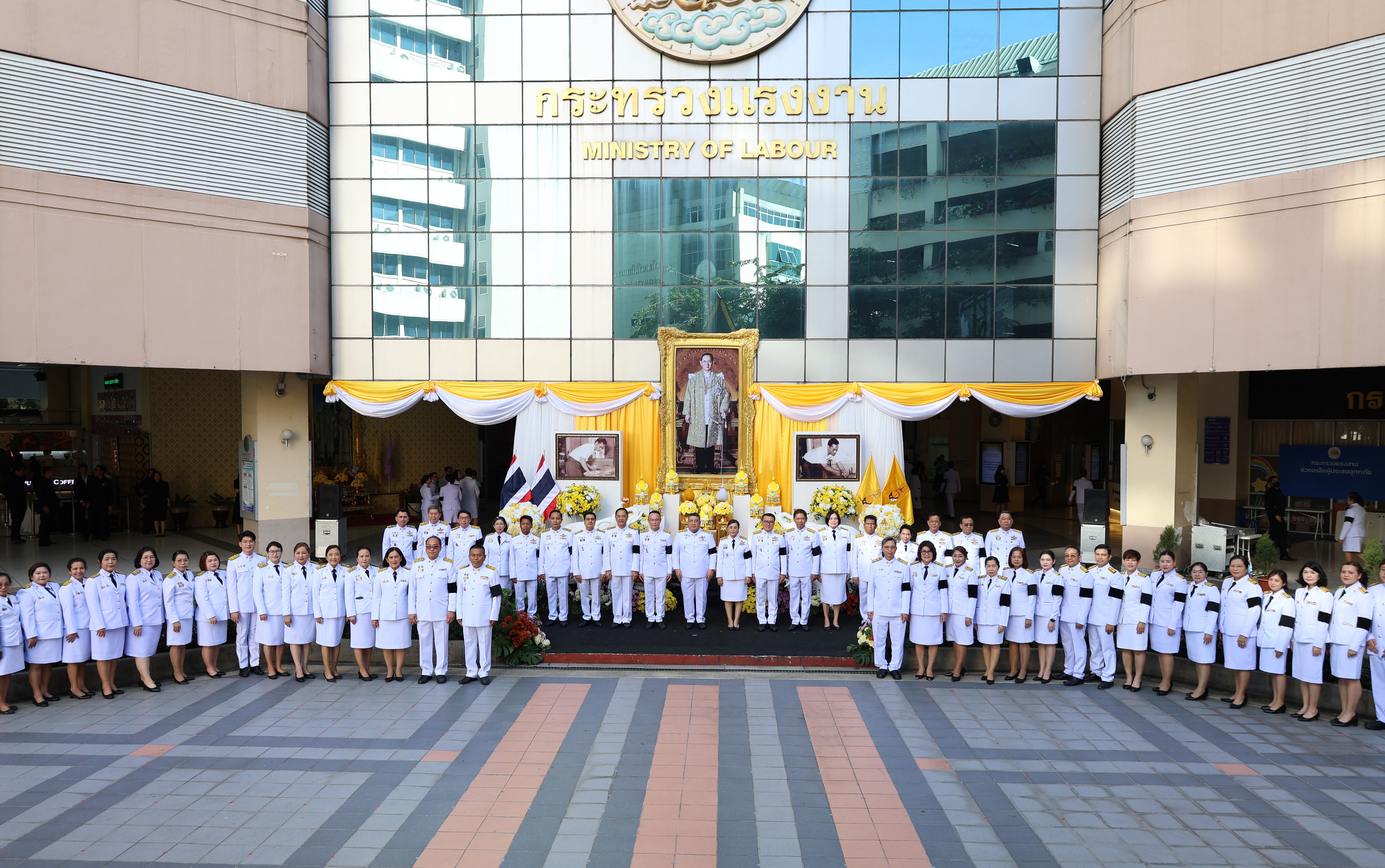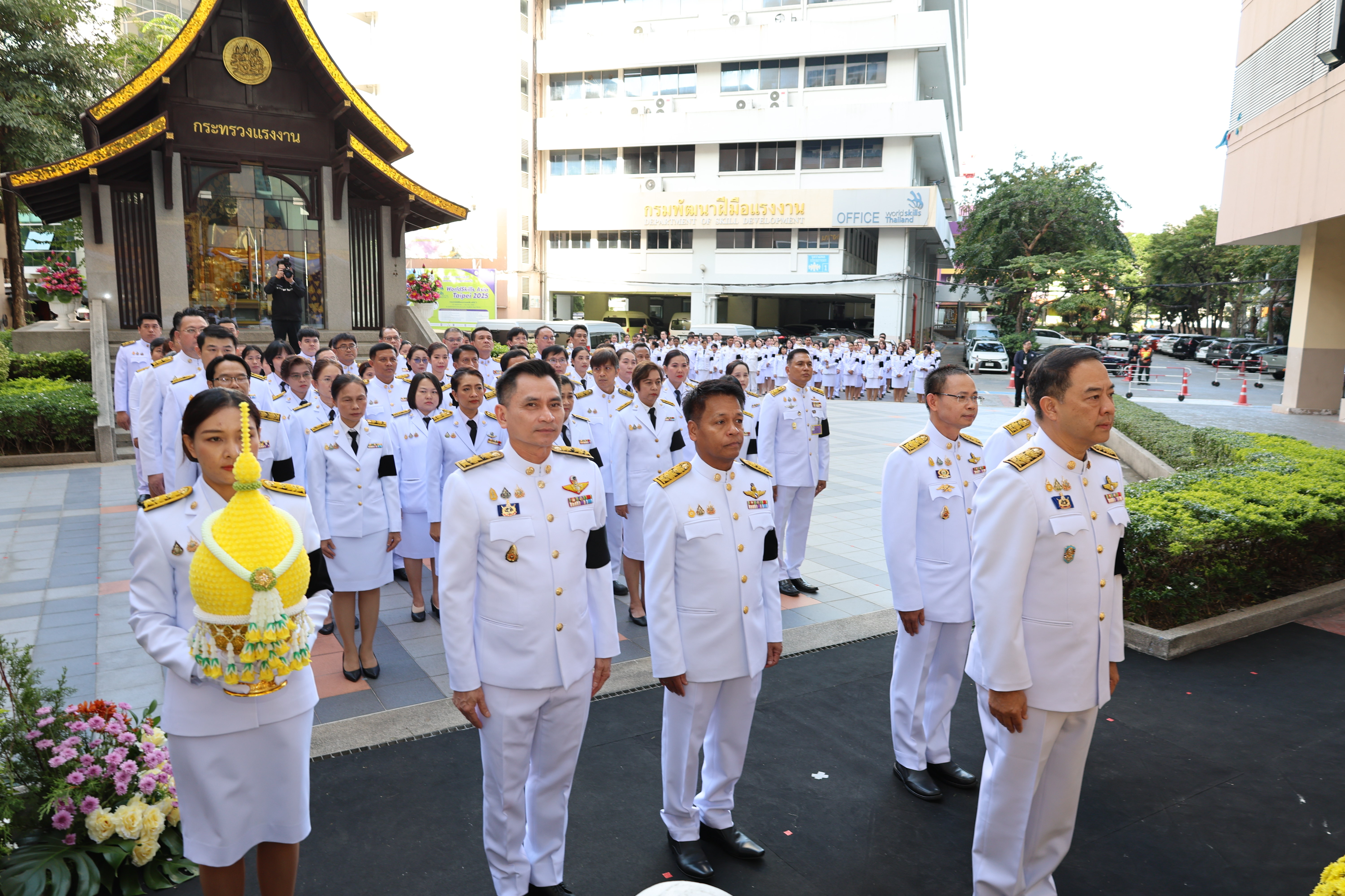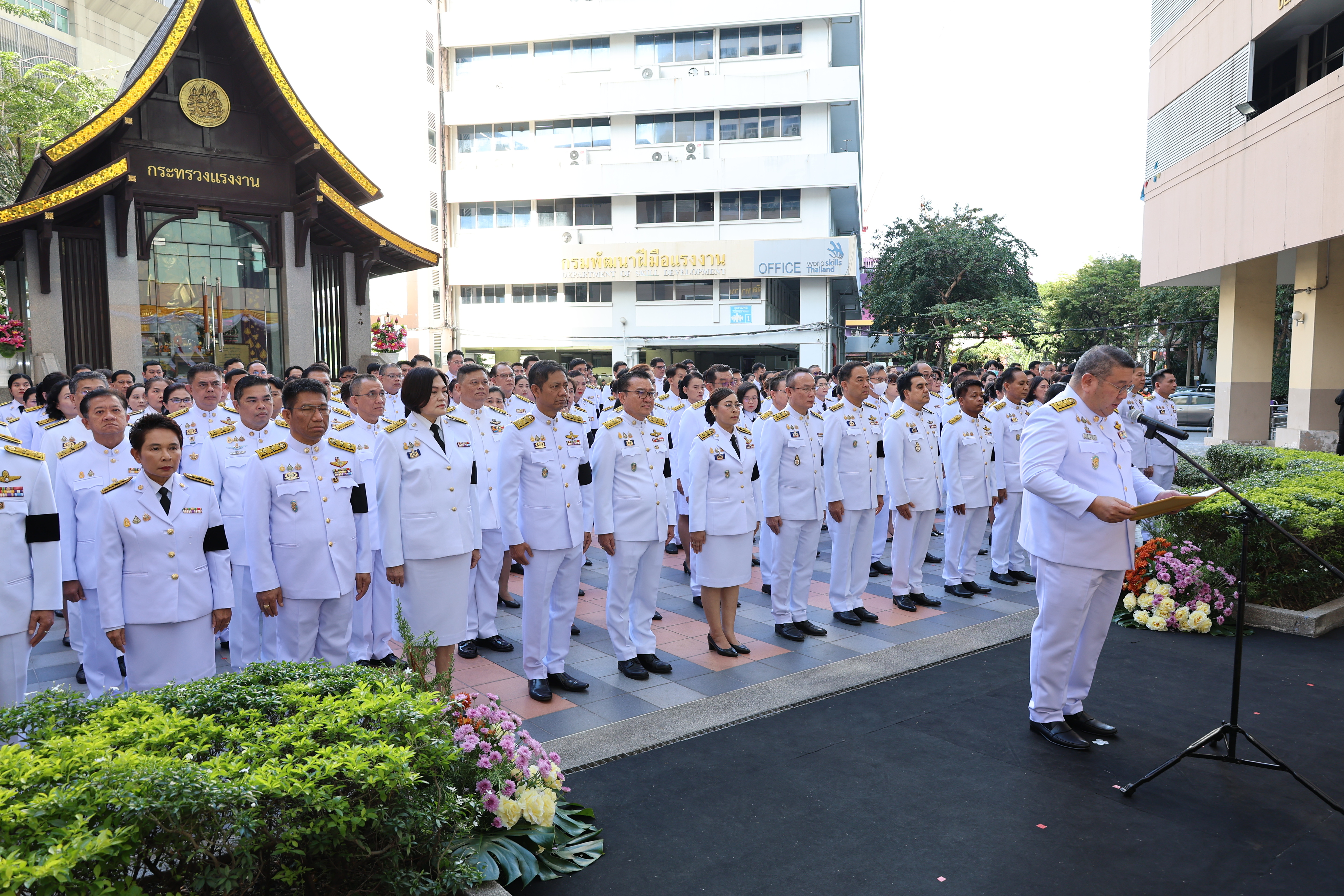 วันที่ 4 ธันวาคม 2568 เวลา 08.30 น. พ.ต.ท.วรรณพงษ์ คชรักษ์ ปลัดกระทรวงแรงงาน เป็นประธานในพิธีถวายราชสักการะและวางพานพุ่ม เนื่องในวันคล้ายวันพระบรมราชสมภพพระบาทสมเด็จพระบรมชนกาธิเบศร มหาภูมิพลอดุลยเดชมหาราช บรมนาถบพิตร วันชาติ และวันพ่อแห่งชาติ 5 ธันวาคม 2568 โดยมี นางสาวบุปผา เรืองสุด รองปลัดกระทรวงแรงงาน นายสันติ นันตสุวรรณ รองปลัดกระทรวงแรงงาน นายพิเชษฐ์ ทองพันธ์ รองปลัดกระทรวงแรงงาน ผู้บริหารระดับสูงกระทรวงแรงงาน ข้าราชการ และเจ้าหน้าที่หน่วยงานในสังกัดกระทรวงแรงงาน ร่วมถวายราชสักการะ ณ บริเวณลานพระพุทธสุทธิธรรมบพิตร กระทรวงแรงงาน