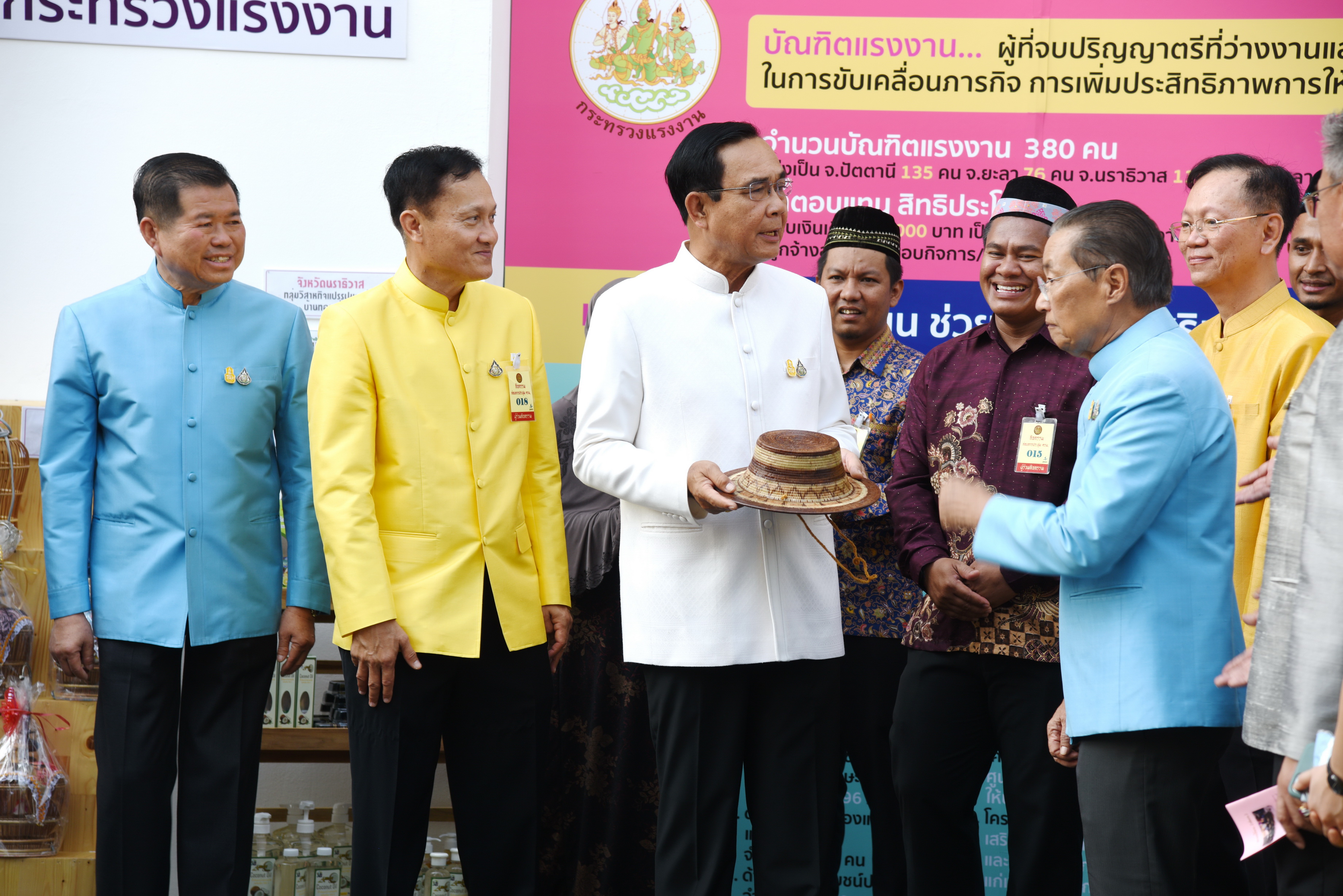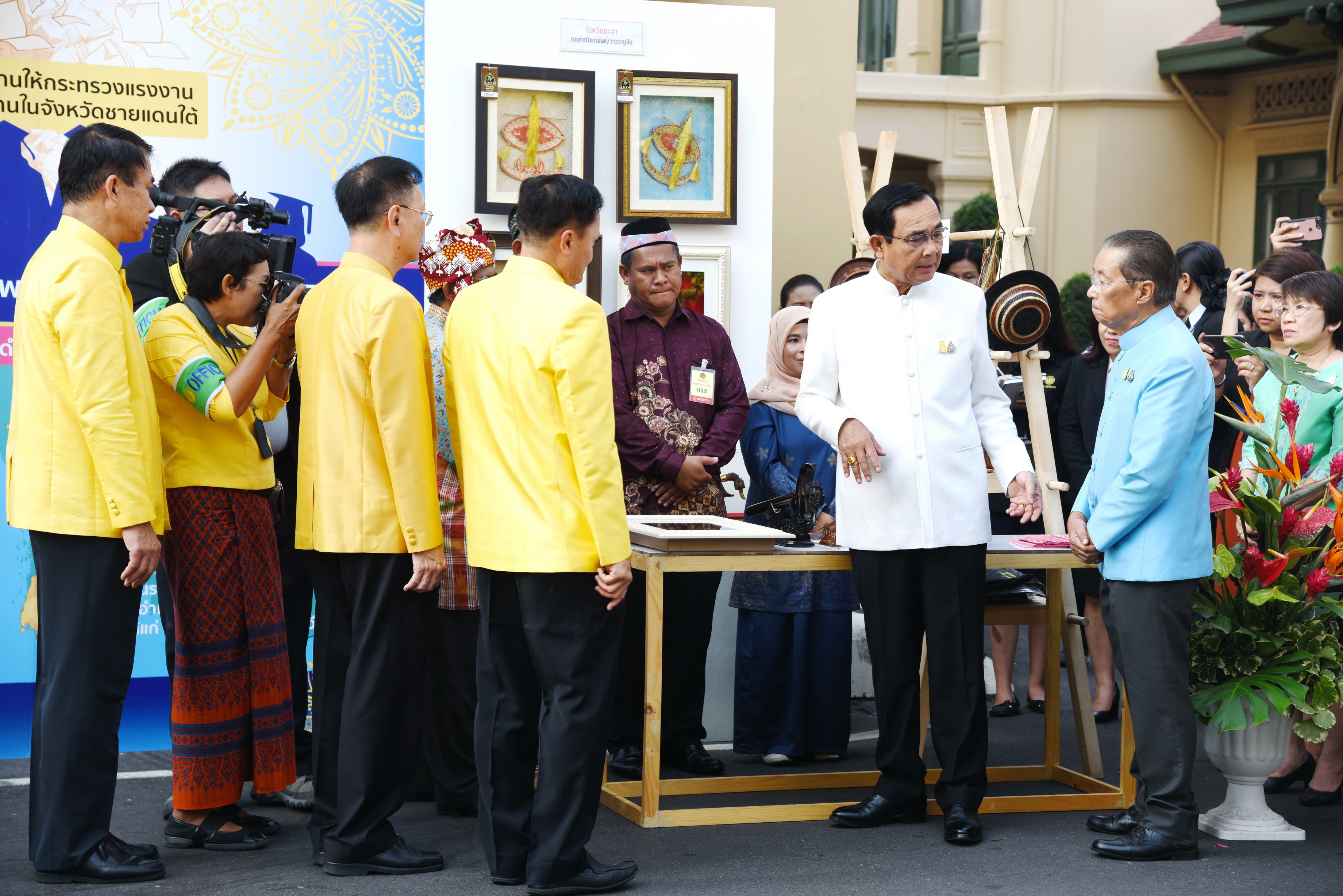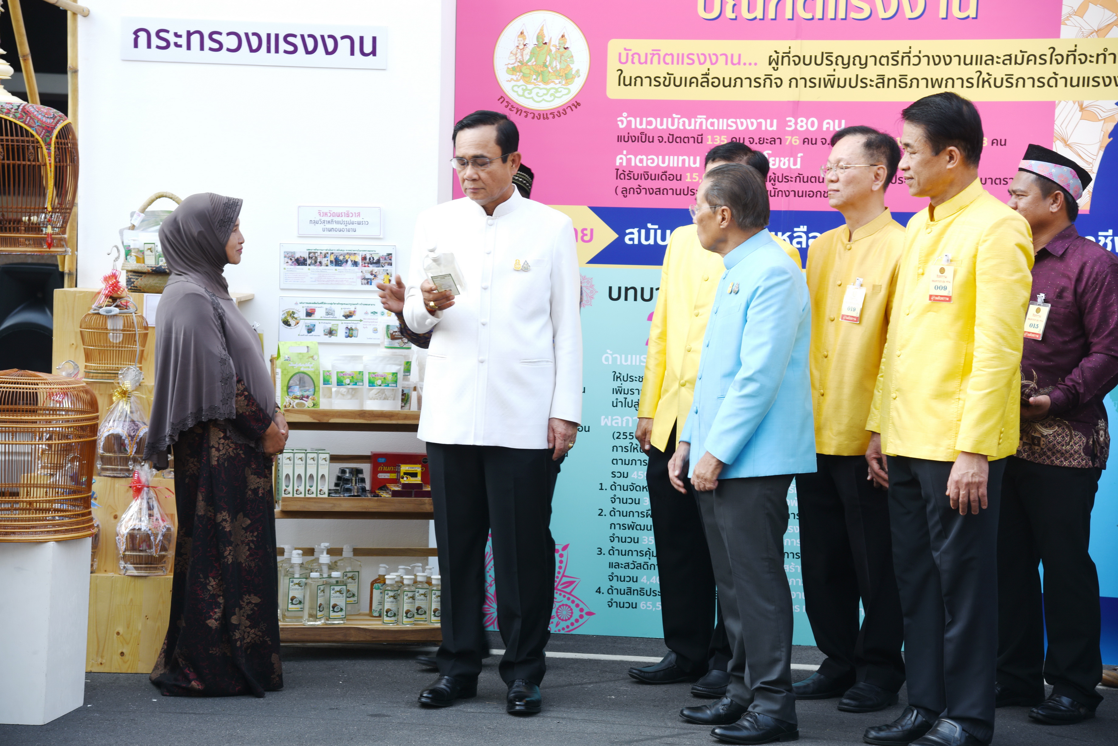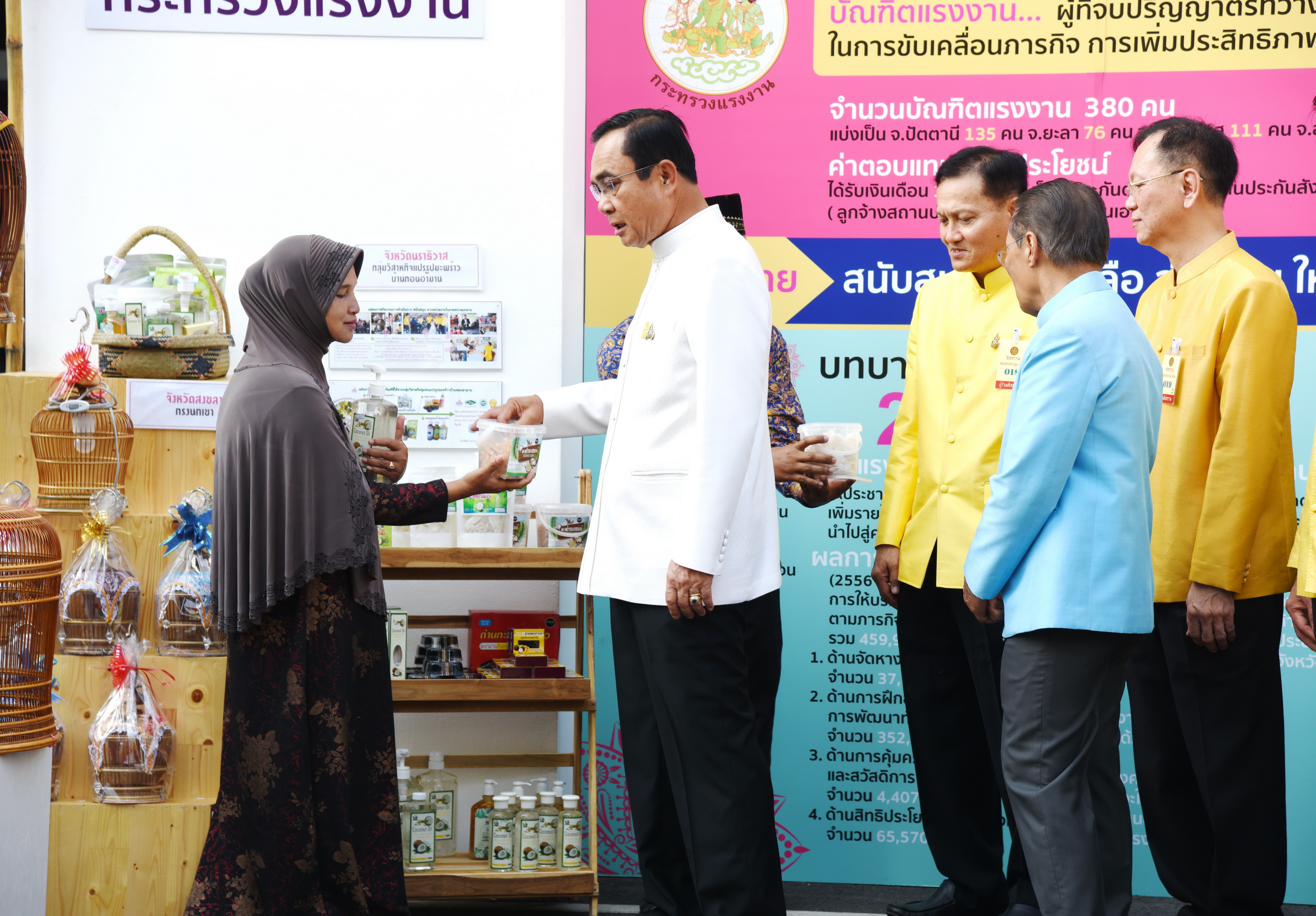 วันที่ 7 มกราคม 2563 เวลา 08.30 น. พลเอกประยุทธ์ จันทร์โอชา นายกรัฐมนตรีและรัฐมนตรีว่าการกระทรวงกลาโหม เยี่ยมชมกิจกรรมการประชาสัมพันธ์การดำเนินโครงการเพิ่มประสิทธิภาพการให้บริการด้านแรงงานในจังหวัดชายแดนภาคใต้ โดยมี หม่อมราชวงศ์จัตุมงคล โสณกุล รัฐมนตรีว่าการกระทรวงแรงงาน นายสุทธิ สุโกศล ปลัดกระทรวงแรงงาน ผู้บริหารระดับสูง หัวหน้าส่วนราชการกระทรวงแรงงานในพื้นที่จังหวัดชายแดนภาคใต้ ผู้แทนบัณฑิตแรงงาน และผู้แทนกลุ่มอาชีพอิสระในพื้นที่จังหวัดชายแดนภาคใต้ ประกอบด้วย นางสาวอะมีเนาะ มะแซ ประธานกลุ่มย่านลิเภา ต.ท่าน้ำ อ.ปะนาเระ จ.ปัตตานี นายตีพะลี อะตะบู ตัวแทนกลุ่มทำกริซ (รามันห์) อ.รามัน จ.ยะลา นางเจะปูรอ บินหะมะ ตัวแทนกลุ่มวิสาหกิจชุมชนแปรรูปมะพร้าวบ้านทอนอามาน ต.โคกเคียน อ.เมือง จ.นราธิวาส และนายอานัส วันนิ ตัวแทนกลุ่มอาชีพกรงนก ต.ป่าชิง อ.จะนะ จ.สงขลา เข้าร่วมกิจกรรมและให้การต้อนรับในครั้งนี้ด้วย ณ บริเวณหน้าตึกบัญชาการ 1 ทำเนียบรัฐบาล