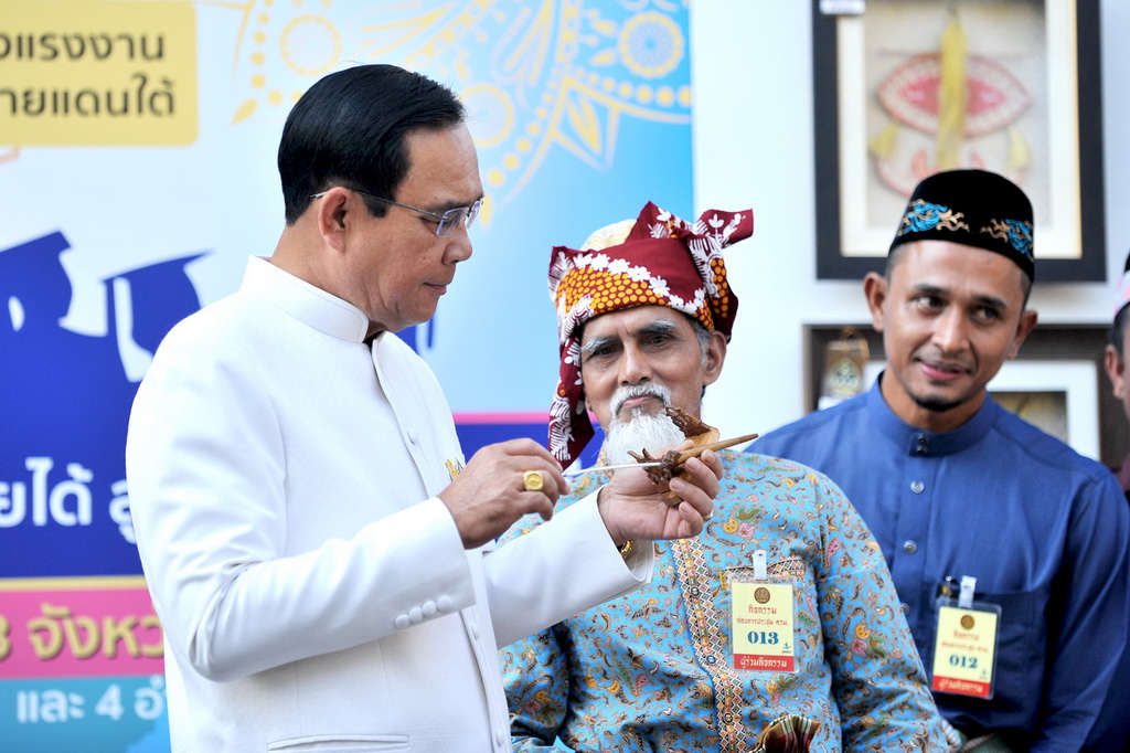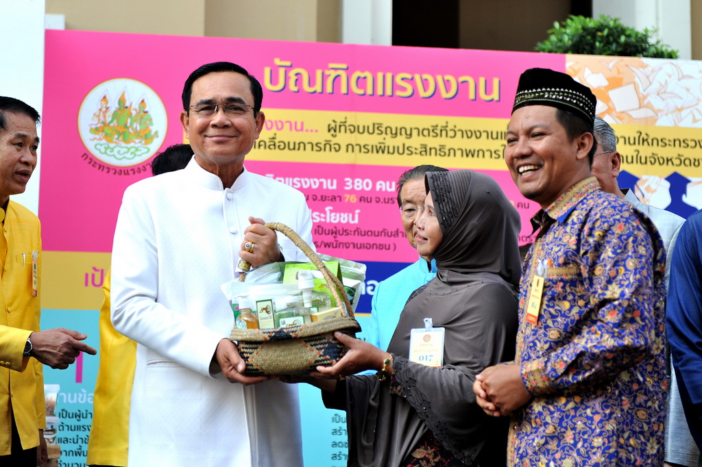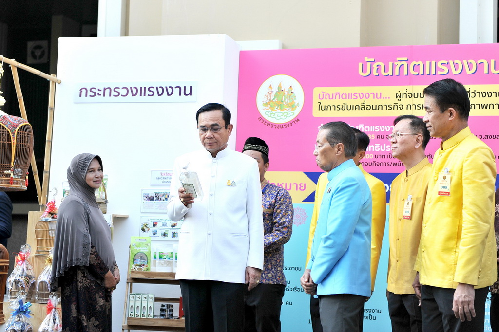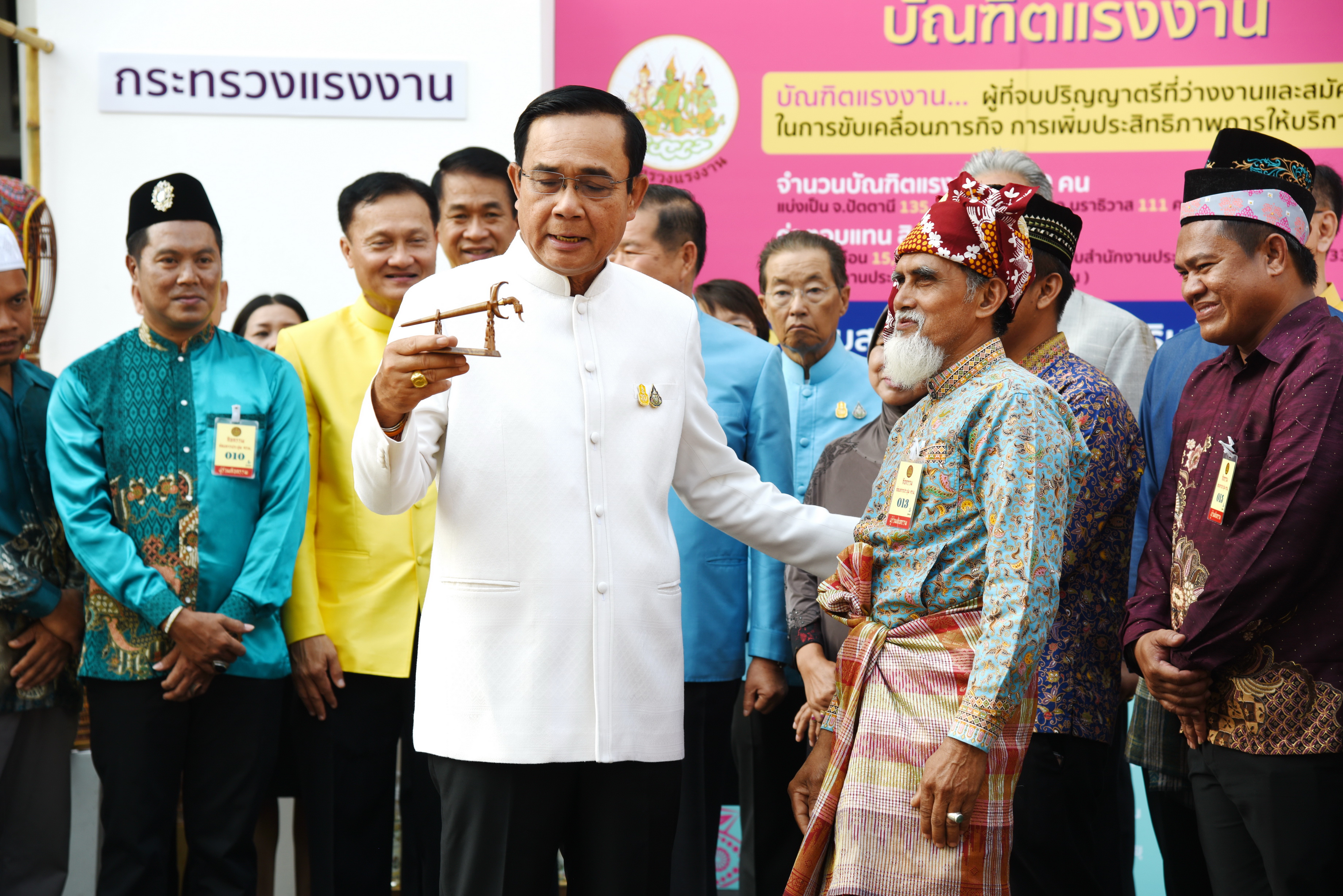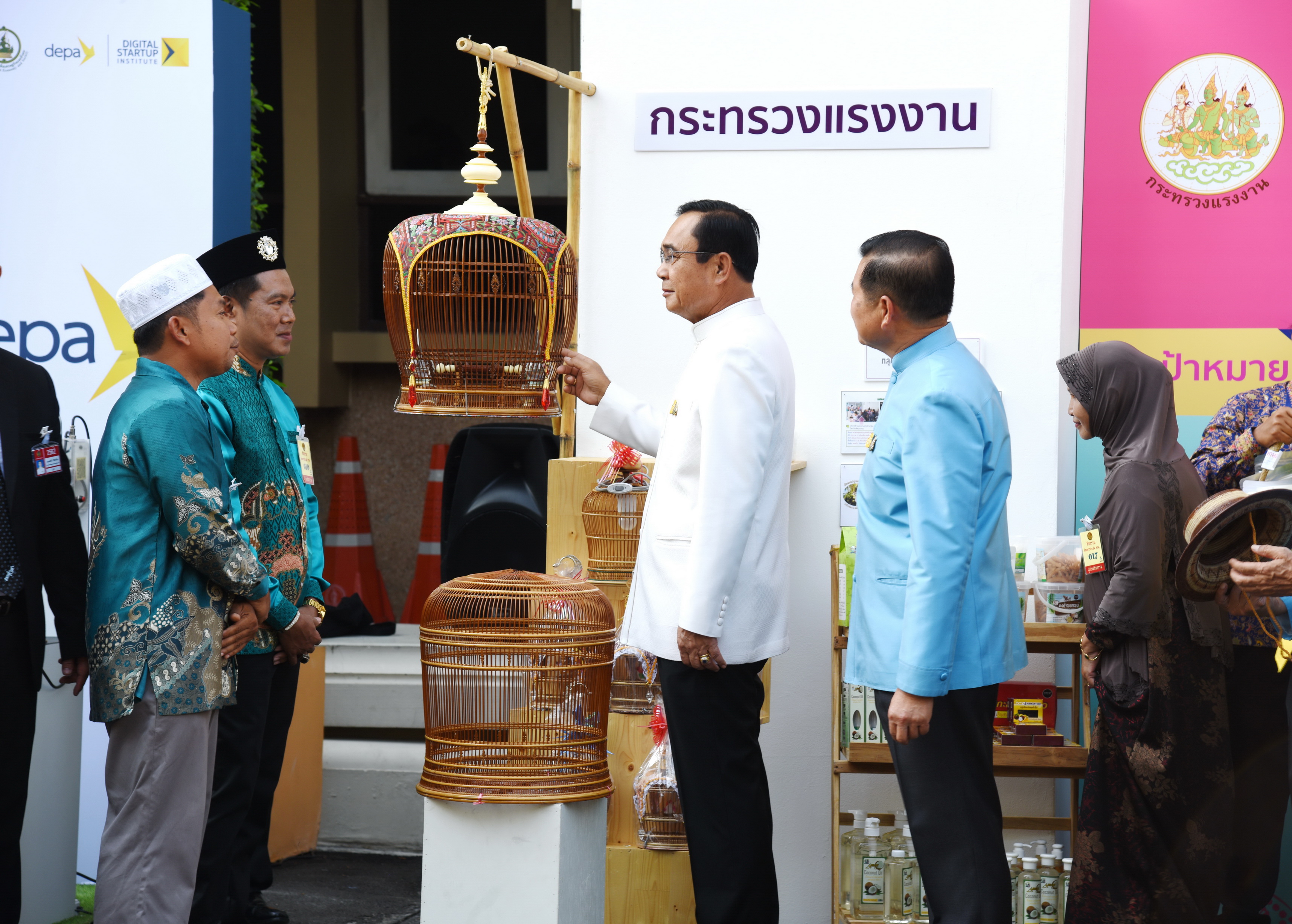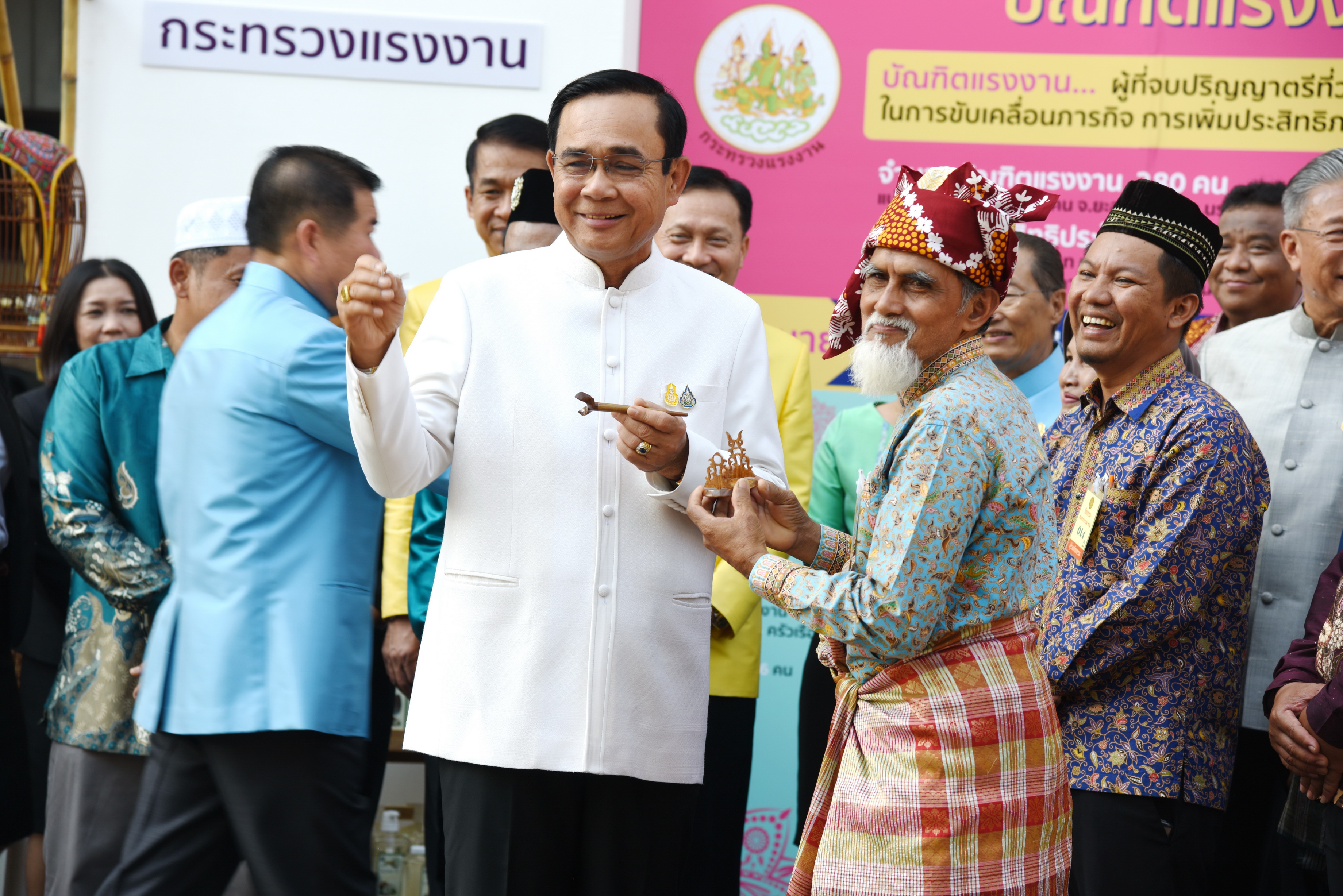 วันที่ 7 มกราคม 2563 เวลา 08.30 น. พลเอกประยุทธ์ จันทร์โอชา นายกรัฐมนตรีและรัฐมนตรีว่าการกระทรวงกลาโหม เยี่ยมชมกิจกรรมการประชาสัมพันธ์การดำเนินโครงการเพิ่มประสิทธิภาพการให้บริการด้านแรงงานในจังหวัดชายแดนภาคใต้ โดยมี หม่อมราชวงศ์จัตุมงคล โสณกุล รัฐมนตรีว่าการกระทรวงแรงงาน นายสุทธิ สุโกศล ปลัดกระทรวงแรงงาน ผู้บริหารระดับสูง หัวหน้าส่วนราชการกระทรวงแรงงานในพื้นที่จังหวัดชายแดนภาคใต้ ผู้แทนบัณฑิตแรงงาน และผู้แทนกลุ่มอาชีพอิสระในพื้นที่จังหวัดชายแดนภาคใต้ ประกอบด้วย นางสาวอะมีเนาะ มะแซ ประธานกลุ่มย่านลิเภา ต.ท่าน้ำ อ.ปะนาเระ จ.ปัตตานี นายตีพะลี อะตะบู ตัวแทนกลุ่มทำกริซ (รามันห์) อ.รามัน จ.ยะลา นางเจะปูรอ บินหะมะ ตัวแทนกลุ่มวิสาหกิจชุมชนแปรรูปมะพร้าวบ้านทอนอามาน ต.โคกเคียน อ.เมือง จ.นราธิวาส และนายอานัส วันนิ ตัวแทนกลุ่มอาชีพกรงนก ต.ป่าชิง อ.จะนะ จ.สงขลา เข้าร่วมกิจกรรมและให้การต้อนรับในครั้งนี้ด้วย ณ บริเวณหน้าตึกบัญชาการ 1 ทำเนียบรัฐบาล