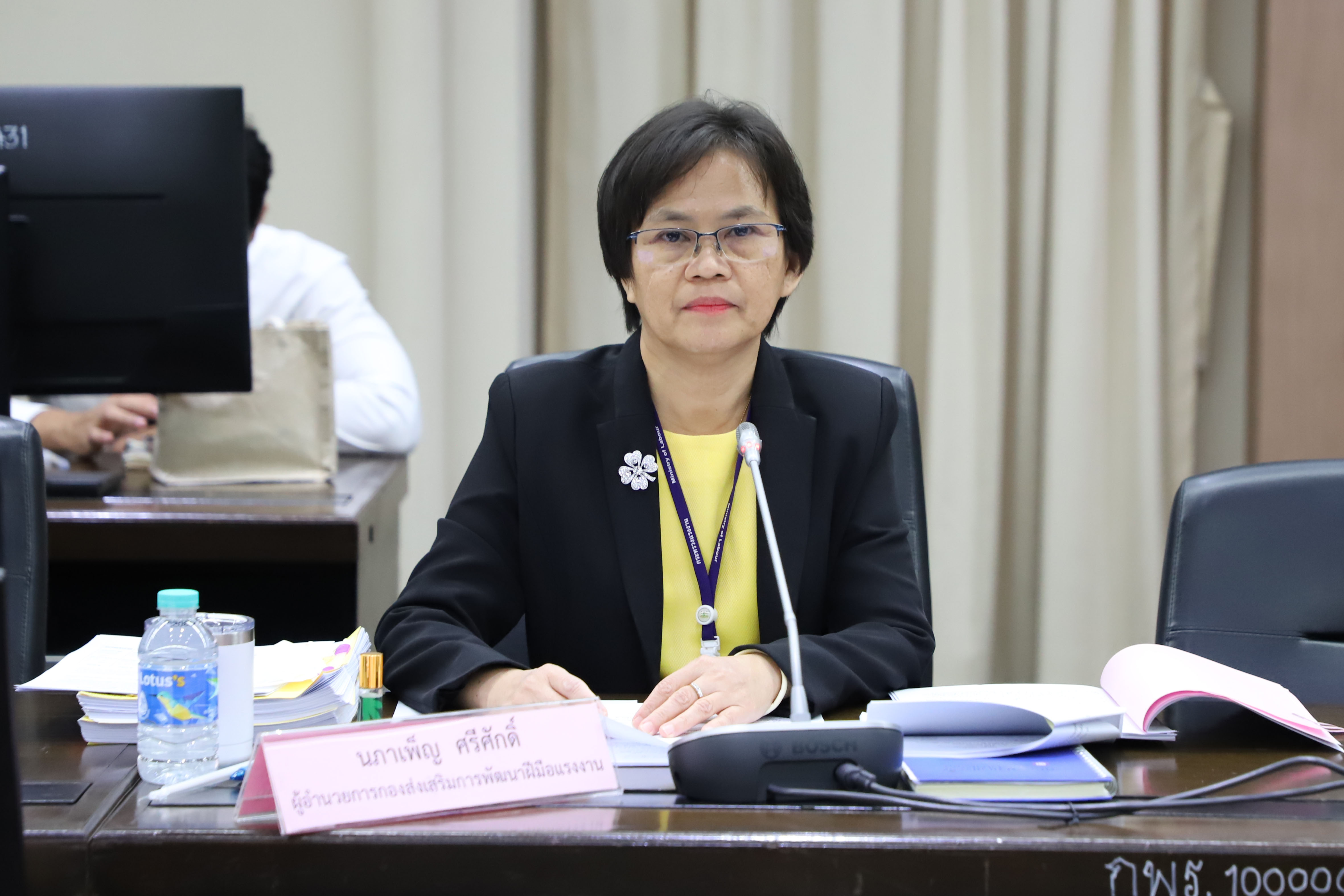 The meeting considered the application for certification of labour skill standards under Section 26 of the Skill Development Promotion Act, B.E. 2545, and requested approval for extending the time for imposing measures to assist entrepreneurs, specifying an extension of the loan repayment period for the Skill Development Fund. It requested approval for an extension of the zero percent interest rate per year scheme following the announcement of the Skill Development Promotion Committee on determining loan amounts and reimbursements of the Skill Development Fund. It requested approval for an adjustment of the spending plan for the Budget Skill Development Fund for 2023 by using the remaining money from the Skill Development Fund 2023 as operation expenses for conducting a seminar on reviewing lending criteria and granting subsidies from the Skill Development Fund. It also requested the approval of the projection of income and expenses of the Skill Development Fund for 2024 – 2027 and the Operational Plan for 2024.