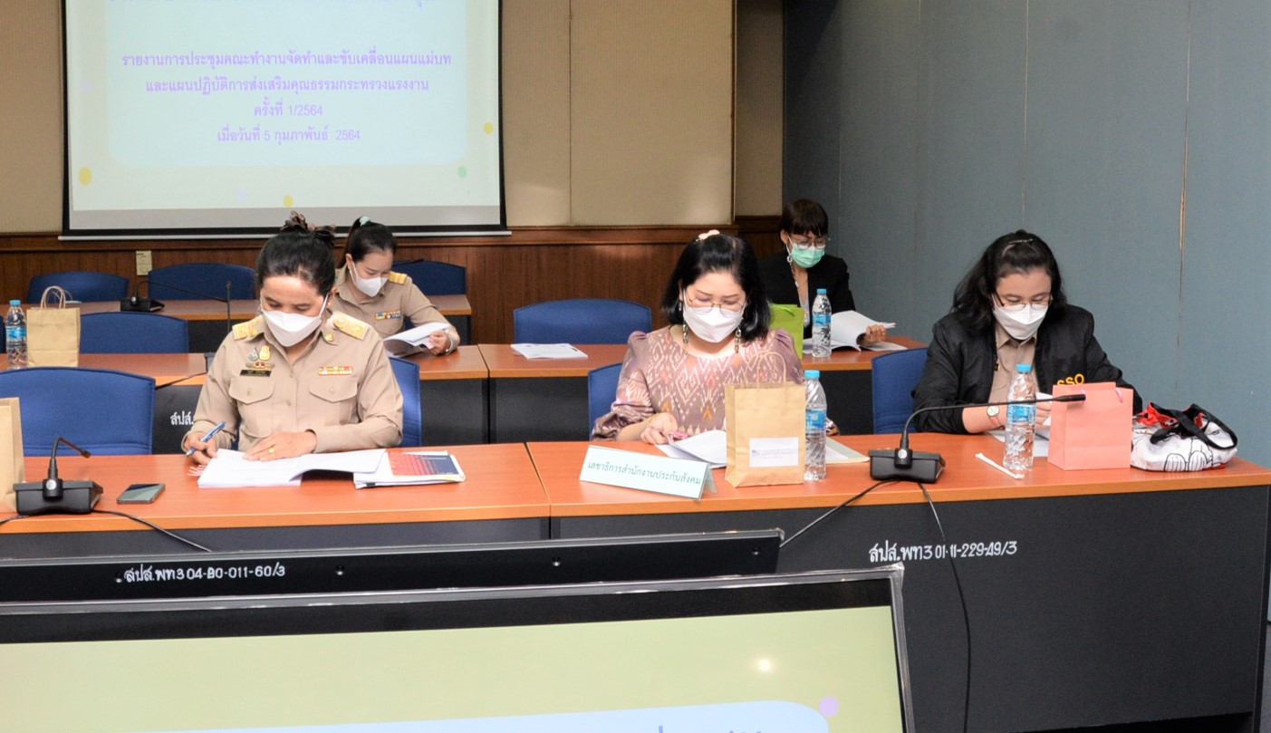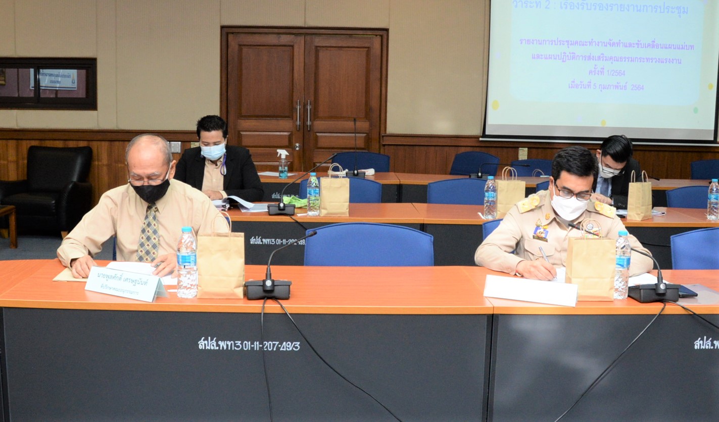 วันที่ ๒๒ พฤศจิกายน ๒๕๖๔ เวลา ๑๓.๓๐ น. นางสาวบุปผา เรืองสุด รองปลัดกระทรวงแรงงาน เป็นประธานการประชุมคณะทำงานจัดทำและขับเคลื่อนแผนแม่บทและแผนปฏิบัติการส่งเสริมคุณธรรมกระทรวงแรงงาน ครั้งที่ ๒/๒๕๖๔ เพื่อพิจารณา (ร่าง) แผนปฏิบัติการส่งเสริมคุณธรรมกระทรวงแรงงาน ประจำปีงบประมาณ พ.ศ. ๒๕๖๕ ณ ห้องประชุมชั้น ๗ สำนักงานประกันสังคมกรุงเทพมหานครพื้นที่ ๓