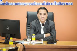 วันที่ 14 พฤศจิกายน 2566 เวลา 11.00 น. นายสมาสภ์ ปัทมะสุคนธ์ ผู้ตรวจราชการกระทรวงแรงงาน เป็นประธานการประชุมคณะทำงานเฉพาะกิจเพื่อติดตามสถานการณ์ความไม่สงบในประเทศอิสราเอล โดยมี นางสาวกรจิรัฏฐ์ พงจันทร์ศธร ผู้ช่วยปลัดกระทรวงแรงงาน พร้อมด้วยเจ้าหน้าที่หน่วยงานที่เกี่ยวข้อง เข้าร่วมประชุมด้วย ณ ศูนย์ช่วยเหลือแรงงานและติดตามสถานการณ์สู้รบในอิสราเอล ห้องประชุมกองกฎหมาย ชั้น 11 อาคารกระทรวงแรงงาน พร้อมประชุมผ่านระบบอิเล็กทรอนิกส์กับ นายกิตติ์ธนา ศรีสุริยะ อัครราชทูตที่ปรึกษา (ฝ่ายแรงงาน) ประจำสถานเอกอัครราชทูต ณ กรุงเทลอาวีฟ