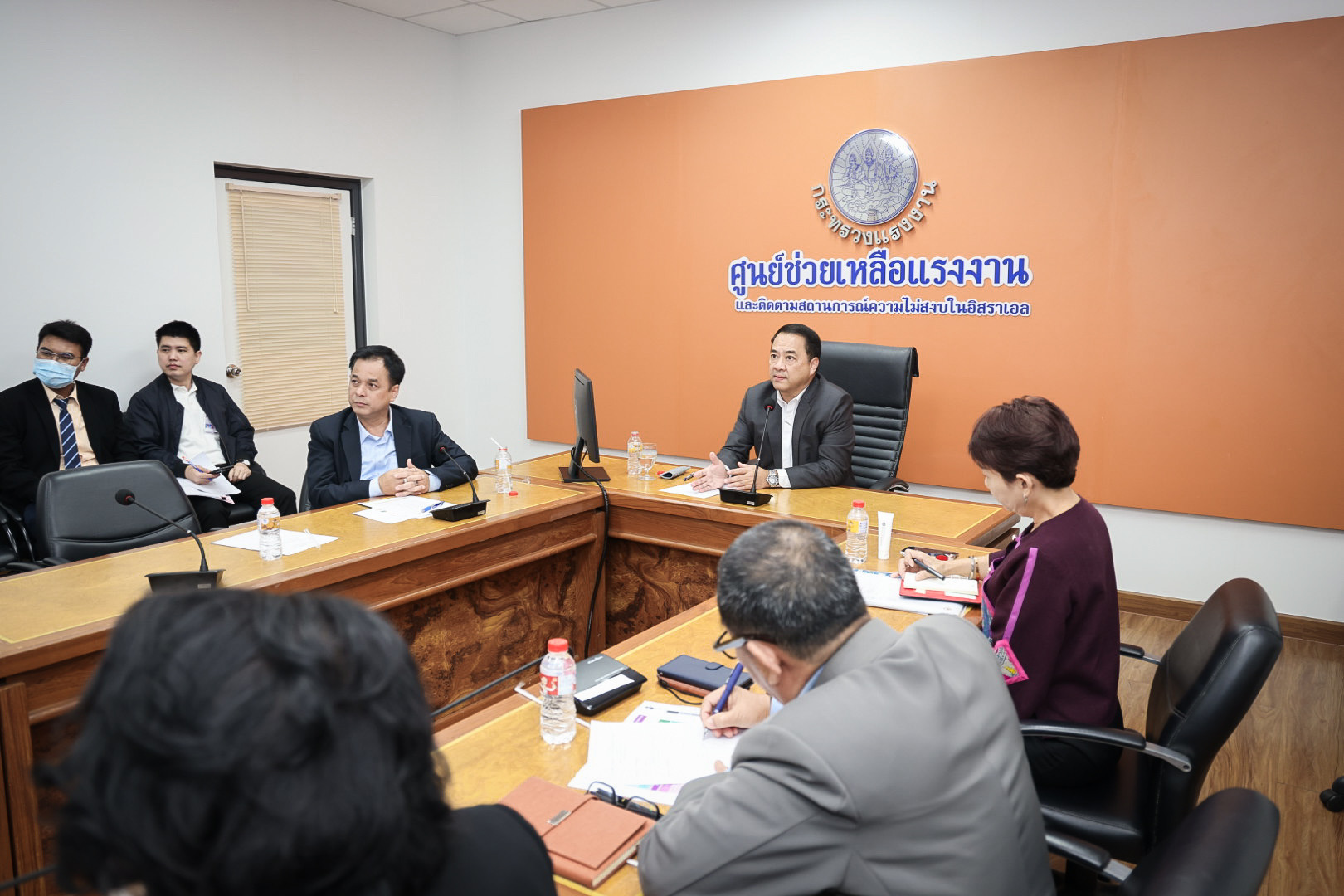 วันที่ 2 พฤศจิกายน 2566 เวลา 11.00 น. นายสมาสภ์ ปัทมะสุคนธ์ ผู้ตรวจราชการกระทรวงแรงงาน เป็นประธานการประชุมคณะทำงานเฉพาะกิจเพื่อติดตามสถานการณ์ความไม่สงบในประเทศอิสราเอล ครั้งที่ 10/2566 โดยมี นายสิบหมื่นชัย โพธิสินธุ์ รองอธิบดีกรมการจัดหางาน นางสาวกรจิรัฏฐ์ พงจันทร์ศธร ผู้ช่วยปลัดกระทรวงแรงงาน พร้อมด้วยเจ้าหน้าที่หน่วยงานที่เกี่ยวข้อง เข้าร่วมประชุมด้วย ณ ศูนย์ช่วยเหลือแรงงานและติดตามสถานการณ์สู้รบในอิสราเอล ห้องประชุมกองกฎหมาย ชั้น 11 อาคารกระทรวงแรงงาน พร้อมประชุมผ่านระบบอิเล็กทรอนิกส์กับ นายกิตติ์ธนา ศรีสุริยะ อัครราชทูตที่ปรึกษา (ฝ่ายแรงงาน) ประจำสถานเอกอัครราชทูต ณ กรุงเทลอาวีฟ และ นางปลิดา ร่วมคำ อัครราชทูตที่ปรึกษา(ฝ่ายแรงงาน) ณ กรุงอาบูดาบี สหรัฐอาหรับเอมิเรตส์