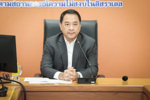 วันที่ 3 พฤศจิกายน 2566 เวลา 11.00 น. นายสมาสภ์ ปัทมะสุคนธ์ ผู้ตรวจราชการกระทรวงแรงงาน เป็นประธานการประชุมคณะทำงานเฉพาะกิจเพื่อติดตามสถานการณ์ความไม่สงบในประเทศอิสราเอล ครั้งที่ 11/2566 โดยมีเจ้าหน้าที่หน่วยงานที่เกี่ยวข้อง เข้าร่วมประชุมด้วย ณ ศูนย์ช่วยเหลือแรงงานและติดตามสถานการณ์สู้รบในอิสราเอล ห้องประชุมกองกฎหมาย ชั้น 11 อาคารกระทรวงแรงงาน พร้อมประชุมผ่านระบบอิเล็กทรอนิกส์กับ นายกิตติ์ธนา ศรีสุริยะ อัครราชทูตที่ปรึกษา (ฝ่ายแรงงาน) ประจำสถานเอกอัครราชทูต ณ กรุงเทลอาวีฟ