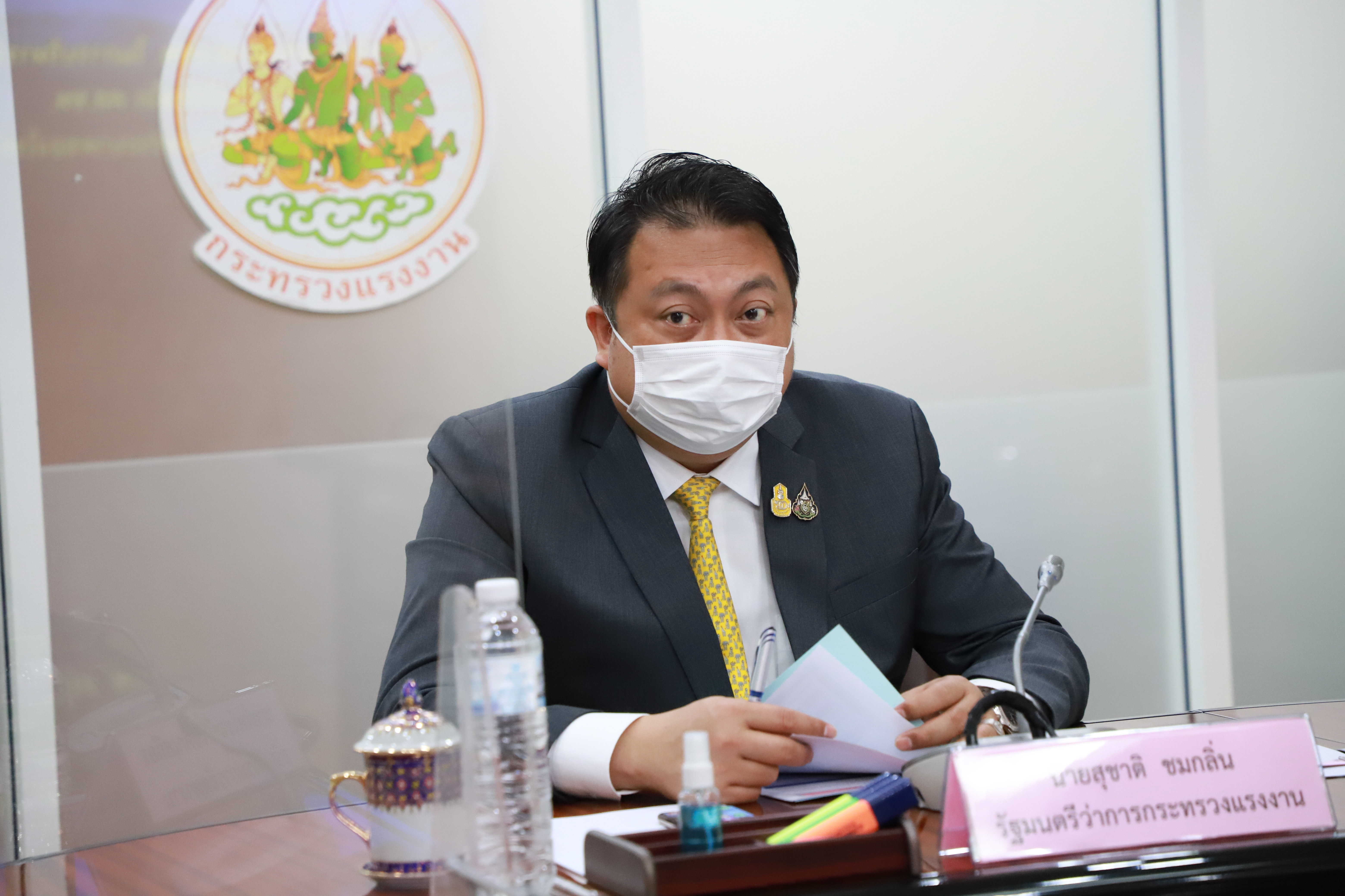วันที่ 5 สิงหาคม 2564 9.30 น. นายสุชาติ ชมกลิ่น รัฐมนตรีว่าการกระทรวงแรงงาน พร้อมด้วยคณะผู้บริหารกระทรวงแรงงาน ร่วมประชุมบูรณาการและขับเคลื่อนการบริหารจัดการชายแดนภายใต้สถานการณ์โควิด – 19 ผ่านระบบ VTC ณ ห้องประชุมแสงสิงแก้ว ชั้น 5 อาคารกระทรวงแรงงาน โดยที่ประชุมได้มีการชี้แจงผลการบูรณาการและขับเคลื่อนการบริหารจัดการชายแดน การเตรียมแผนรองรับผู้หนีภัยความไม่สงบชาวเมียนมา และการชี้แจงการดำเนินงานของจังหวัดชายแดน