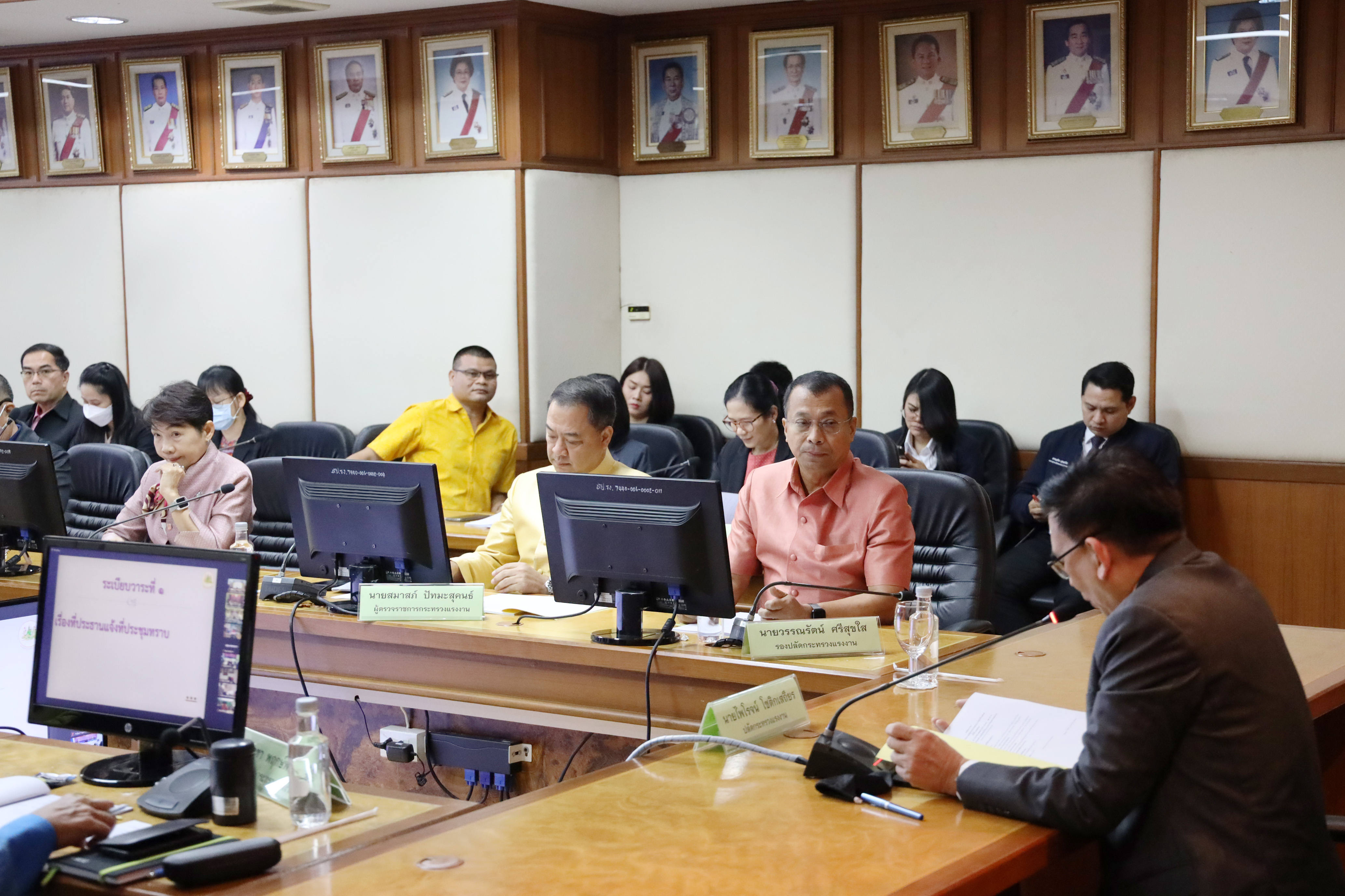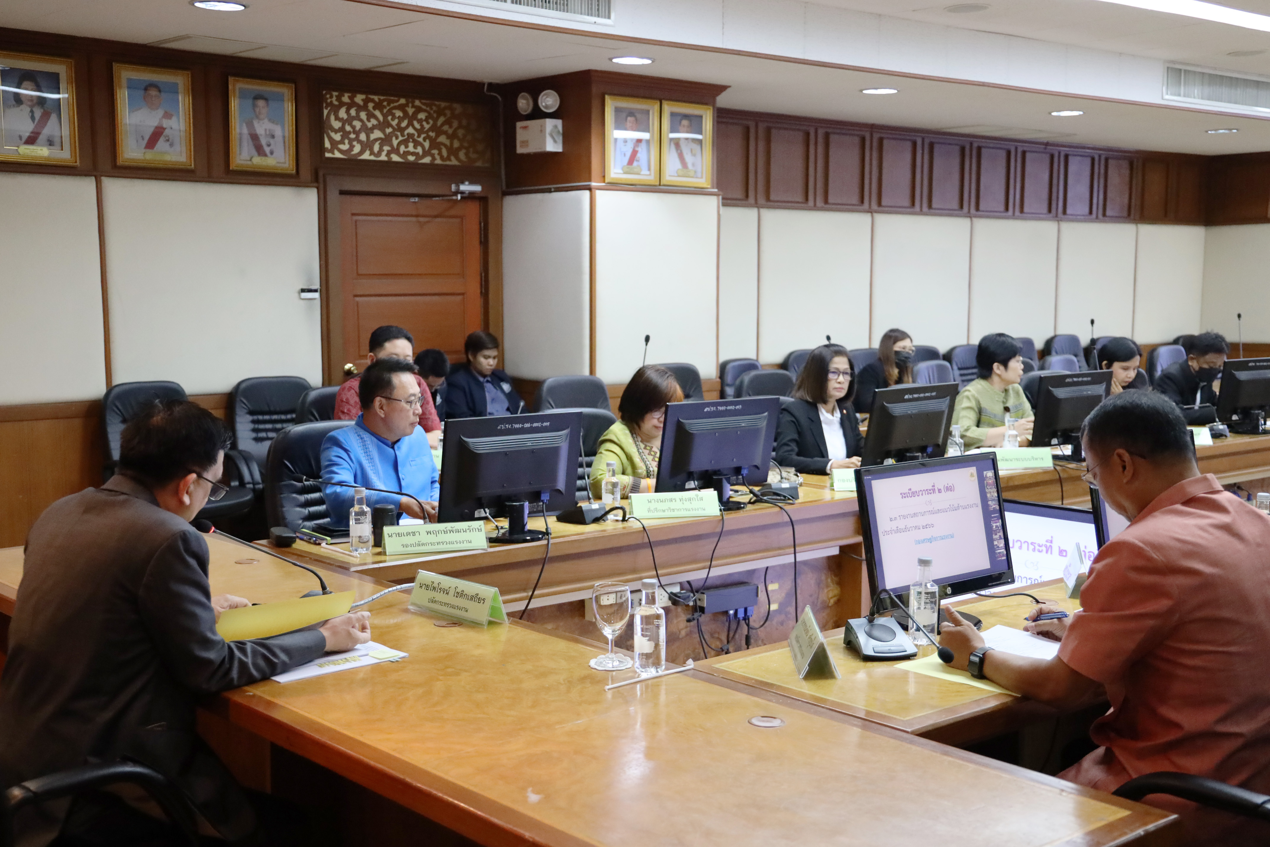 วันที่ 16 มกราคม 2567 เวลา 09.30 น. นายไพโรจน์ โชติกเสถียร ปลัดกระทรวงแรงงาน เป็นประธานการประชุมสำนักงานปลัดกระทรวงแรงงาน ครั้งที่ 1/2567 โดยมี นายวรรณรัตน์ ศรีสุขใส รองปลัดกระทรวงแรงงาน นายเดชา พฤกษ์พัฒนรักษ์ รองปลัดกระทรวงแรงงาน และผู้บริหารระดับสูงสำนักงานปลัดกระทรวงแรงงาน เข้าร่วมการประชุม ที่ประชุมได้มีการรายผลการดำเนินการออกร้านกาชาดกระทรวงแรงงานและการจัดจำหน่ายสลากกาชาดกระทรวงแรงงาน ประจำปี 2566 รวมไปถึงการรายงานผลการดำเนินงานและรายงานผลการใช้จ่ายงบประมาณ ประจำปีงบประมาณ พ.ศ. 2566 ไปพลางก่อน สำนักงานปลัดกระทรวงแรงงาน รอบ 3 เดือน (ตุลาคม – ธันวาคม 2566) และการรายงานสถานการณ์และแนวโน้มด้านแรงงาน ประจำเดือนธันวาคม 2566 ณ ห้องประชุมประสงค์ รณะนันทน์ ชั้น 5 อาคารกระทรวงแรงงาน