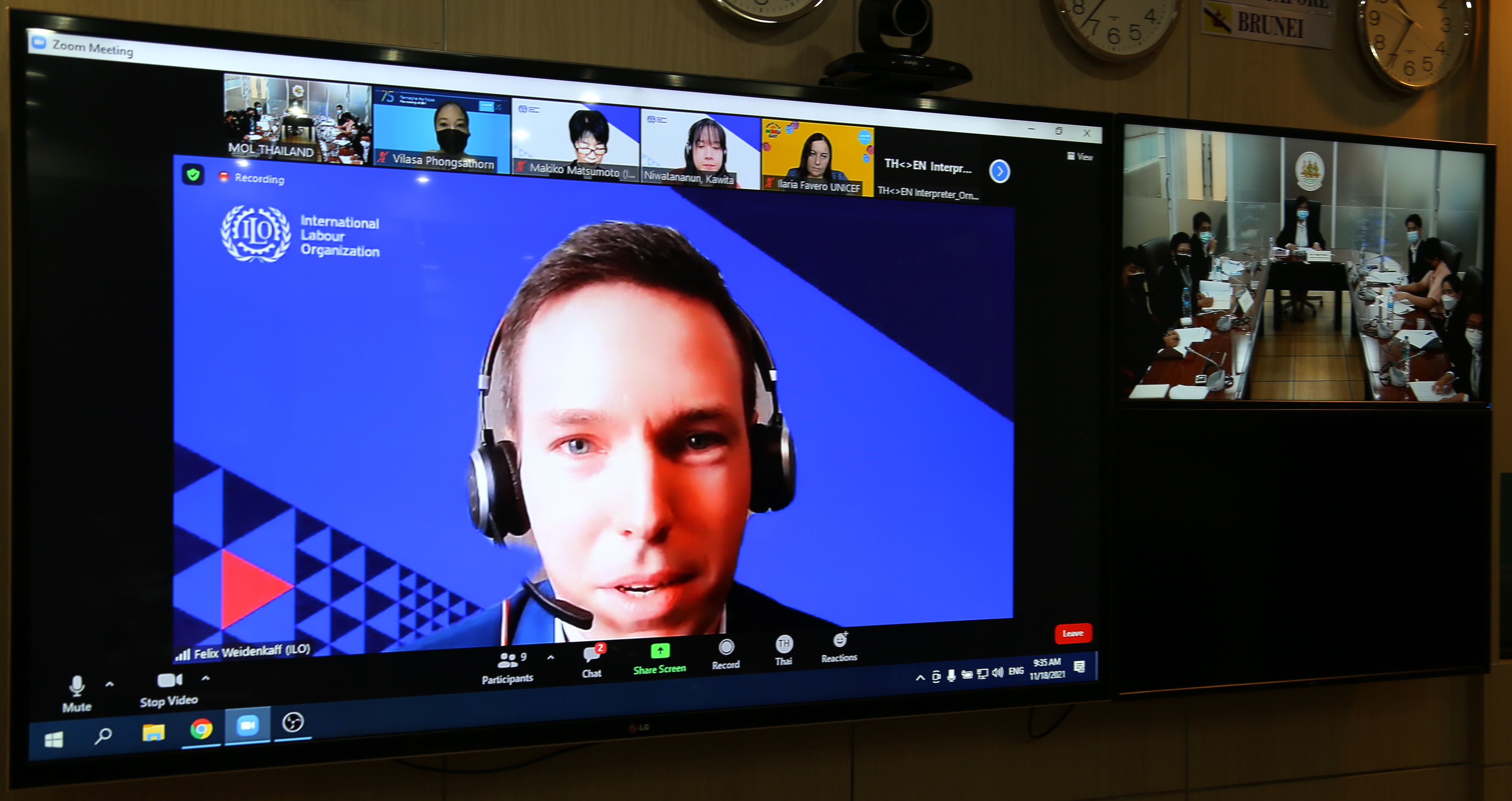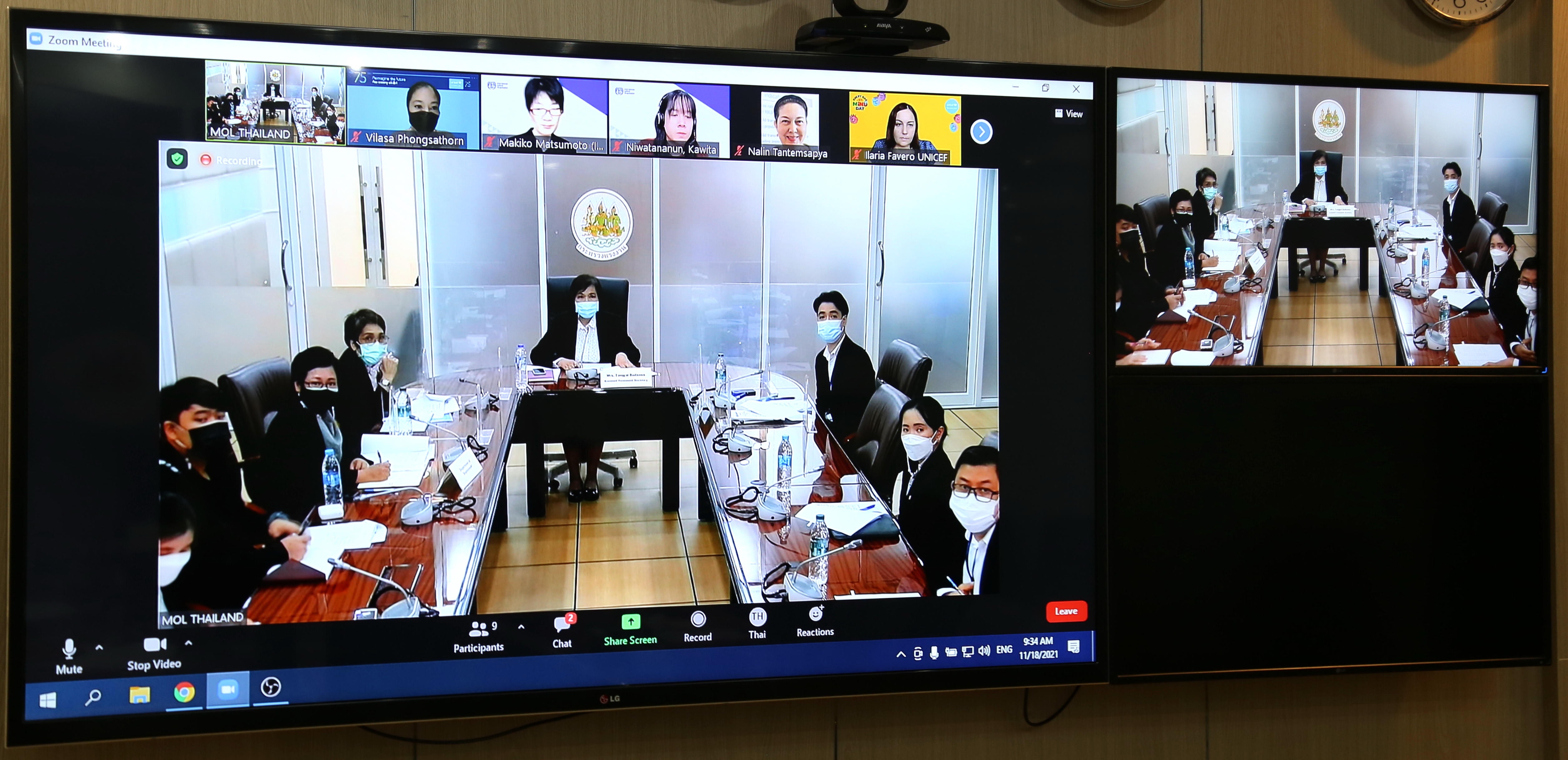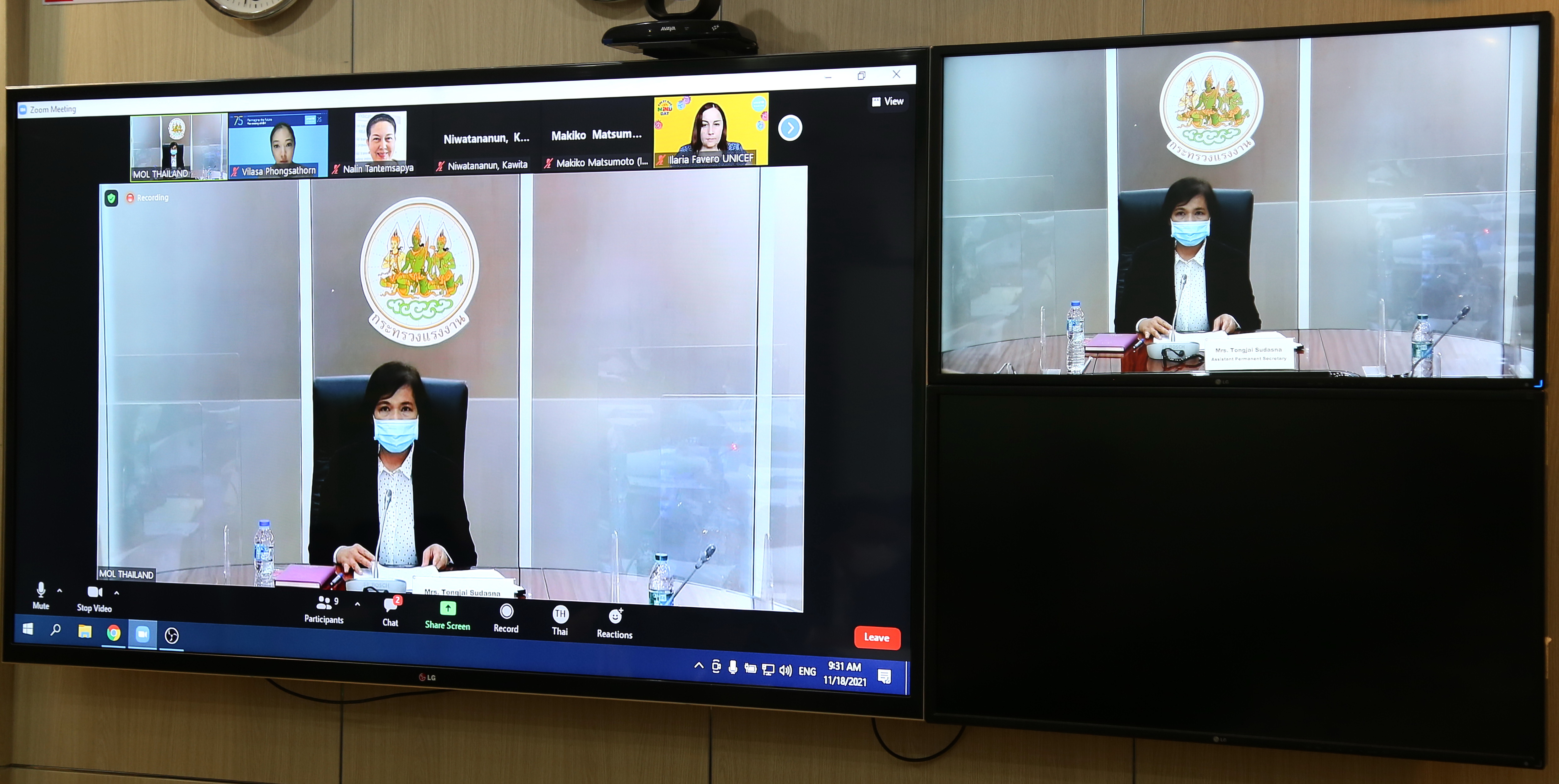 วันที่ 18 พฤศจิกายน 2564 เวลา 09.30 น. นางต้องใจ สุทัศน์ ณ อยุธยา ผู้ช่วยปลัดกระทรวงแรงงาน เป็นประธานการประชุมเพื่อหารือเกี่ยวกับการพัฒนาการวิจัยร่วมกันในประเด็นที่เกี่ยวข้องกับกลุ่มเยาวชนที่ไม่ได้อยู่ในระบบการศึกษา การจ้างงาน หรือการฝึกอบรมใดๆ รูปแบบการประชุมทางไกลผ่านจอภาพ ณ ห้องประชุมแสงสิงแก้ว ชั้น 5 อาคารกระทรวงแรงงาน