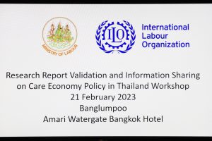 วันที่ 21 กุมภาพันธ์ 2566 เวลา 13.30 น. นายบุญชอบ สุทธมนัสวงษ์ ปลัดกระทรวงแรงงาน มอบหมายให้ นายเดชา พฤกษ์พัฒนรักษ์ ผู้ช่วยปลัดกระทรวงแรงงาน เป็นประธานร่วมในพิธีเปิดการประชุมเชิงปฏิบัติการเพื่อรับรองผลการวิจัยภายใต้โครงการ Care Economy Project โดยมี มิสเตอร์ บิยอห์น โจฮานเนสเซน (Mr. Bjorn Johannessen) เจ้าหน้าที่ผู้รักษาการแทนผู้อำนวยการสำนักงานแรงงานระหว่างประเทศประจำประเทศไทย กัมพูชา และ สปป.ลาว เป็นประธานร่วม อีกทั้งมีผู้เชี่ยวชาญด้านจัดหางานเชิงนโยบายและเพศสภาพ ผู้แทนภาครัฐ คณะผู้ทำการวิจัยจากมหาลัยมหิดล และ ผู้แทนจากส่วนต่างๆ ที่เกี่ยวข้องเข้าร่วมประชุม