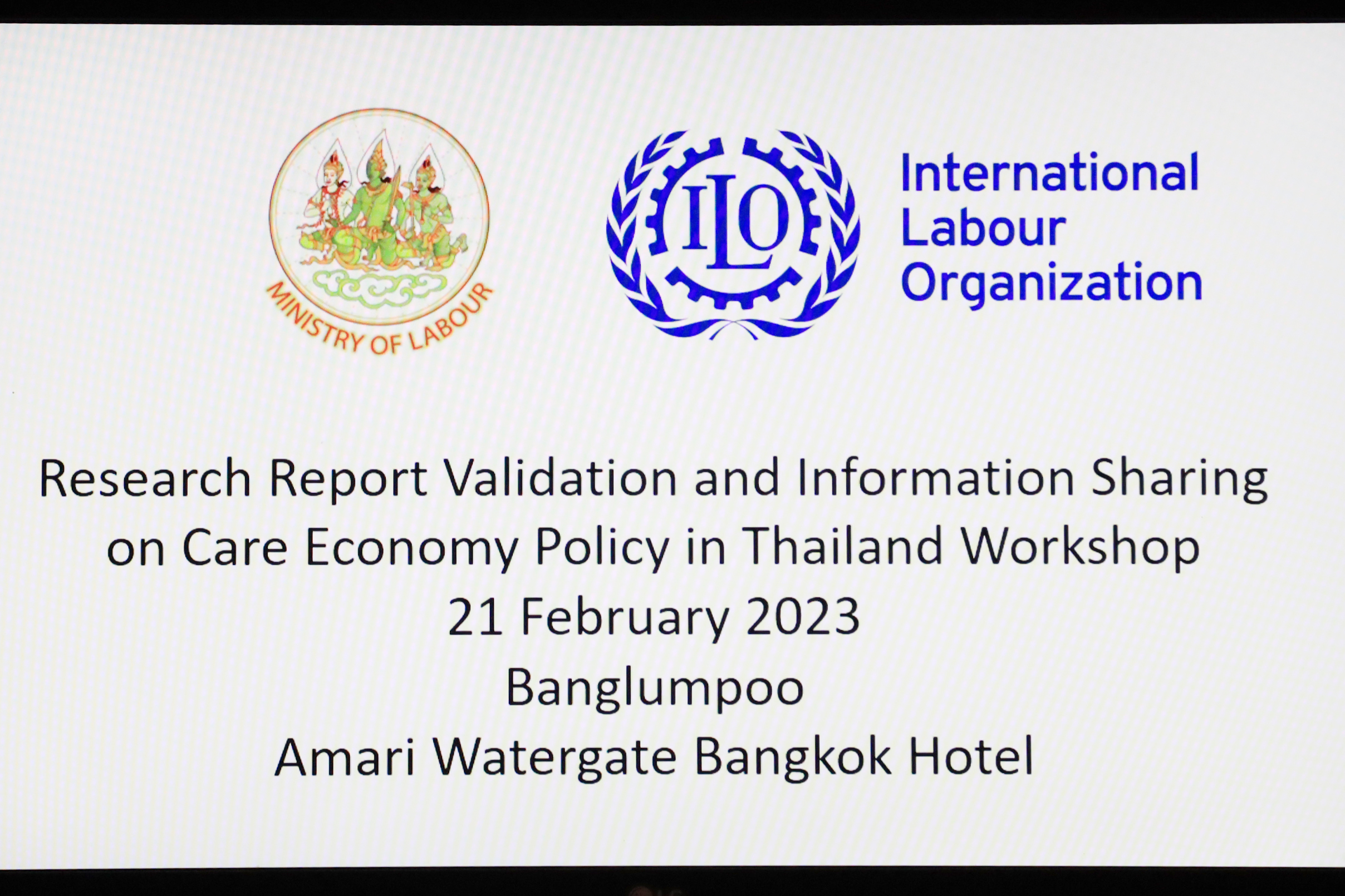 การประชุมในครั้งนี้ กระทรวงแรงงานได้รับความร่วมมือจากองค์การแรงงานระหว่างประเทศสำหรับโครงการสร้างเสริมศักยภาพเพื่อส่งเสริมการลงทุนที่คำนึงถึงเพศสภาพในการสร้างงานที่มีคุณค่าในภาคเศรษฐกิจใส่ใจในประเทศไทย หรือ แคร์ เอโคโนมี โปรเจ็ค (The Care Economy Project) ที่ได้จัดให้มีการศึกษาวิจัย เรื่อง การประเมินความครอบคลุมและช่องว่างในเศรษฐกิจภาคการดูแล : การดูแลเด็กและการดูแลระยะยาว ซึ่งมีความเหมาะสมกับบริบทประเทศไทยในปัจจุบันที่เข้าสู่สังคมผู้สูงอายุอย่างสมบูรณ์แล้ว จัดขึ้น ณ ห้องบางลำพู ชั้น 6 โรงแรม อมารี วอเตอร์เกท กรุงเทพมหานคร