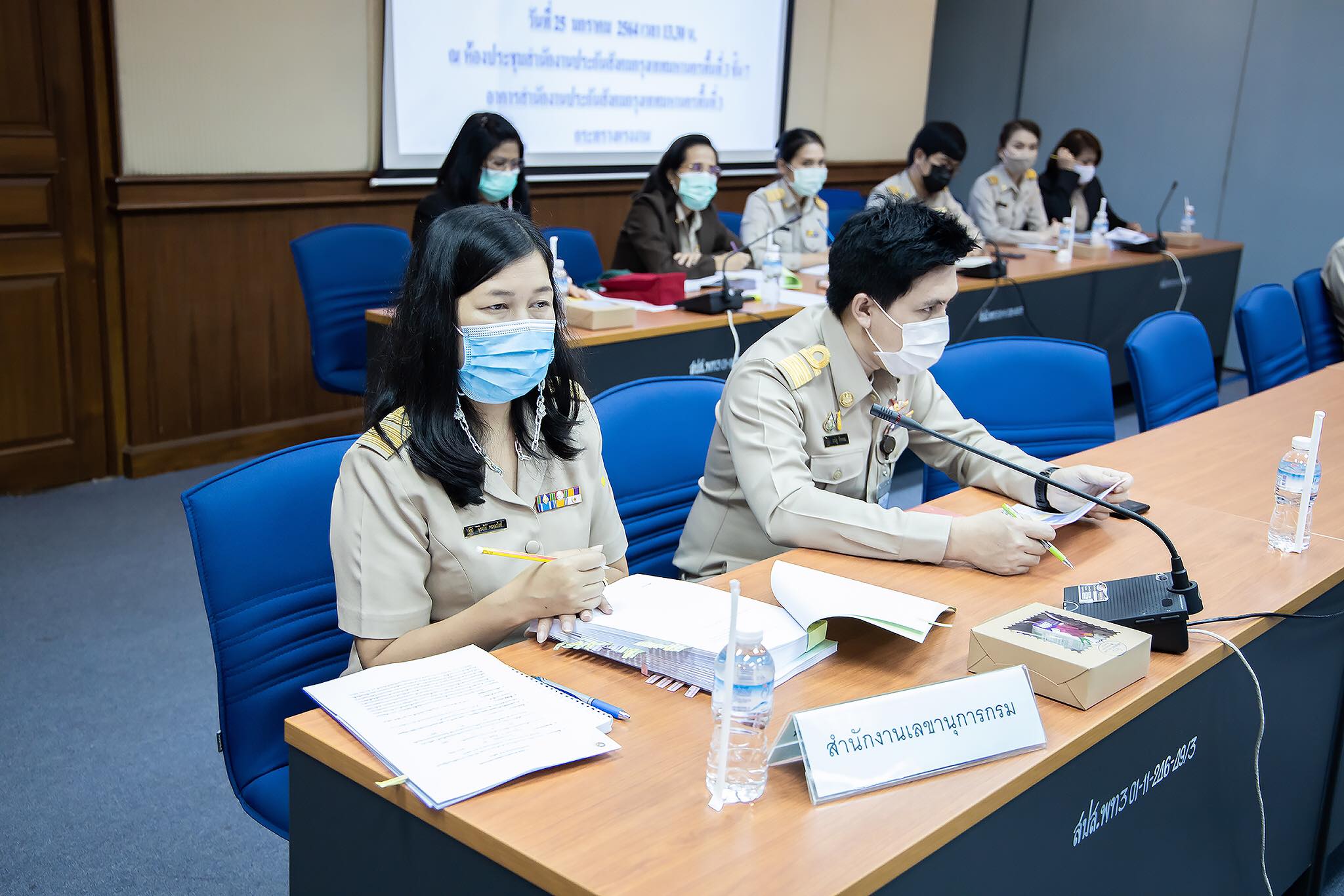 วันที่ 25 มกราคม 2564 เวลา 13.30 น. นายสุทธิ สุโกศล ปลัดกระทรวงแรงงาน เป็นประธานการประชุมคณะกรรมการกองทุนเพื่อการบริหารจัดการการทำงานของคนต่างด้าว ครั้งที่ 3 /2564 โดยมี นายสุชาติ พรชัยวิเศษกุล อธิบดีกรมการจัดหางาน และหน่วยงานที่เกี่ยวข้องเข้าร่วมประชุมด้วย ณ ห้องประชุมสำนักงานประกันสังคมกรุงเทพมหานครพื้นที่ 3 ชั้น 7 อาคารสำนักงานประกันสังคมกรุงเทพมหานครพื้นที่ 3 กระทรวงแรงงาน โดยที่ประชุมได้พิจารณาทบทวนโครงการตามมติที่ประชุมคณะกรรมการกองทุนฯ ครั้งที่ 2/2564 เมื่อวันที่ 30 ธันวาคม 2563 โครงการสนับสนุนการปฏิบัติการป้องกันและควบคุมการแพร่ระบาดของโรคติดเชื้อไวรัสโคโรนา 2019 (Covid 19) จังหวัดสมุทรสาคร ในกลุ่มแรงงานต่างด้าว 3 สัญชาติ ได้แก่ เมียนมา ลาว และกัมพูชา ประจำปีงบประมาณ 2564 โครงการช่วยหลือแรงงานต่างด้าวด้านสาธารณสุขที่ดำเนินการตามมติคณะรัฐมนตรีเมื่อวันที่ 29 ธันวาคม 2563 และ การแต่งตั้งผู้ทรงคุณวุฒิเพิ่มเติมในคณะอนุกรรมการติดตามและประเมินผลการดำเนินงานและผลการใช้จ่ายเงินกองทุนเพื่อการบริหารจัดการการทำงานของคนต่างด้าว